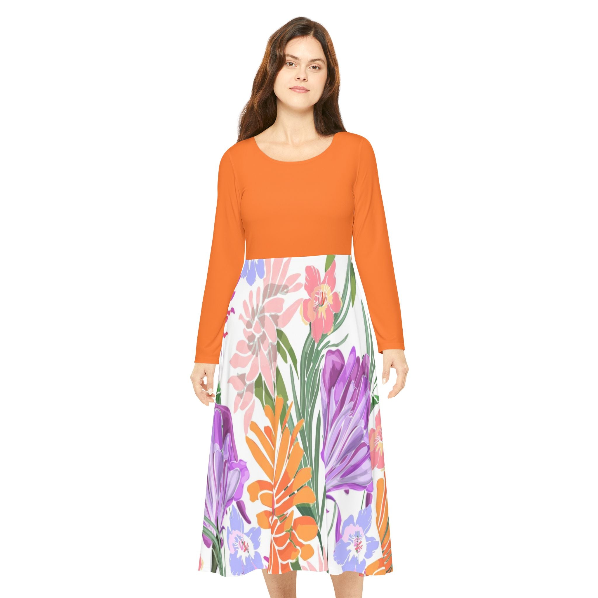 Make an instant classic with this stylish Women Dress! Crafted from a polyester milk silk blend, this custom dance dress is as comfy as it is chic. Its regular fit, scoop-shaped, high-cut neckline adds the perfect touch of class for any setting, from the dance floor onward. For a unique twist, this dress features a unique printing pattern on the bottom and plain-colored top that matches the bottom perfectly. With its breathable fabric and beautiful design, this dress is an absolute must-have!