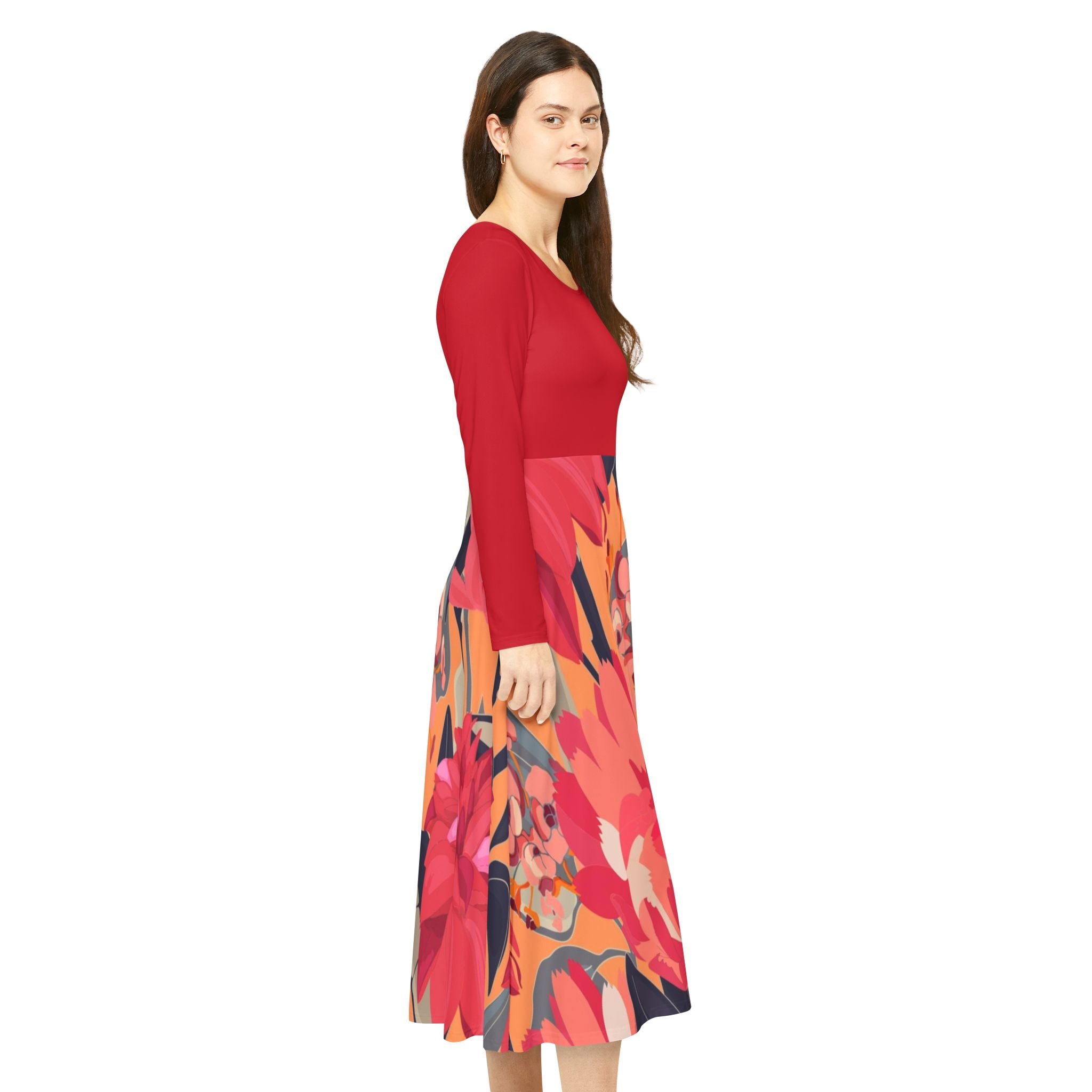 Make an instant classic with this stylish Women Dress! Crafted from a polyester milk silk blend, this custom dance dress is as comfy as it is chic. Its regular fit, scoop-shaped, high-cut neckline adds the perfect touch of class for any setting, from the dance floor onward. For a unique twist, this dress features a unique printing pattern on the bottom and plain-colored top that matches the bottom perfectly. With its breathable fabric and beautiful design, this dress is an absolute must-have!