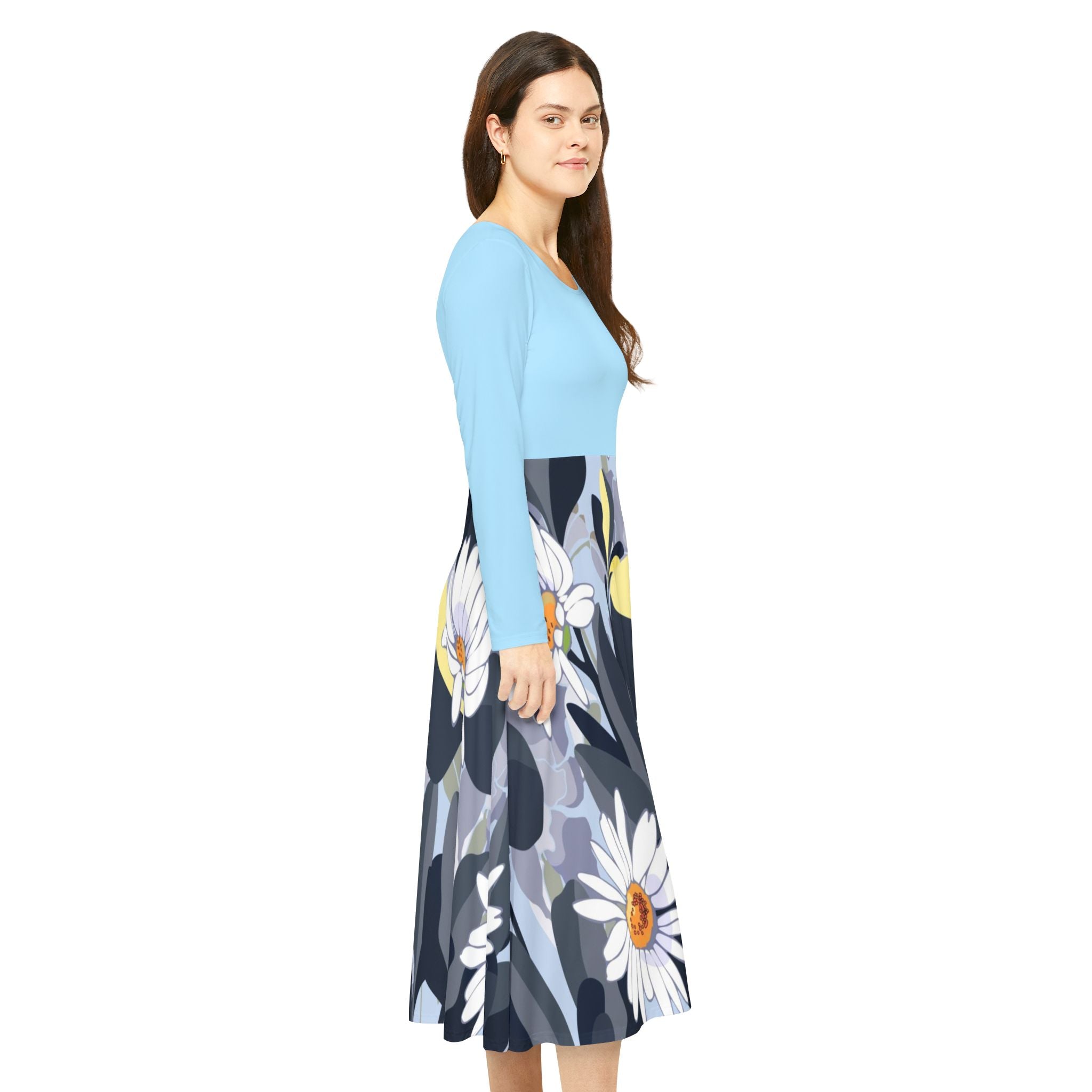 Make an instant classic with this stylish Women Dress! Crafted from a polyester milk silk blend, this custom dance dress is as comfy as it is chic. Its regular fit, scoop-shaped, high-cut neckline adds the perfect touch of class for any setting, from the dance floor onward. For a unique twist, this dress features a unique printing pattern on the bottom and plain-colored top that matches the bottom perfectly. With its breathable fabric and beautiful design, this dress is an absolute must-have!