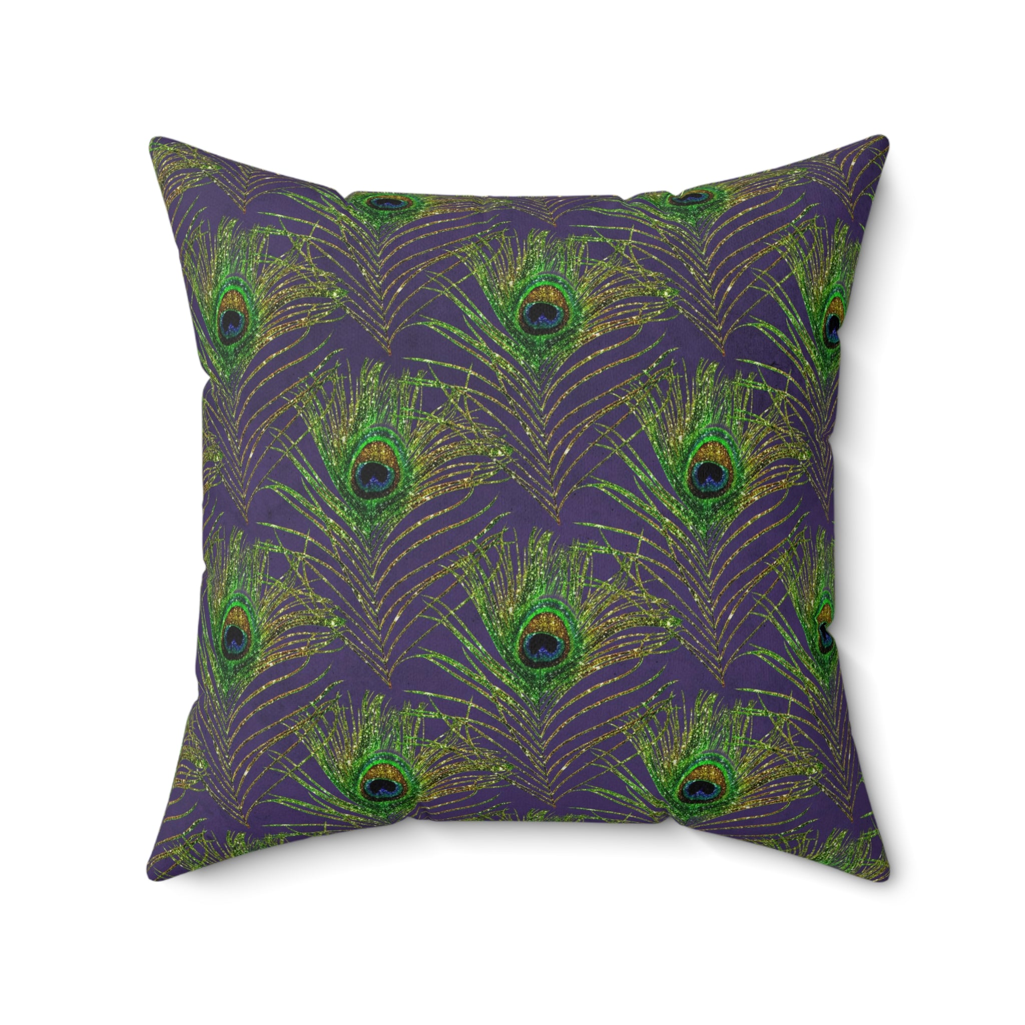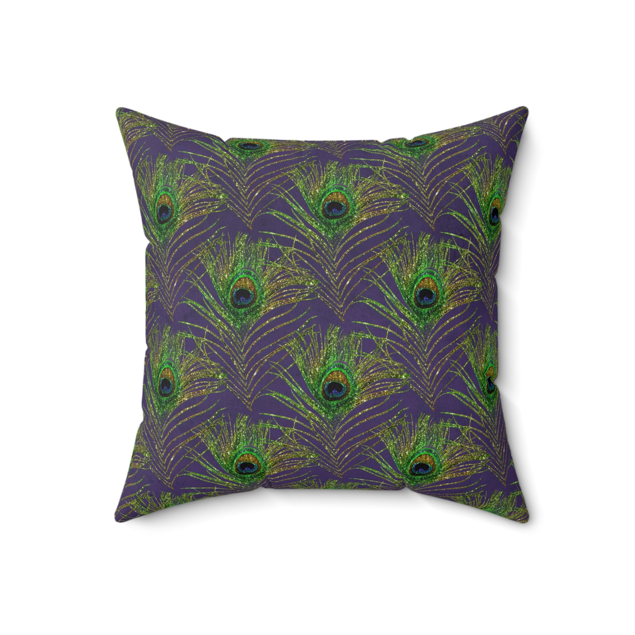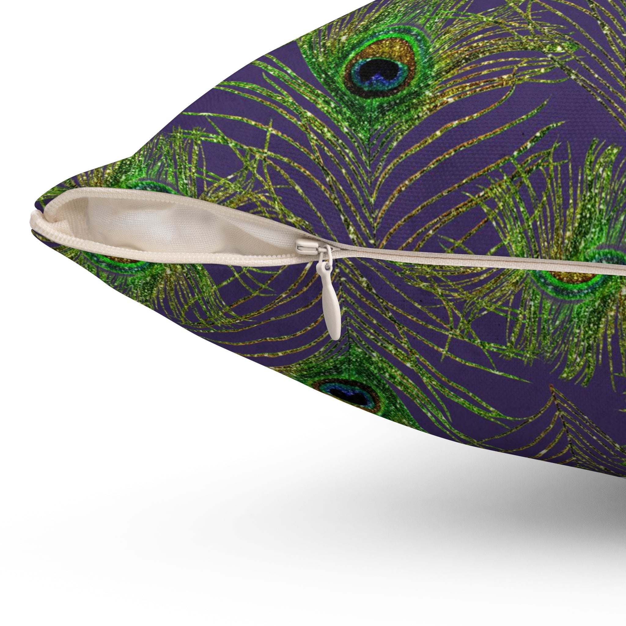 Introducing the Peacock Feather Pillow, the perfect home decor to add a touch of sophistication to any room. The pillow features a beautiful peacock feather print all over, designed to add a sense of luxury to any interior. With a 100% polyester cover and a 100% polyester pillow, this luxurious cushion is both comfortable and visually stunning. The double sided print ensures that the artwork looks beautiful from every angle and the concealed zipper allows for easy removal and cleaning. Pre-constructed for convenience, the item has a size variance of +/- 0.5" for a perfect fit. Ideal for any home, the Peacock Feather Pillow is sure to make a statement.