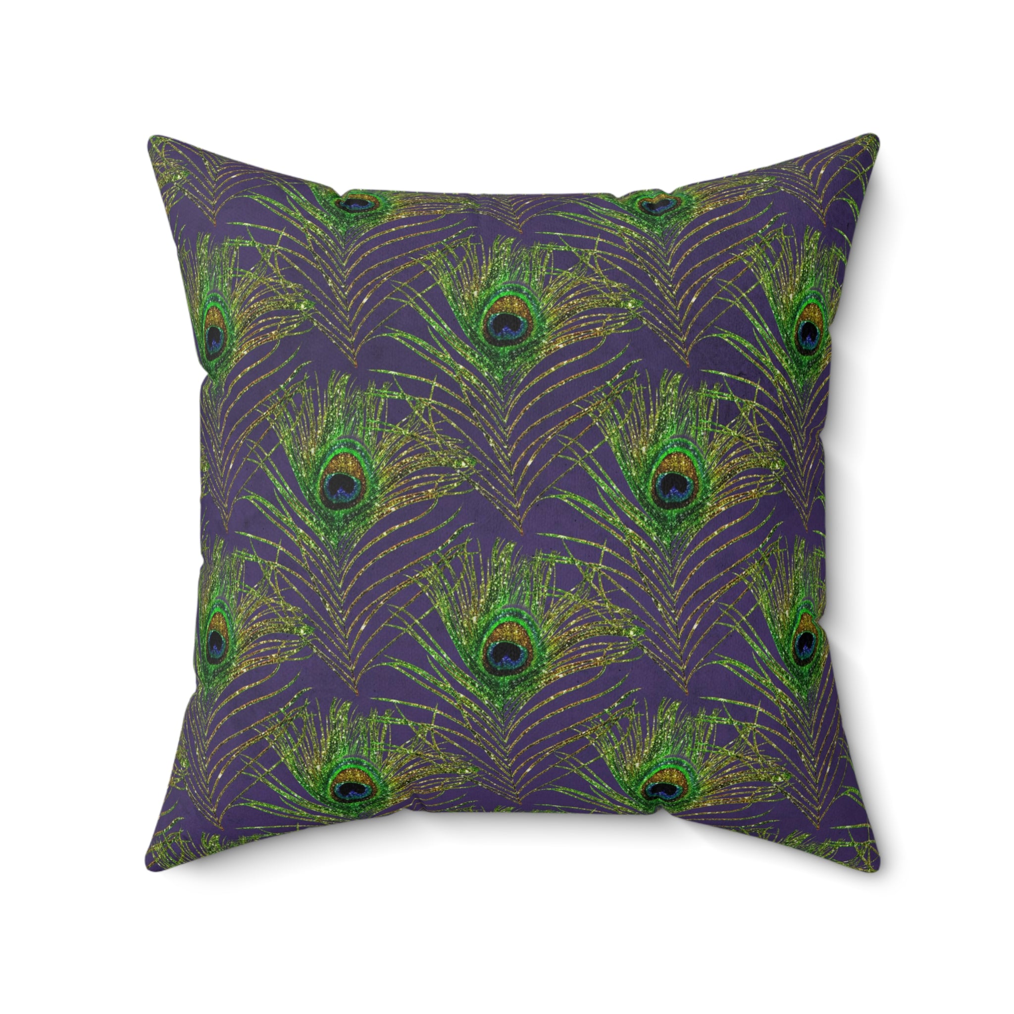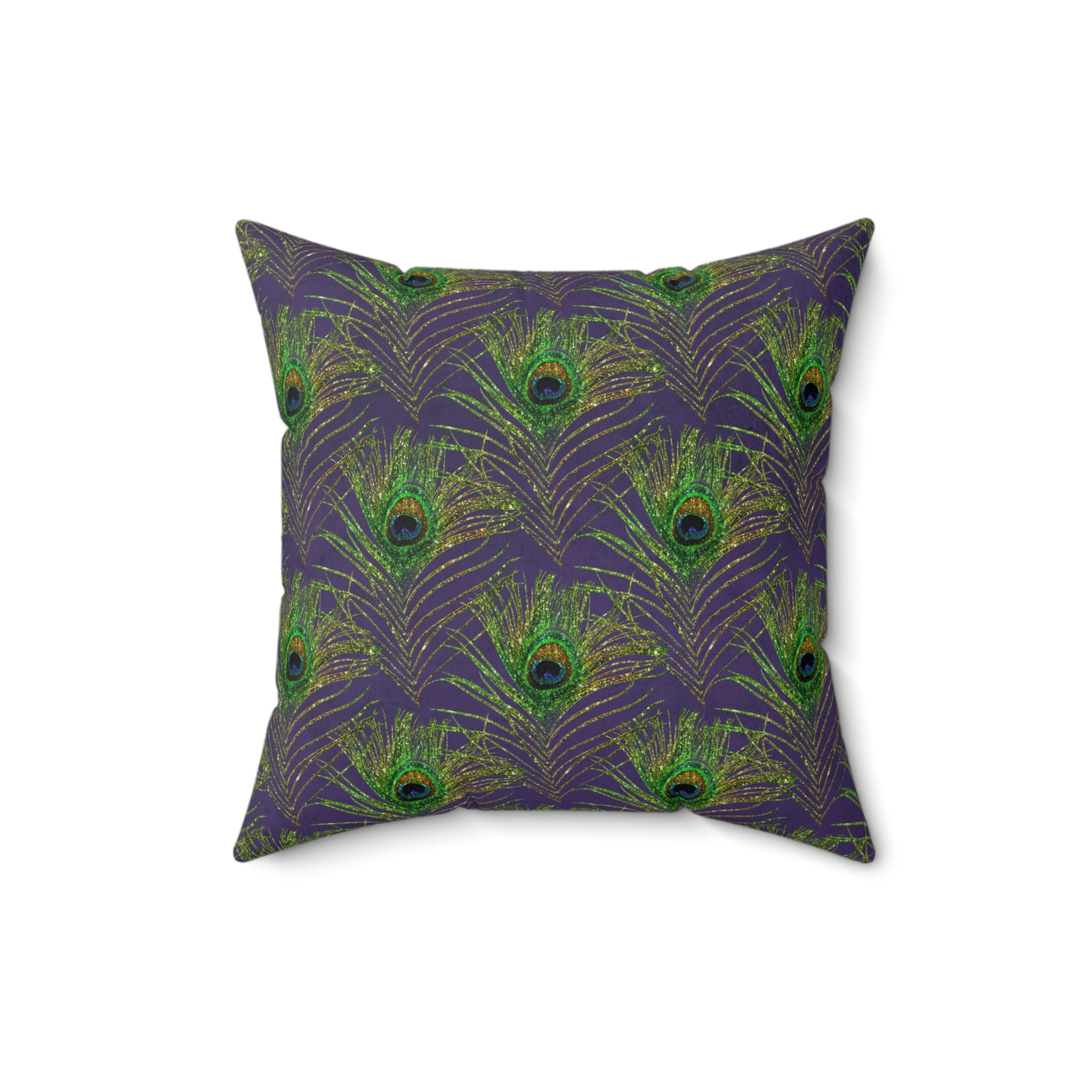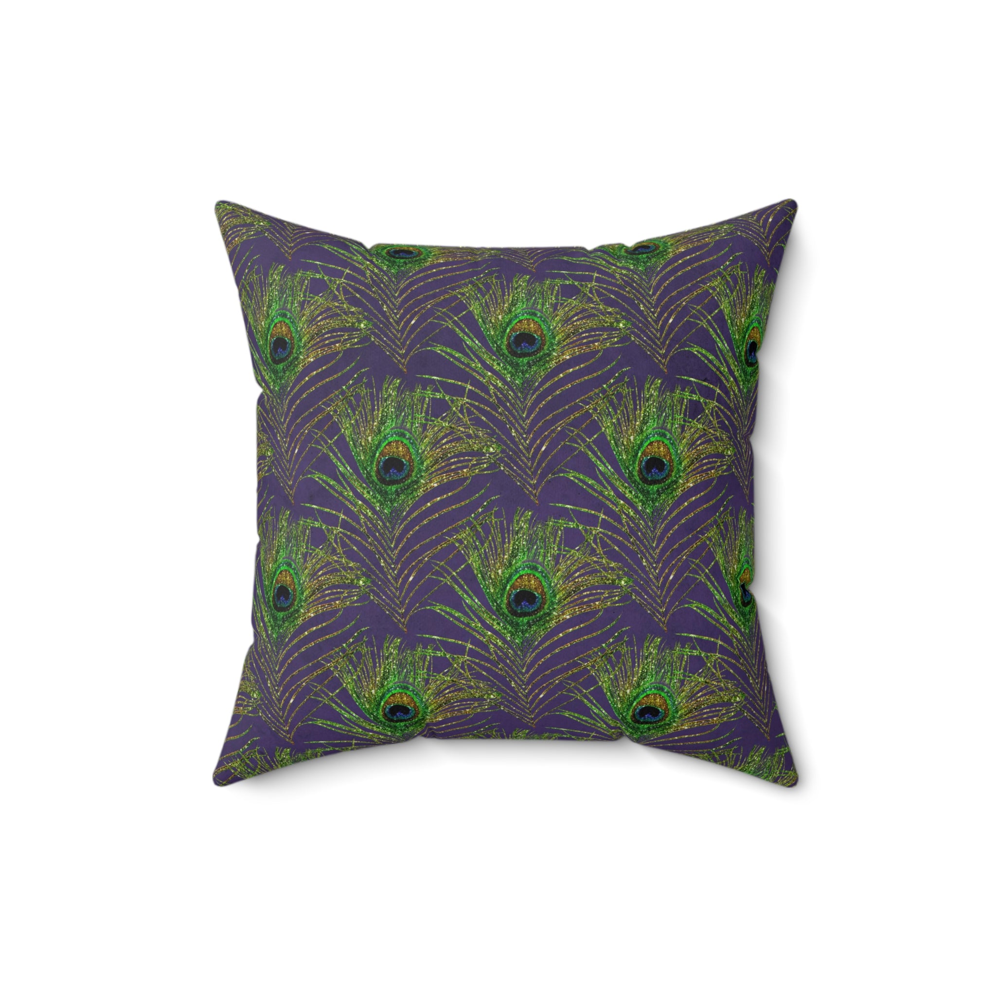 Introducing the Peacock Feather Pillow, the perfect home decor to add a touch of sophistication to any room. The pillow features a beautiful peacock feather print all over, designed to add a sense of luxury to any interior. With a 100% polyester cover and a 100% polyester pillow, this luxurious cushion is both comfortable and visually stunning. The double sided print ensures that the artwork looks beautiful from every angle and the concealed zipper allows for easy removal and cleaning. Pre-constructed for convenience, the item has a size variance of +/- 0.5" for a perfect fit. Ideal for any home, the Peacock Feather Pillow is sure to make a statement.