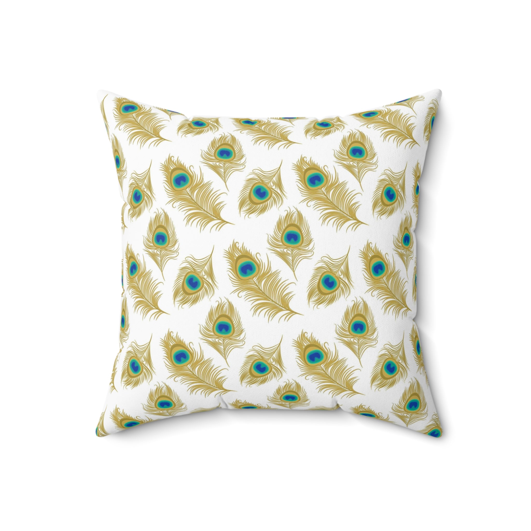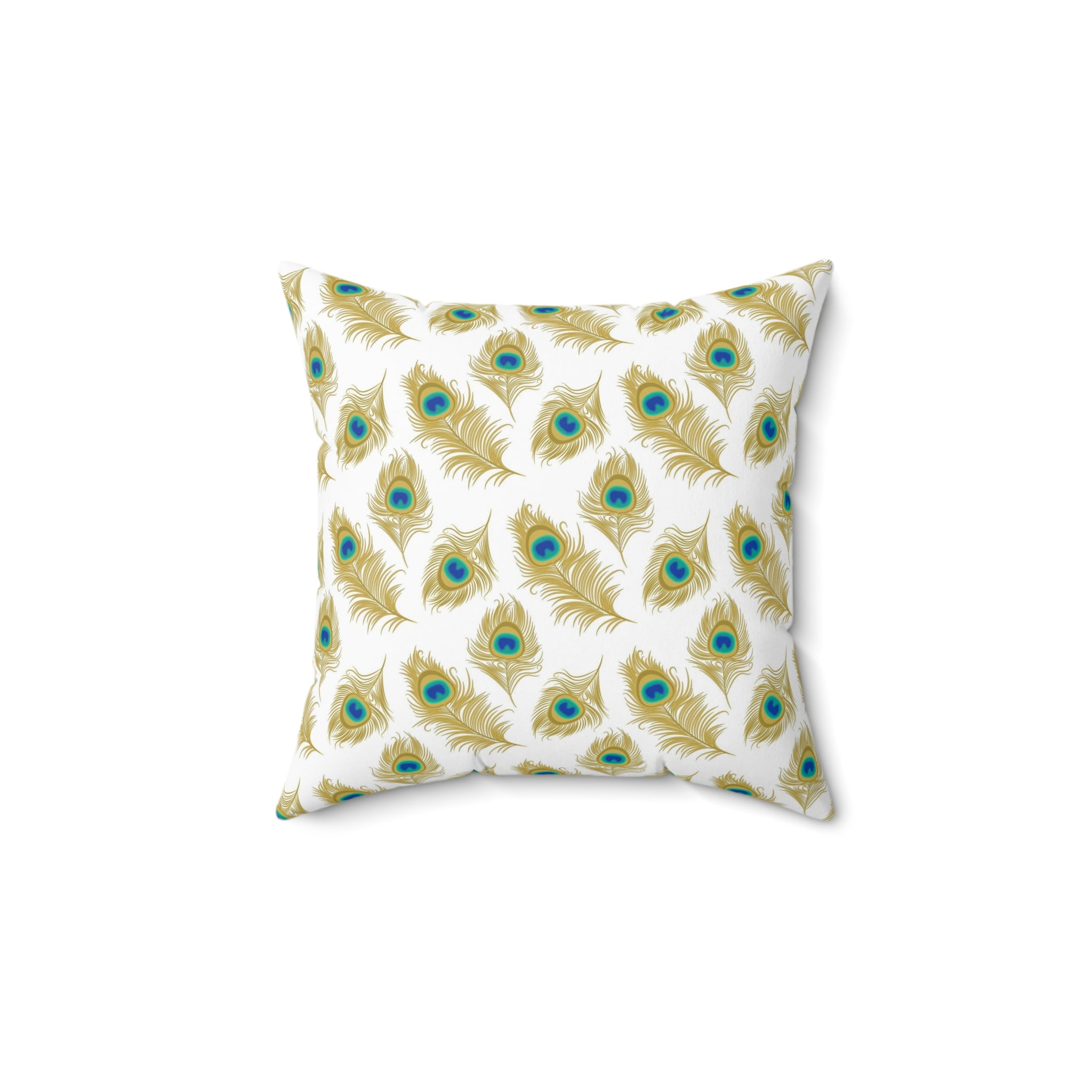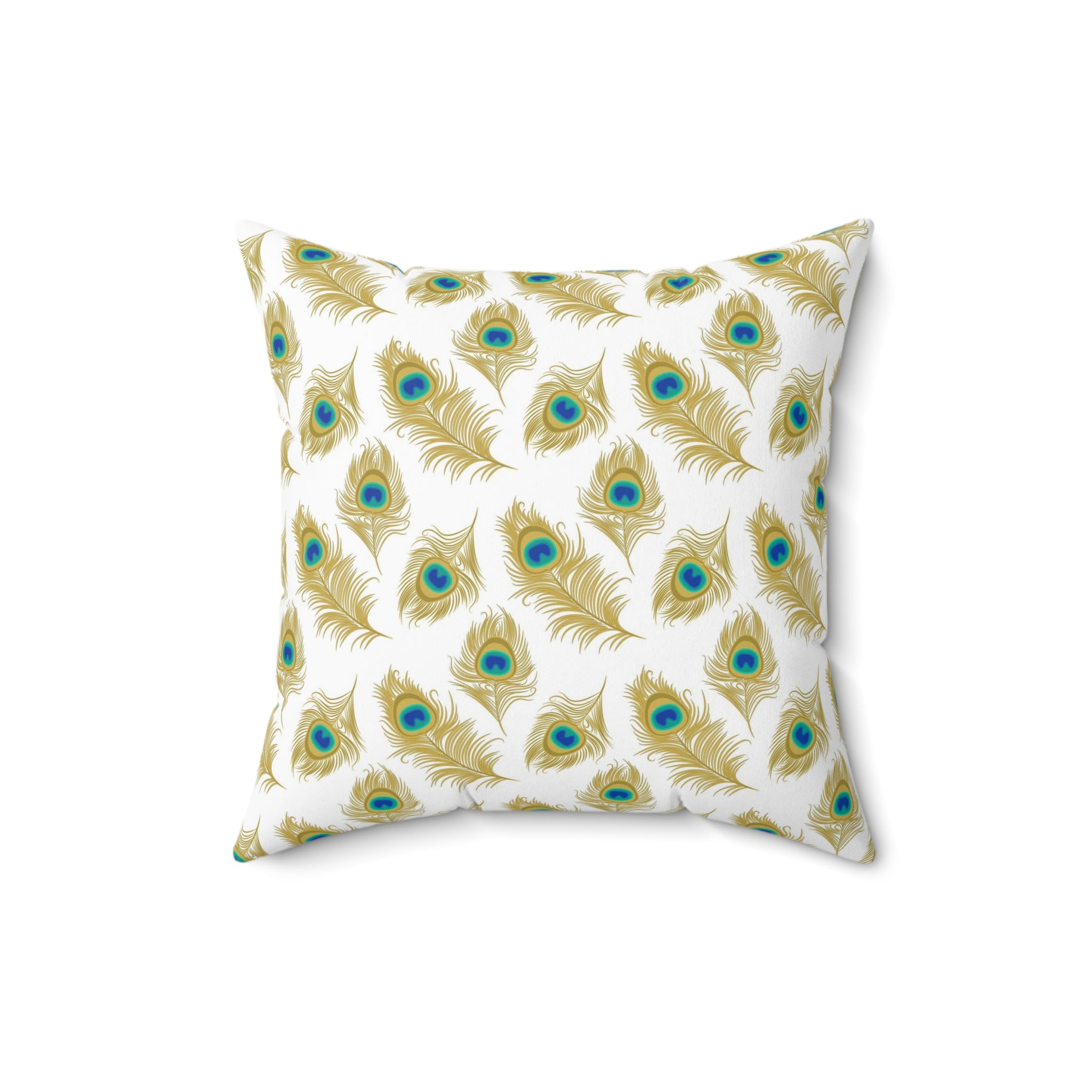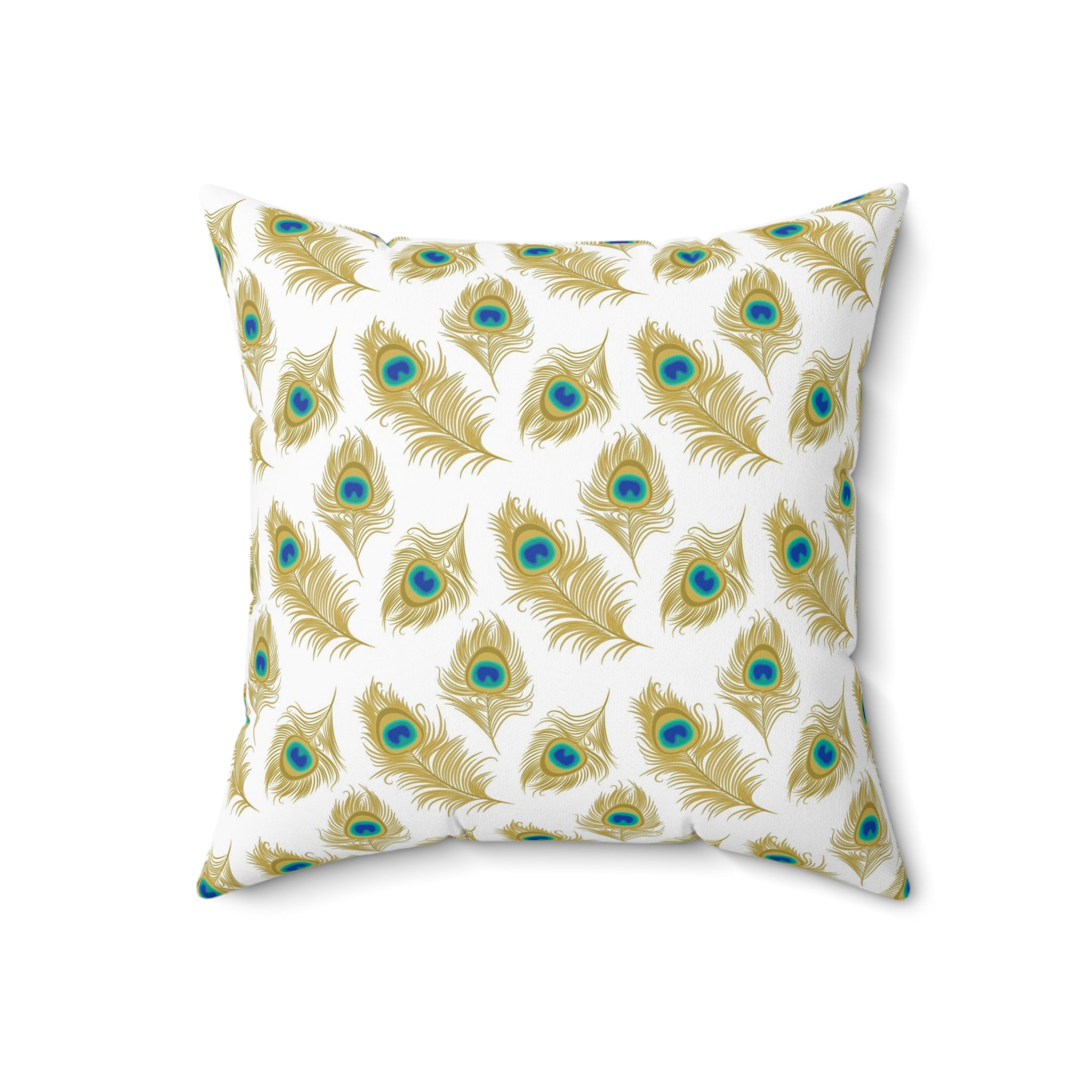 Introducing the Peacock Feather Pillow, the perfect home decor to add a touch of sophistication to any room. The pillow features a beautiful peacock feather print all over, designed to add a sense of luxury to any interior. With a 100% polyester cover and a 100% polyester pillow, this luxurious cushion is both comfortable and visually stunning. The double sided print ensures that the artwork looks beautiful from every angle and the concealed zipper allows for easy removal and cleaning. Pre-constructed for convenience, the item has a size variance of +/- 0.5" for a perfect fit. Ideal for any home, the Peacock Feather Pillow is sure to make a statement.
