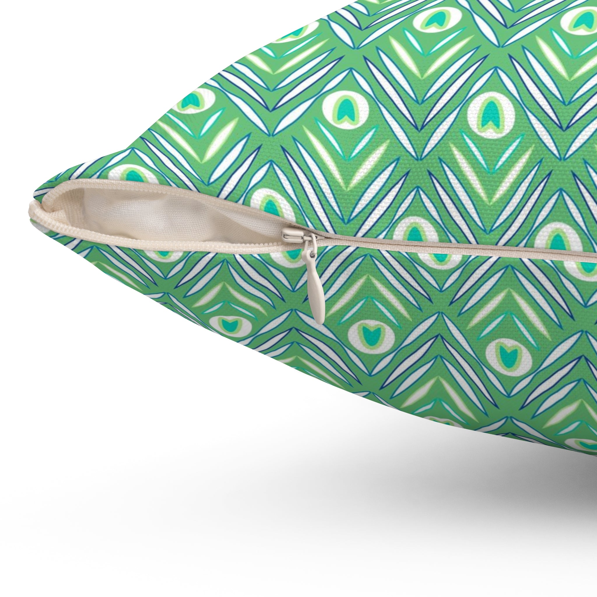 Introducing the Peacock Feather Pillow, the perfect home decor to add a touch of sophistication to any room. The pillow features a beautiful peacock feather print all over, designed to add a sense of luxury to any interior. With a 100% polyester cover and a 100% polyester pillow, this luxurious cushion is both comfortable and visually stunning. The double sided print ensures that the artwork looks beautiful from every angle and the concealed zipper allows for easy removal and cleaning. Pre-constructed for convenience, the item has a size variance of +/- 0.5" for a perfect fit. Ideal for any home, the Peacock Feather Pillow is sure to make a statement.