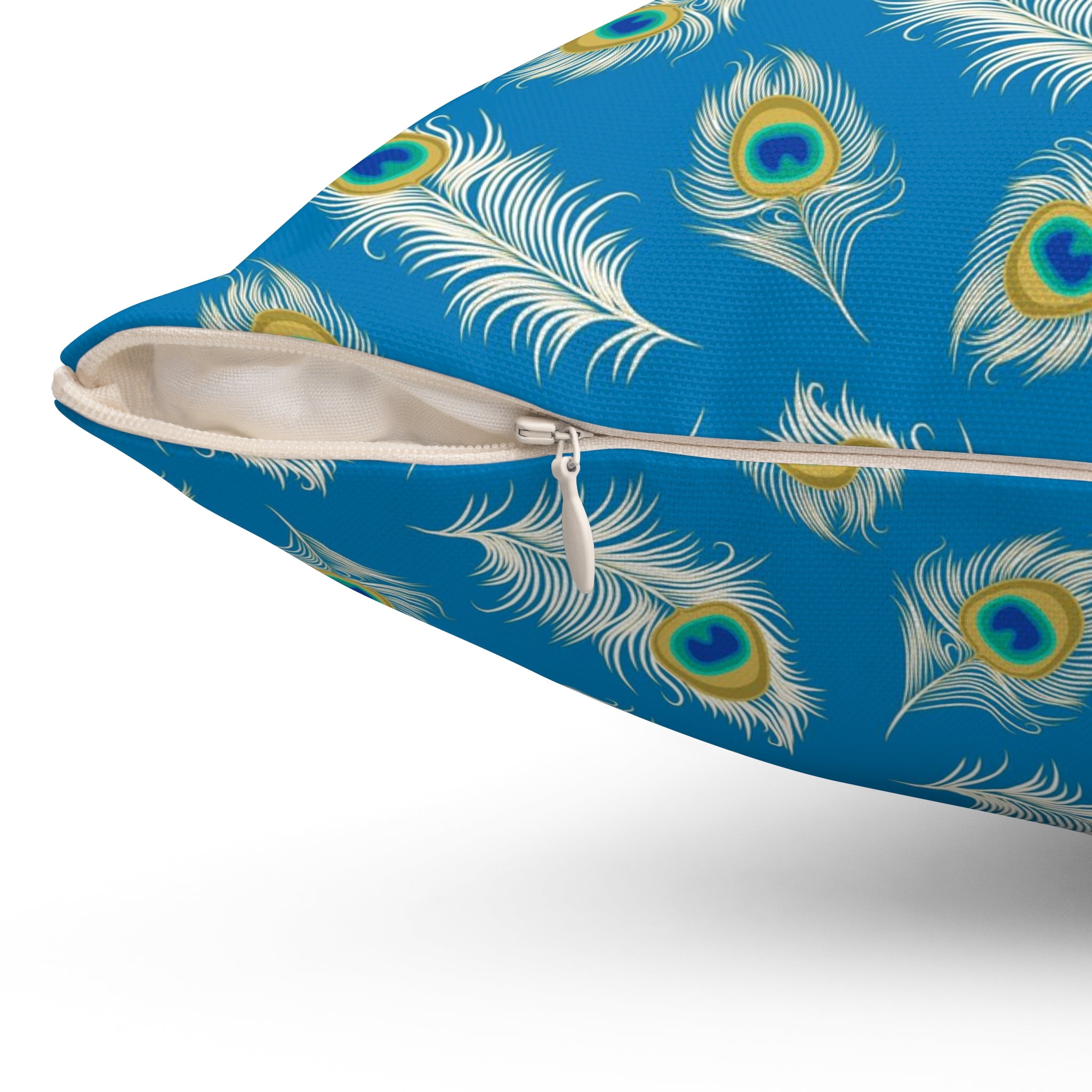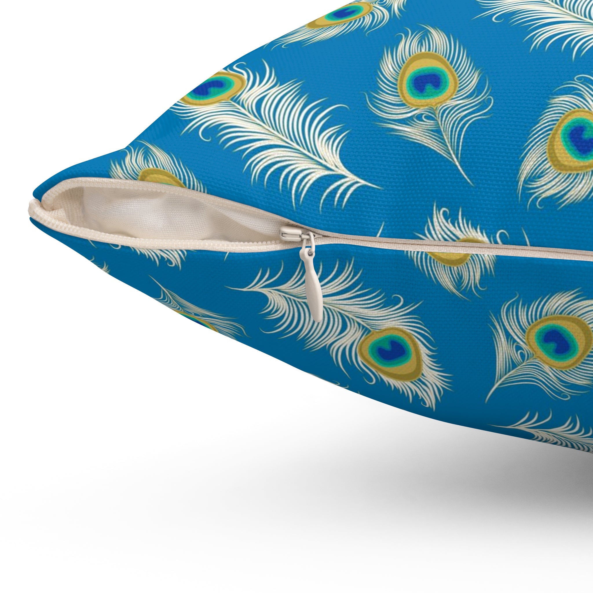 Introducing the Peacock Feather Pillow, the perfect home decor to add a touch of sophistication to any room. The pillow features a beautiful peacock feather print all over, designed to add a sense of luxury to any interior. With a 100% polyester cover and a 100% polyester pillow, this luxurious cushion is both comfortable and visually stunning. The double sided print ensures that the artwork looks beautiful from every angle and the concealed zipper allows for easy removal and cleaning. Pre-constructed for convenience, the item has a size variance of +/- 0.5" for a perfect fit. Ideal for any home, the Peacock Feather Pillow is sure to make a statement.