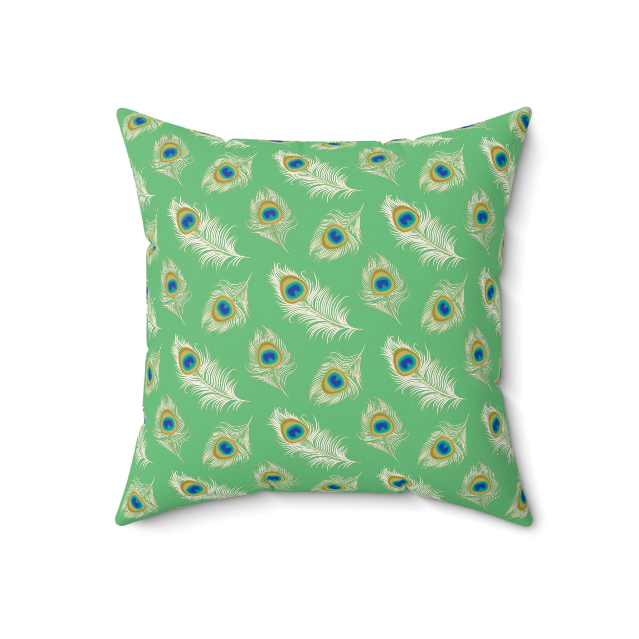 Introducing the Peacock Feather Pillow, the perfect home decor to add a touch of sophistication to any room. The pillow features a beautiful peacock feather print all over, designed to add a sense of luxury to any interior. With a 100% polyester cover and a 100% polyester pillow, this luxurious cushion is both comfortable and visually stunning. The double sided print ensures that the artwork looks beautiful from every angle and the concealed zipper allows for easy removal and cleaning. Pre-constructed for convenience, the item has a size variance of +/- 0.5" for a perfect fit. Ideal for any home, the Peacock Feather Pillow is sure to make a statement.