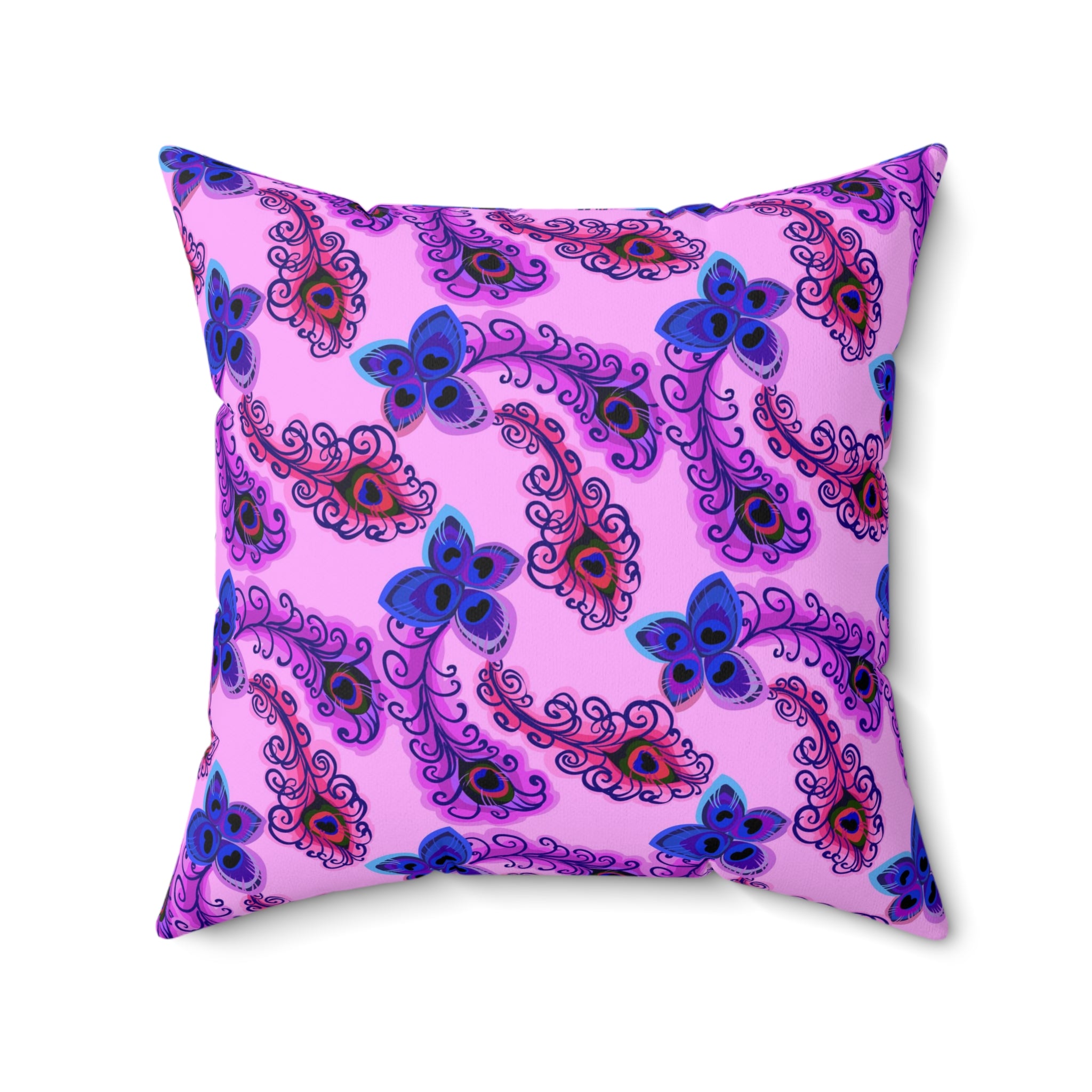 Introducing the Peacock Feather Pillow, the perfect home decor to add a touch of sophistication to any room. The pillow features a beautiful peacock feather print all over, designed to add a sense of luxury to any interior. With a 100% polyester cover and a 100% polyester pillow, this luxurious cushion is both comfortable and visually stunning. The double sided print ensures that the artwork looks beautiful from every angle and the concealed zipper allows for easy removal and cleaning. Pre-constructed for convenience, the item has a size variance of +/- 0.5" for a perfect fit. Ideal for any home, the Peacock Feather Pillow is sure to make a statement.