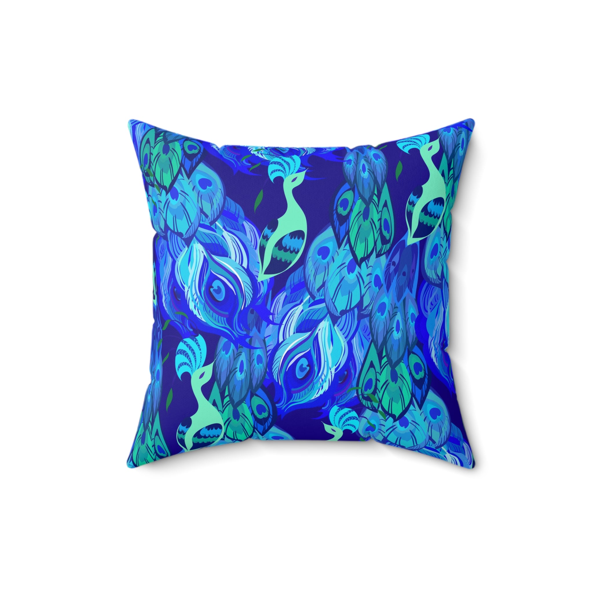 Introducing the Peacock Feather Pillow, the perfect home decor to add a touch of sophistication to any room. The pillow features a beautiful peacock feather print all over, designed to add a sense of luxury to any interior. With a 100% polyester cover and a 100% polyester pillow, this luxurious cushion is both comfortable and visually stunning. The double sided print ensures that the artwork looks beautiful from every angle and the concealed zipper allows for easy removal and cleaning. Pre-constructed for convenience, the item has a size variance of +/- 0.5" for a perfect fit. Ideal for any home, the Peacock Feather Pillow is sure to make a statement.