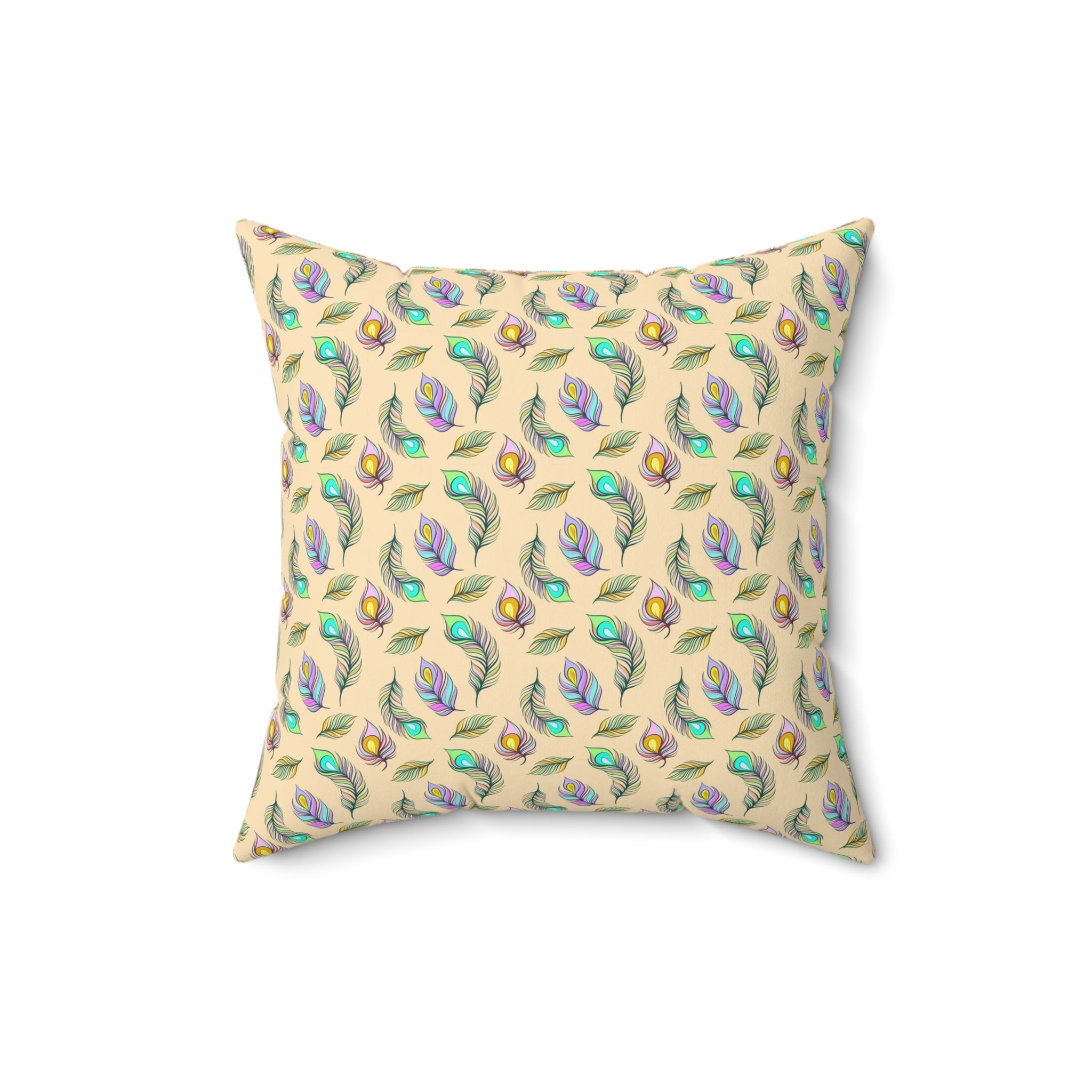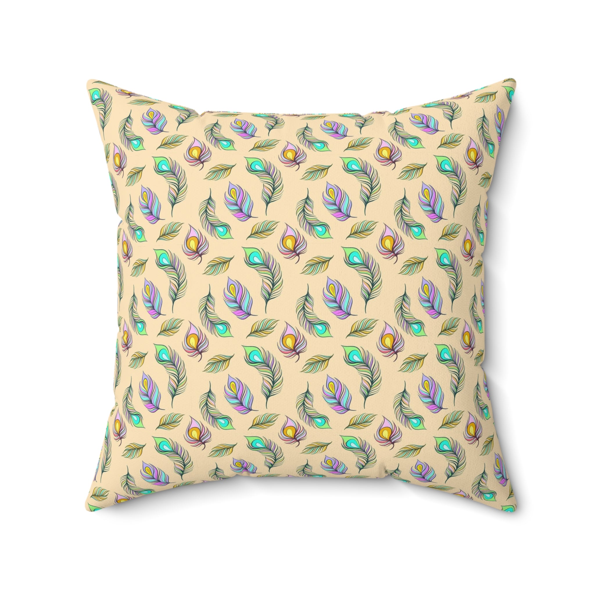 Introducing the Peacock Feather Pillow, the perfect home decor to add a touch of sophistication to any room. The pillow features a beautiful peacock feather print all over, designed to add a sense of luxury to any interior. With a 100% polyester cover and a 100% polyester pillow, this luxurious cushion is both comfortable and visually stunning. The double sided print ensures that the artwork looks beautiful from every angle and the concealed zipper allows for easy removal and cleaning. Pre-constructed for convenience, the item has a size variance of +/- 0.5" for a perfect fit. Ideal for any home, the Peacock Feather Pillow is sure to make a statement.