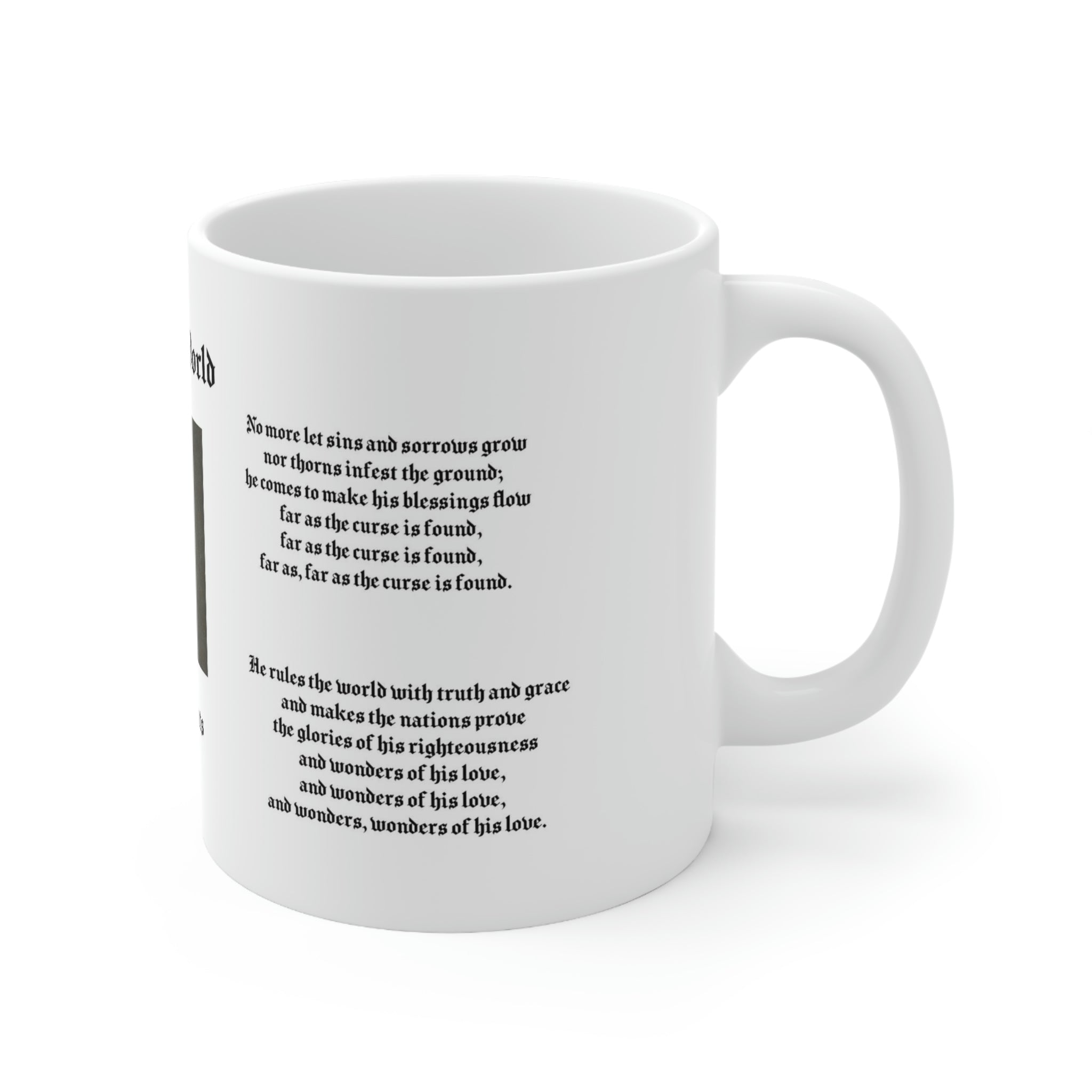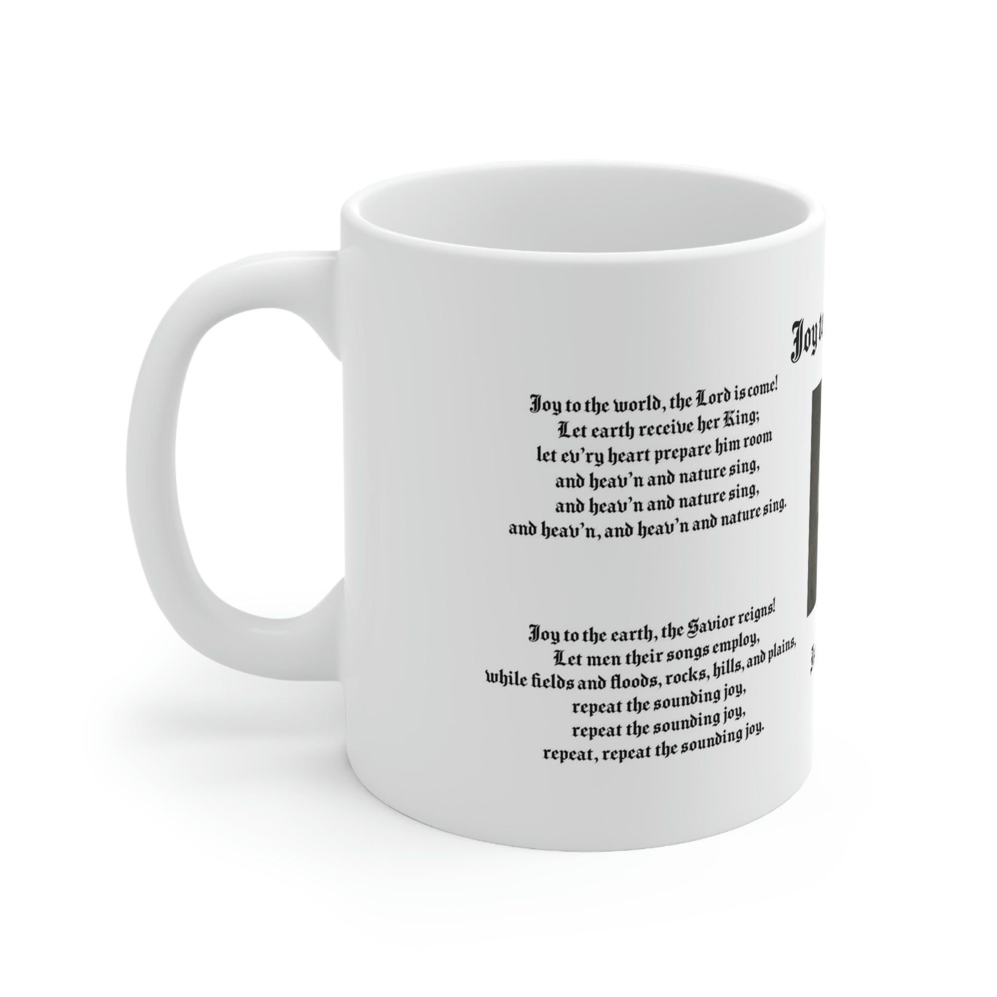 Sip your morning coffee or tea from this one-of-a-kind mug, featuring the words to Isaac Watts beloved Christmas Carol "Joy To The World". This personalized 11-ounce ceramic white mug is microwavable and dishwasher safe, with rounded corners and a convenient C-handle. As a bonus, it's lead free. The advanced printing technology ensures your design comes to life, making this an ideal gift for lovers of coffee, tea, and hot chocolate. Give yourself or someone special a unique gift that will remind them of there favorite hymn that will be cherished for years to come!