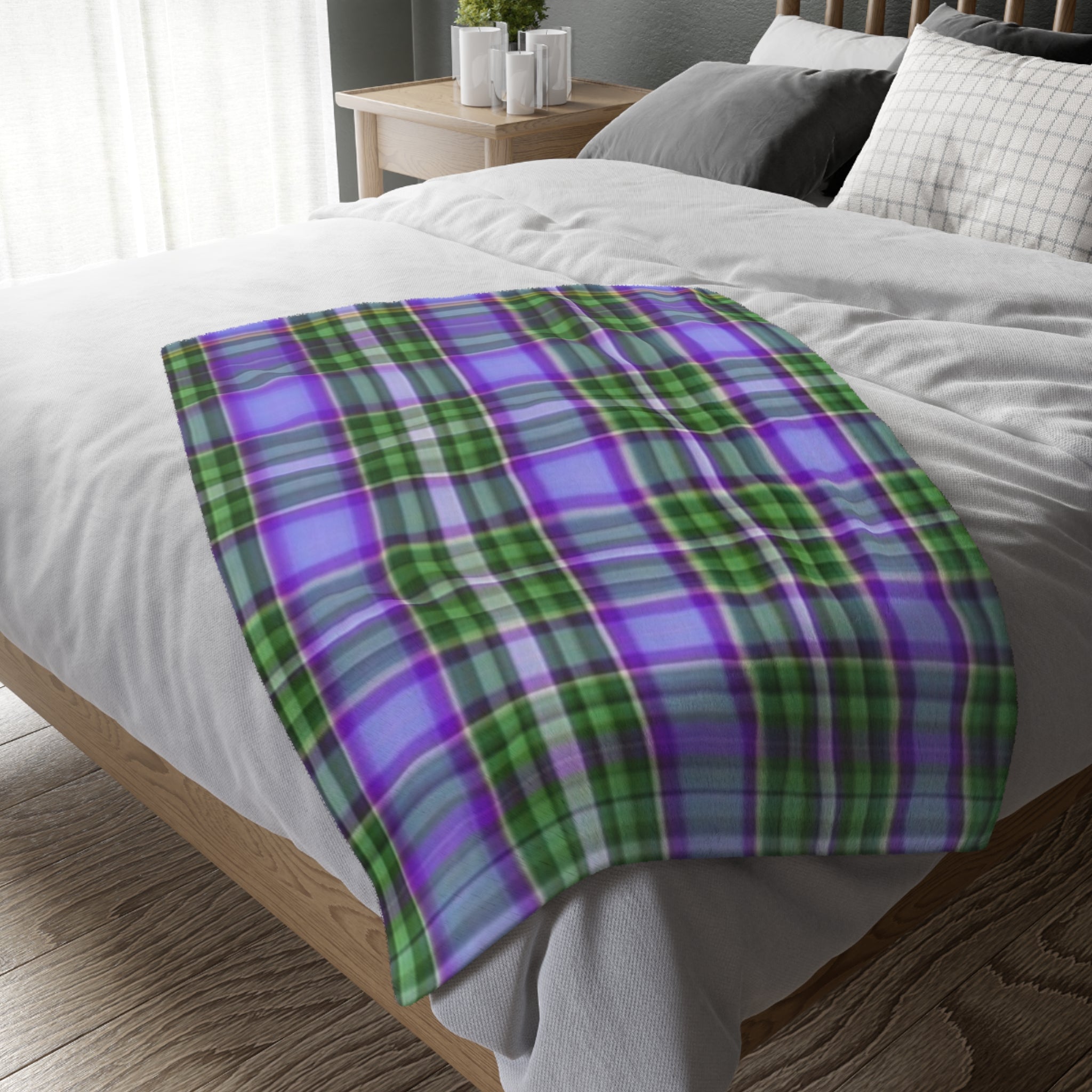 Discover a truly unique way to add the perfect touch of fun and style to any living space! Our Colorful Plaid Blanklets are a sight to behold – an array of bright colors and bold designs that will brighten up any room. Crafted in 100% polyester, these cozy blankets will provide the perfect amount of warmth and comfort. Plus, they're durable enough to last through regular wear and tear, and can even be used as a picnic blanket. Available in three sizes, and with two-sided print and 2" stitched edge, you can customize it to fit anyone's personality and style. Strands of white fabric may be partly visible under the print surface, giving each blanket its own unique charm. Get your Colorful Plaid Blanket today and cozy up in style!