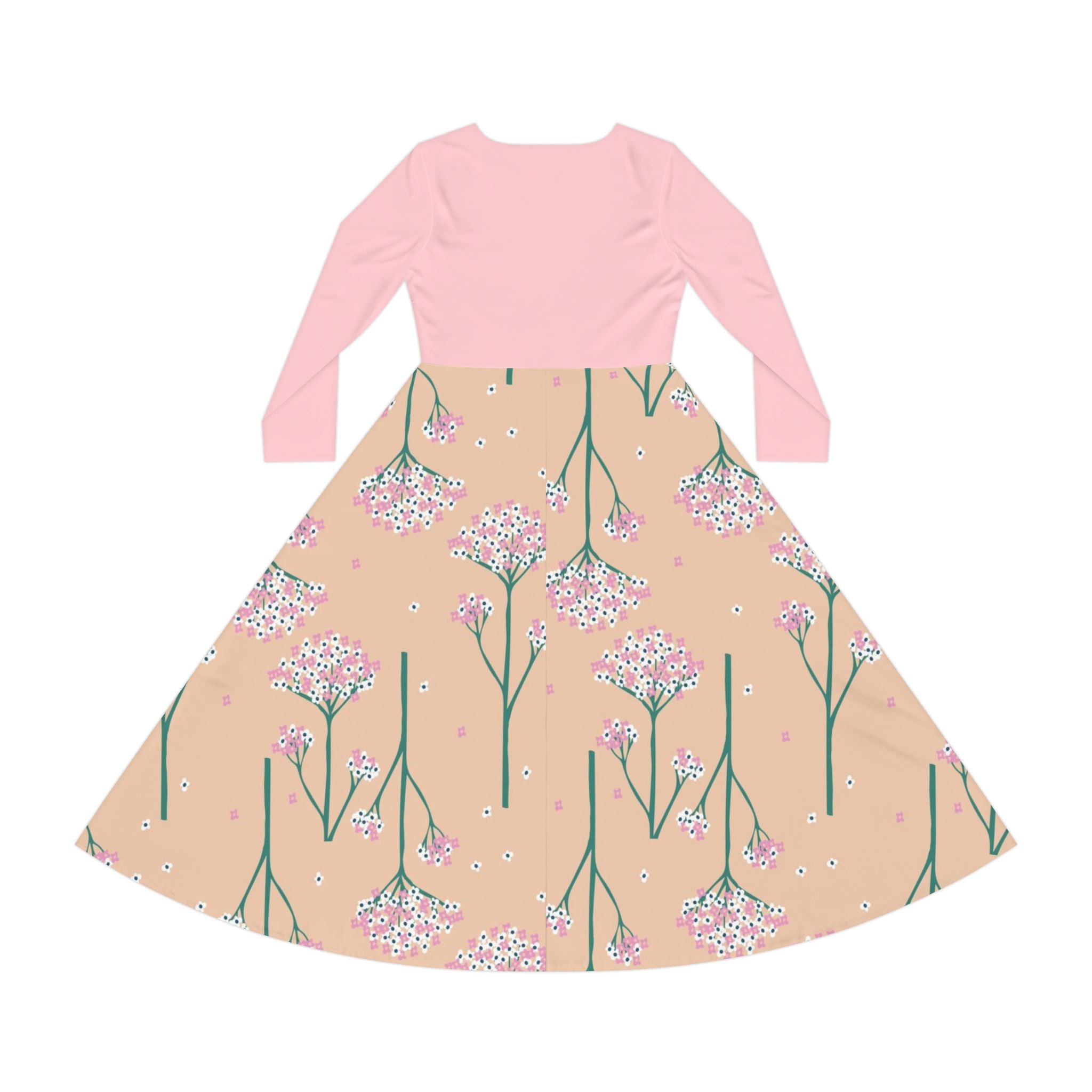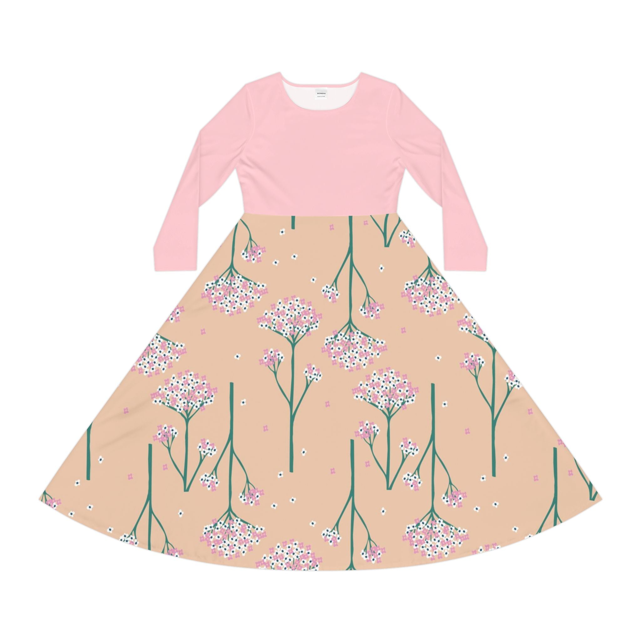 Make an instant classic with this stylish Women Dress! Crafted from a polyester milk silk blend, this custom dance dress is as comfy as it is chic. Its regular fit, scoop-shaped, high-cut neckline adds the perfect touch of class for any setting, from the dance floor onward. For a unique twist, this dress features a unique printing pattern on the bottom and plain-colored top that matches the bottom perfectly. With its breathable fabric and beautiful design, this dress is an absolute must-have!
