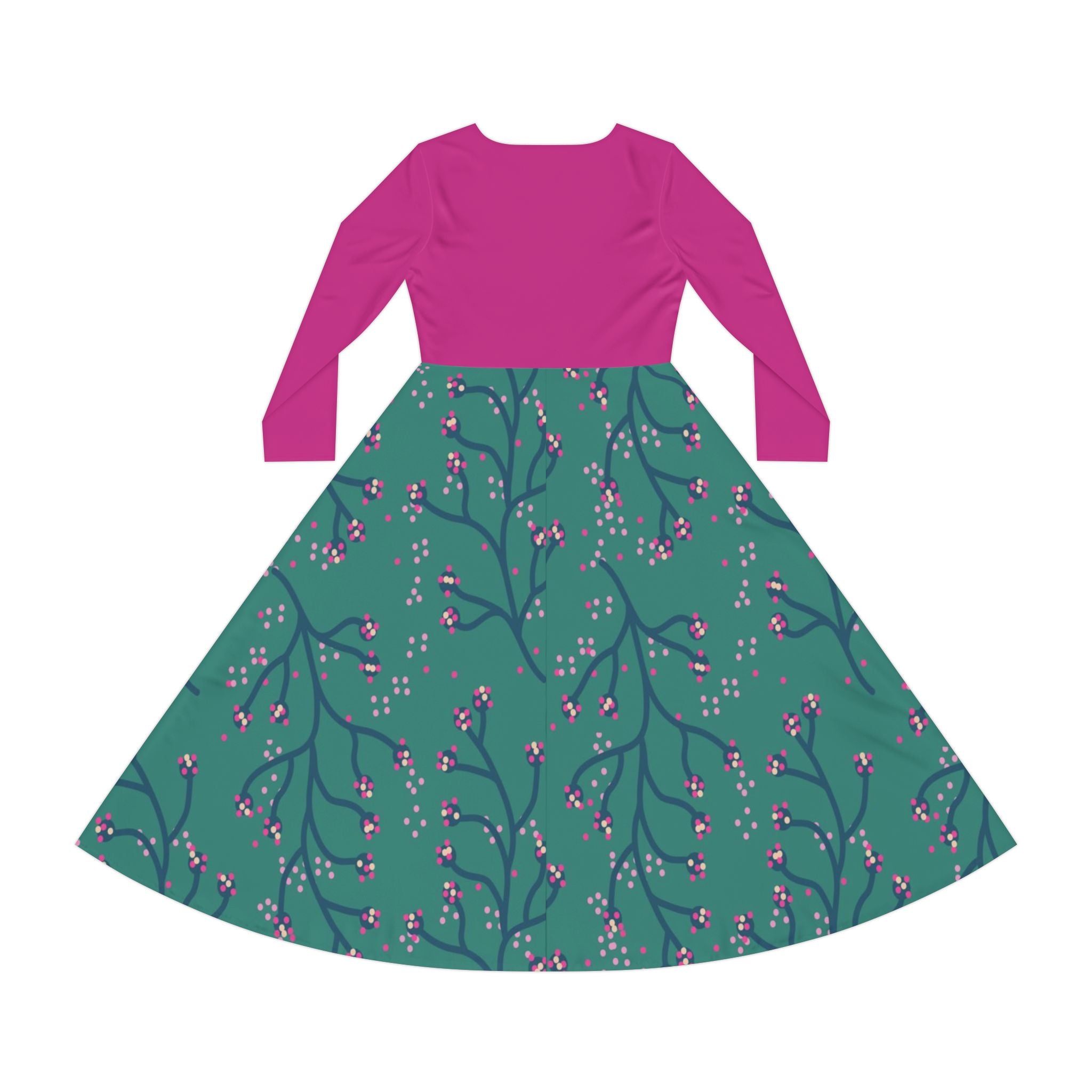Make an instant classic with this stylish Women Dress! Crafted from a polyester milk silk blend, this custom dance dress is as comfy as it is chic. Its regular fit, scoop-shaped, high-cut neckline adds the perfect touch of class for any setting, from the dance floor onward. For a unique twist, this dress features a unique printing pattern on the bottom and plain-colored top that matches the bottom perfectly. With its breathable fabric and beautiful design, this dress is an absolute must-have!
