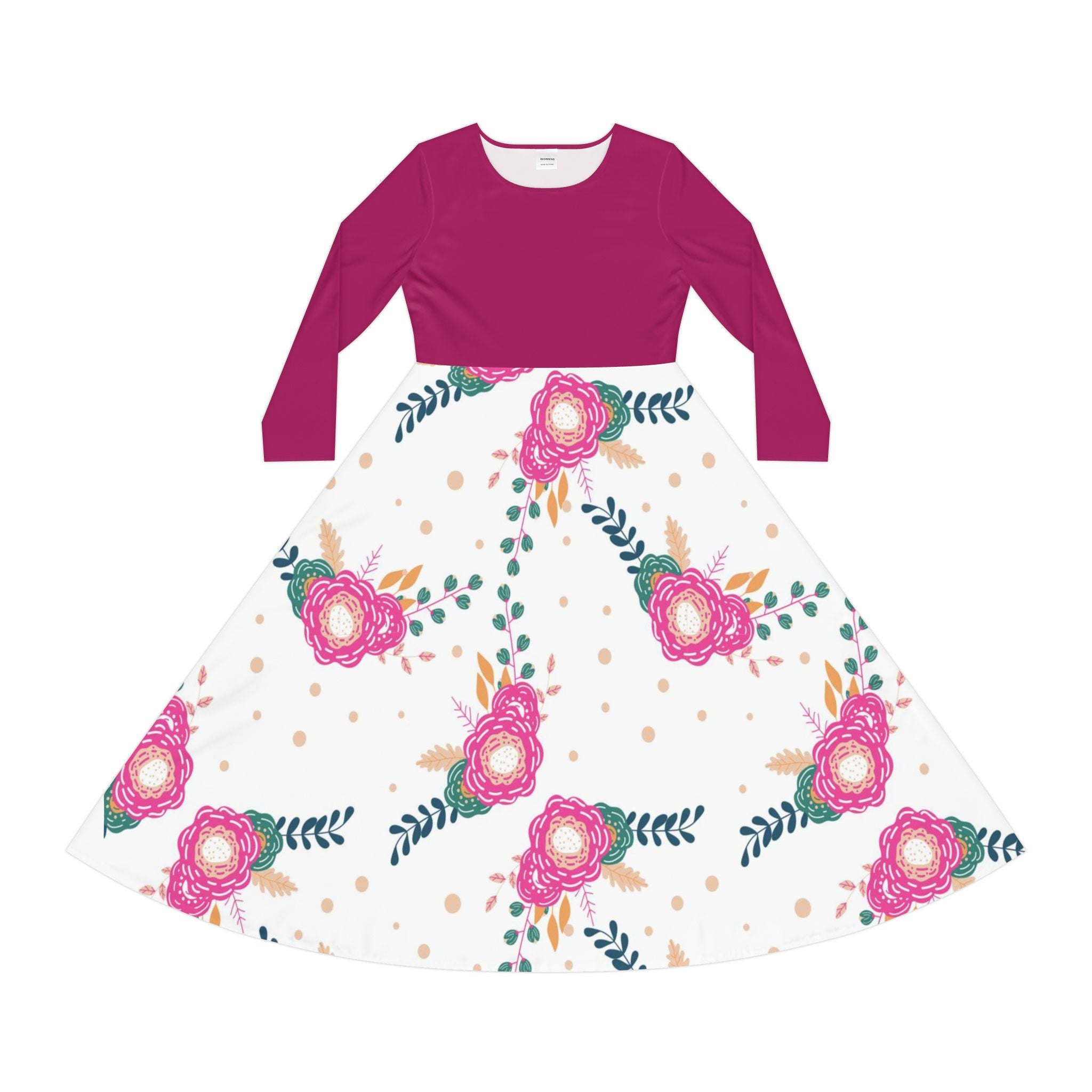 Make an instant classic with this stylish Women Dress! Crafted from a polyester milk silk blend, this custom dance dress is as comfy as it is chic. Its regular fit, scoop-shaped, high-cut neckline adds the perfect touch of class for any setting, from the dance floor onward. For a unique twist, this dress features a unique printing pattern on the bottom and plain-colored top that matches the bottom perfectly. With its breathable fabric and beautiful design, this dress is an absolute must-have!