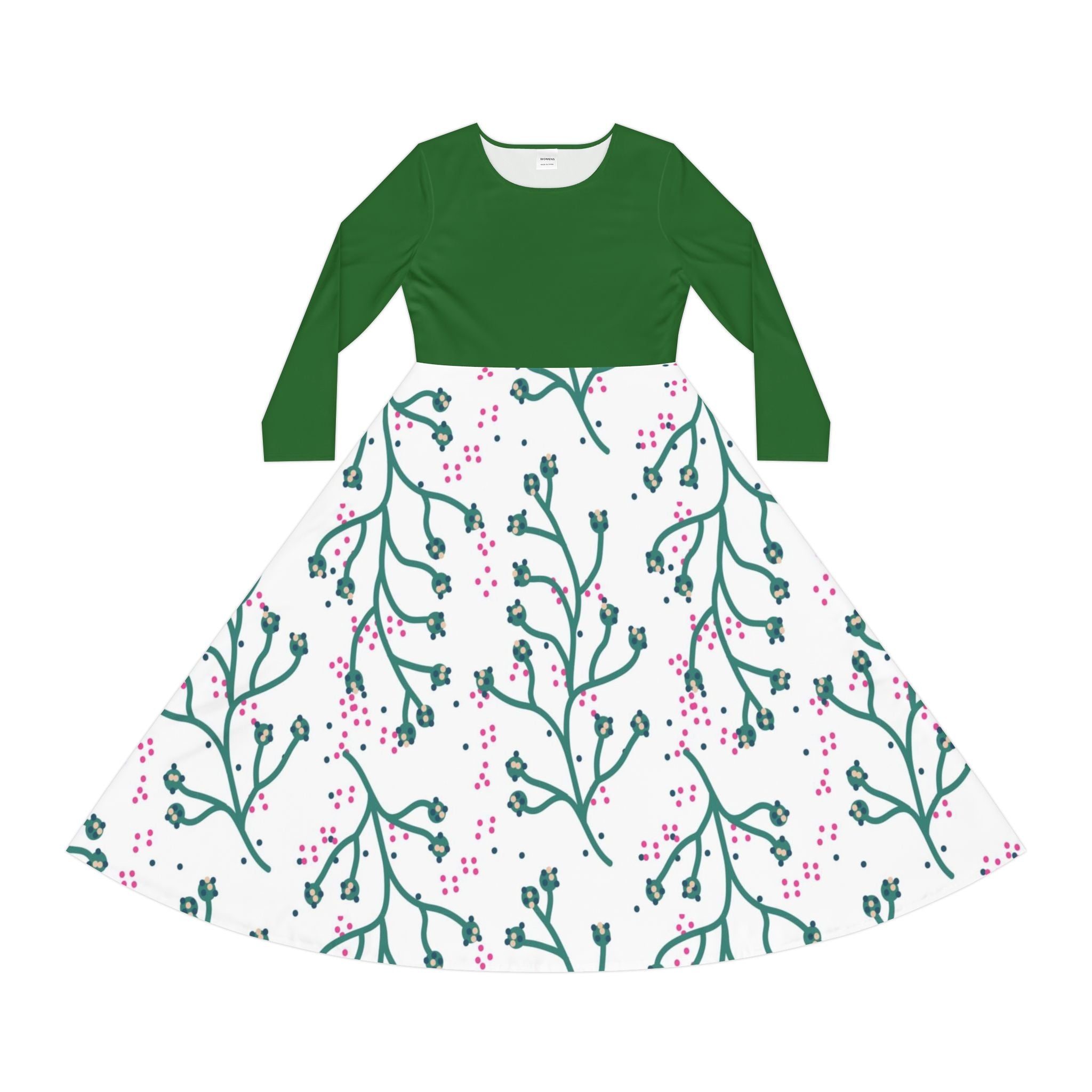 Make an instant classic with this stylish Women Dress! Crafted from a polyester milk silk blend, this custom dance dress is as comfy as it is chic. Its regular fit, scoop-shaped, high-cut neckline adds the perfect touch of class for any setting, from the dance floor onward. For a unique twist, this dress features a unique printing pattern on the bottom and plain-colored top that matches the bottom perfectly. With its breathable fabric and beautiful design, this dress is an absolute must-have!