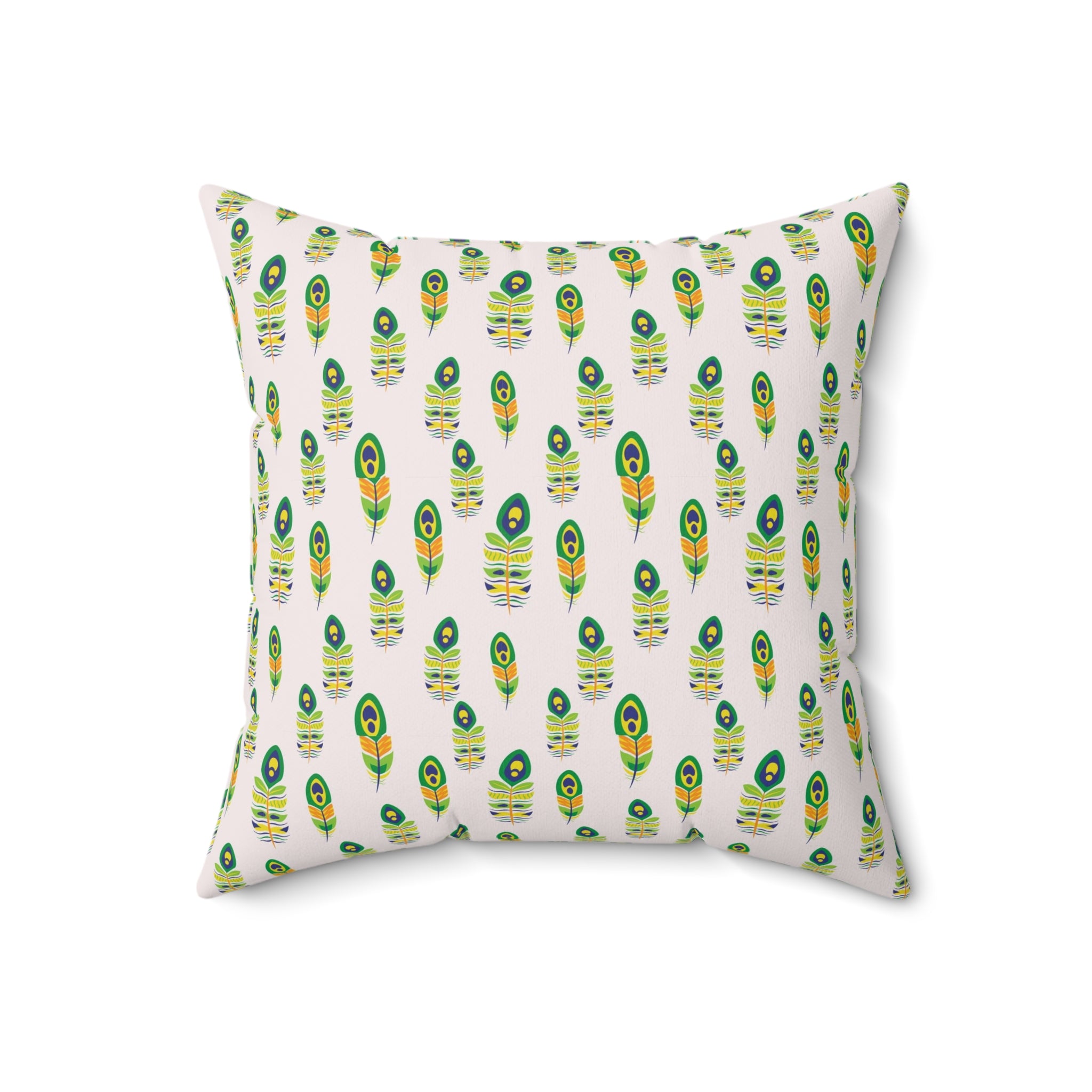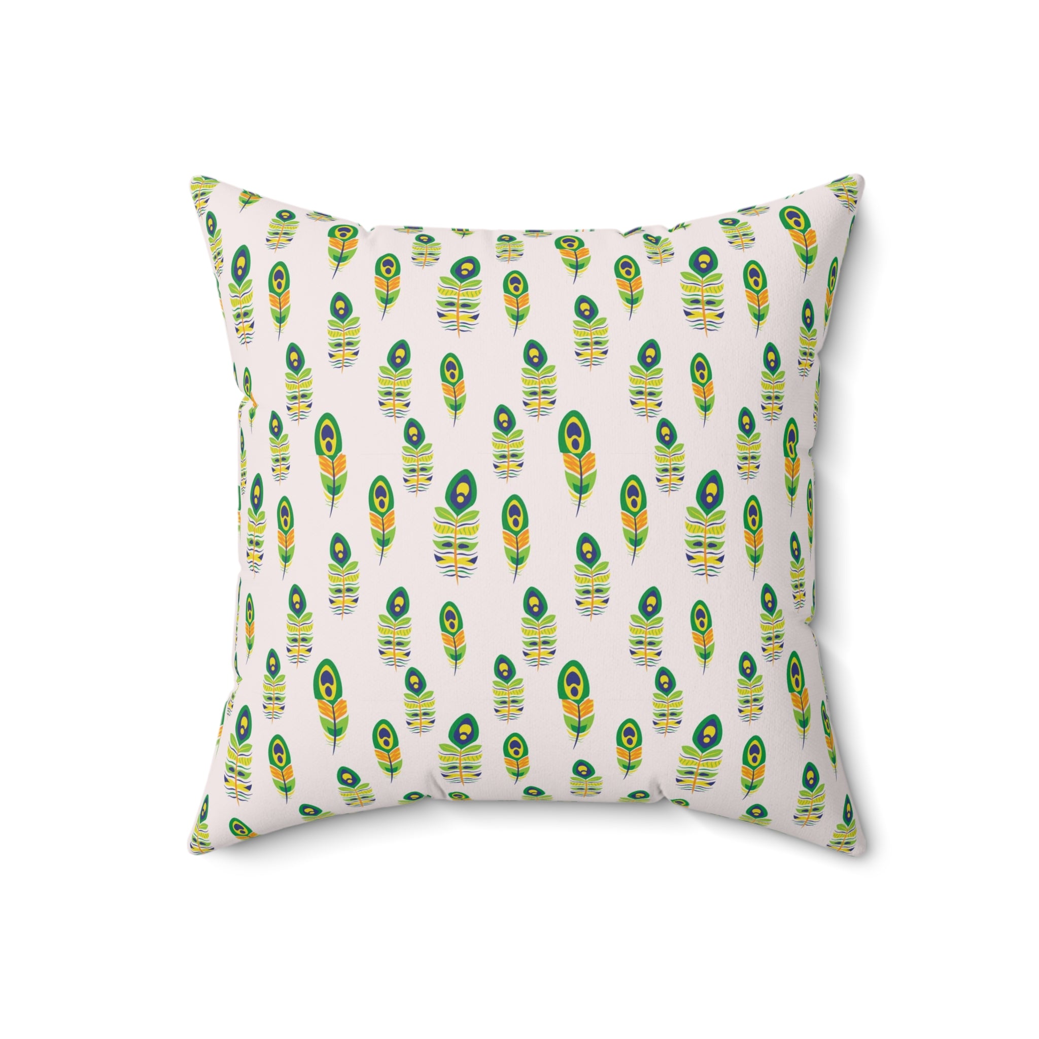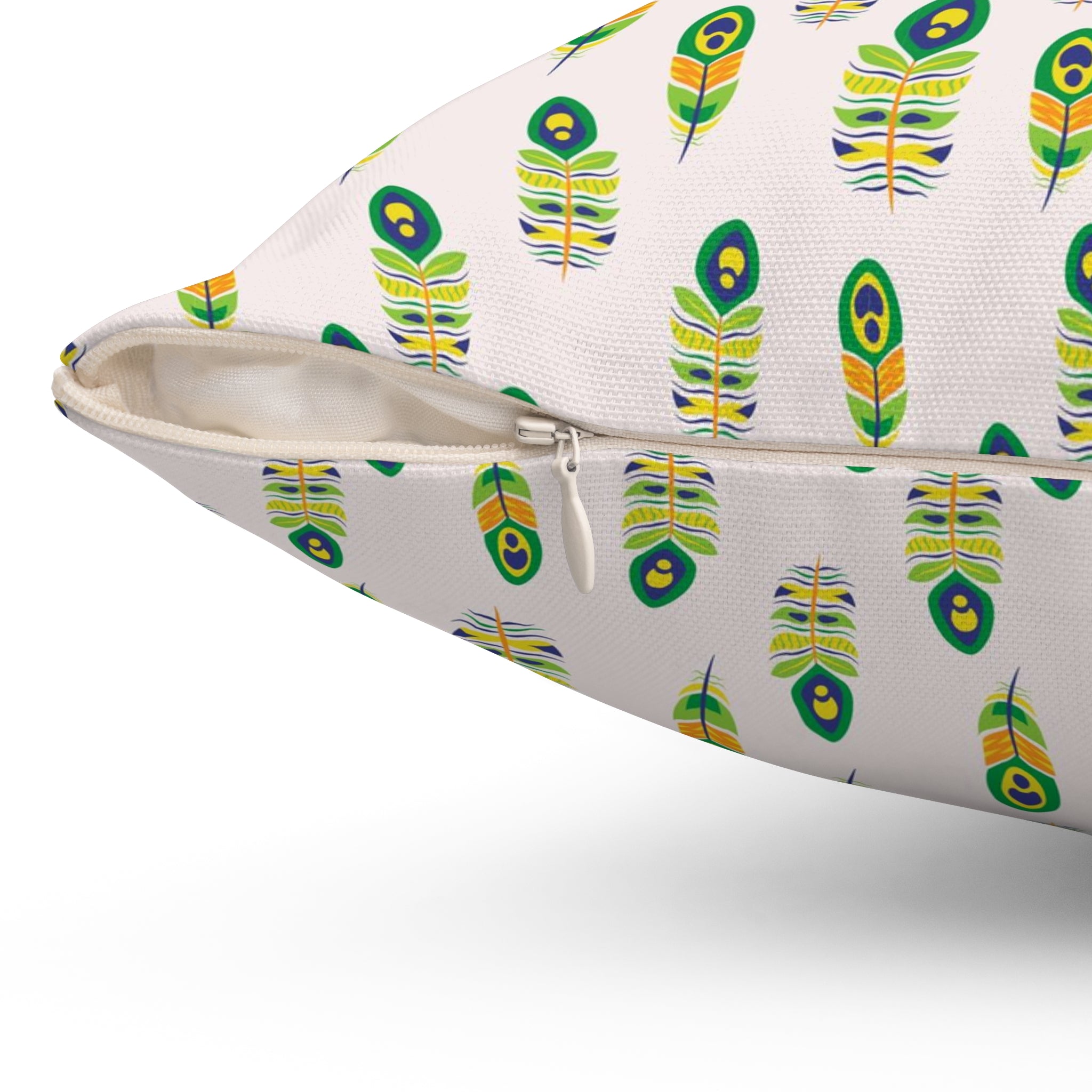 Introducing the Peacock Feather Pillow, the perfect home decor to add a touch of sophistication to any room. The pillow features a beautiful peacock feather print all over, designed to add a sense of luxury to any interior. With a 100% polyester cover and a 100% polyester pillow, this luxurious cushion is both comfortable and visually stunning. The double sided print ensures that the artwork looks beautiful from every angle and the concealed zipper allows for easy removal and cleaning. Pre-constructed for convenience, the item has a size variance of +/- 0.5" for a perfect fit. Ideal for any home, the Peacock Feather Pillow is sure to make a statement.