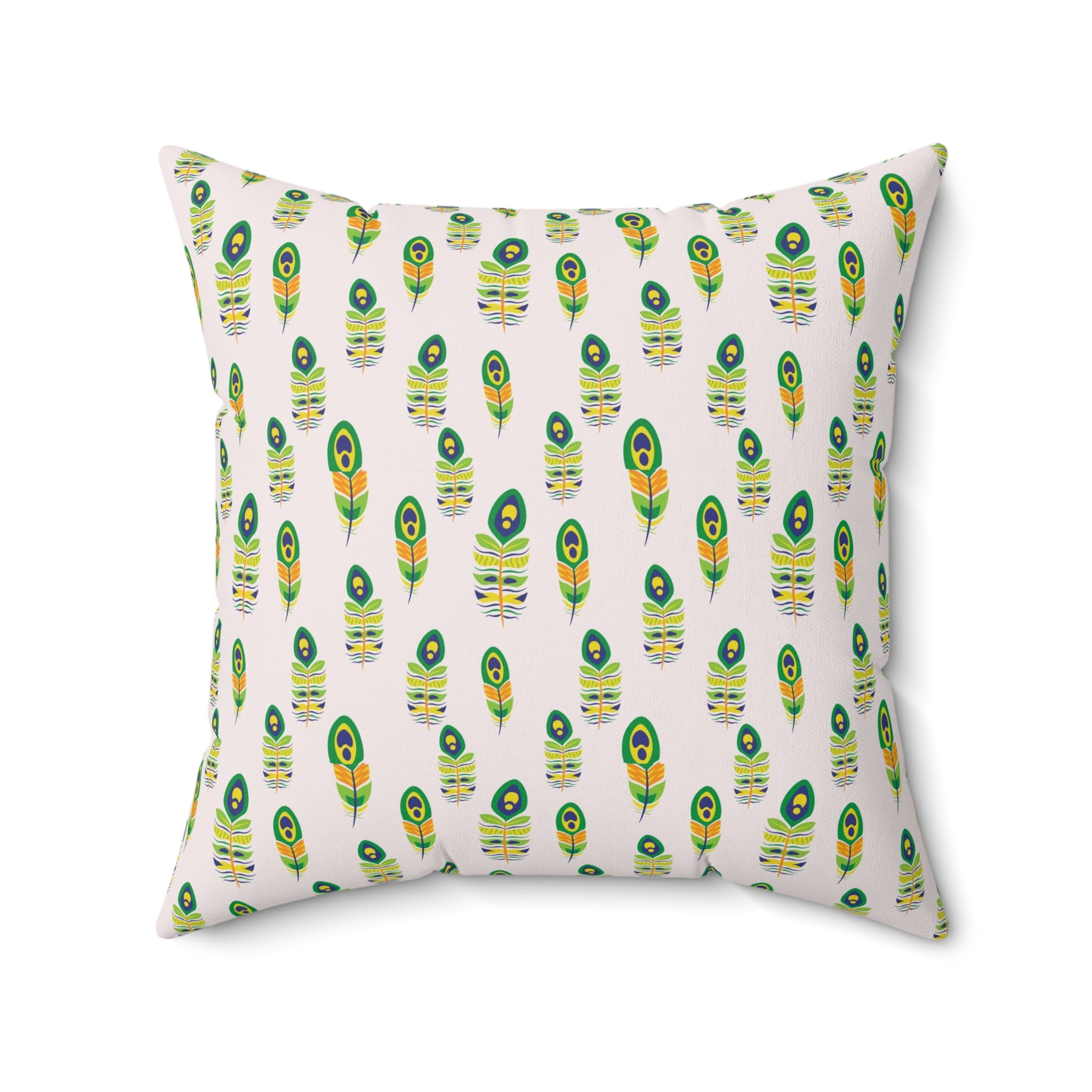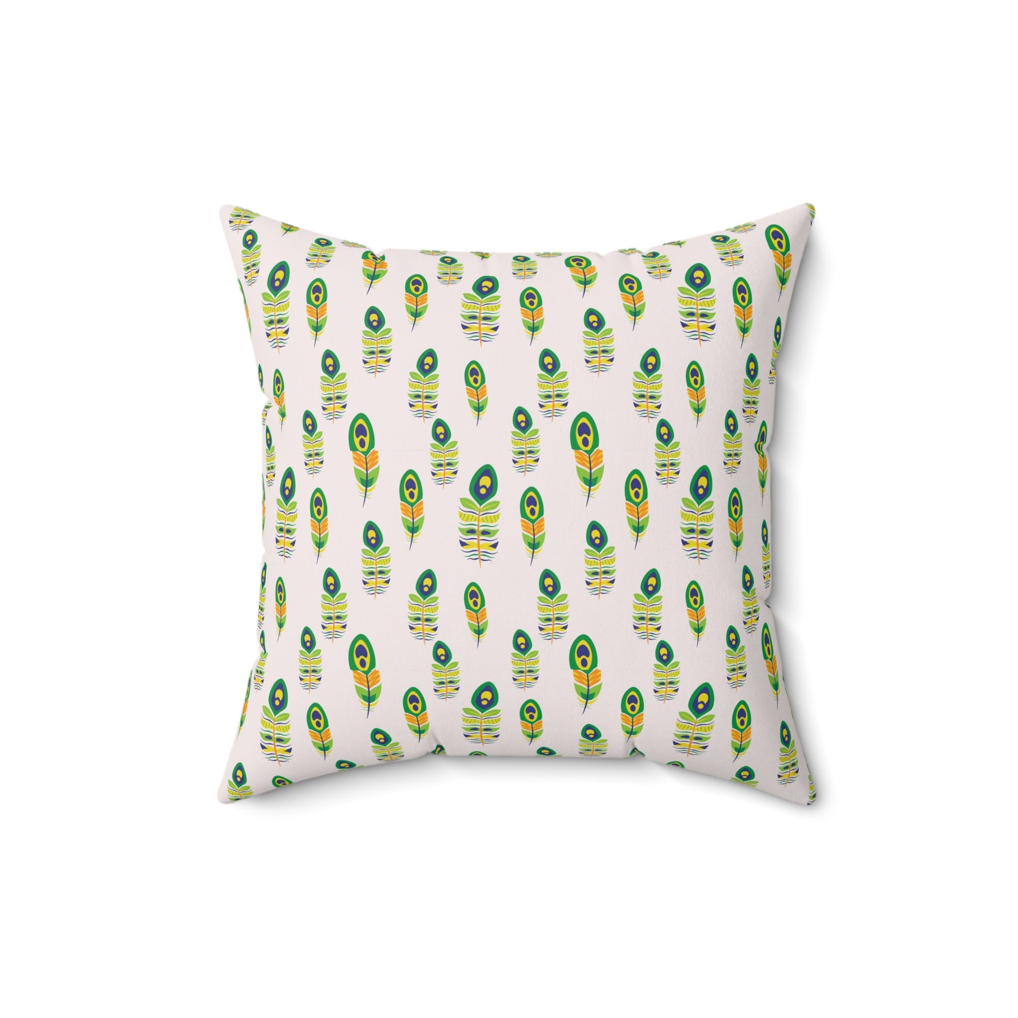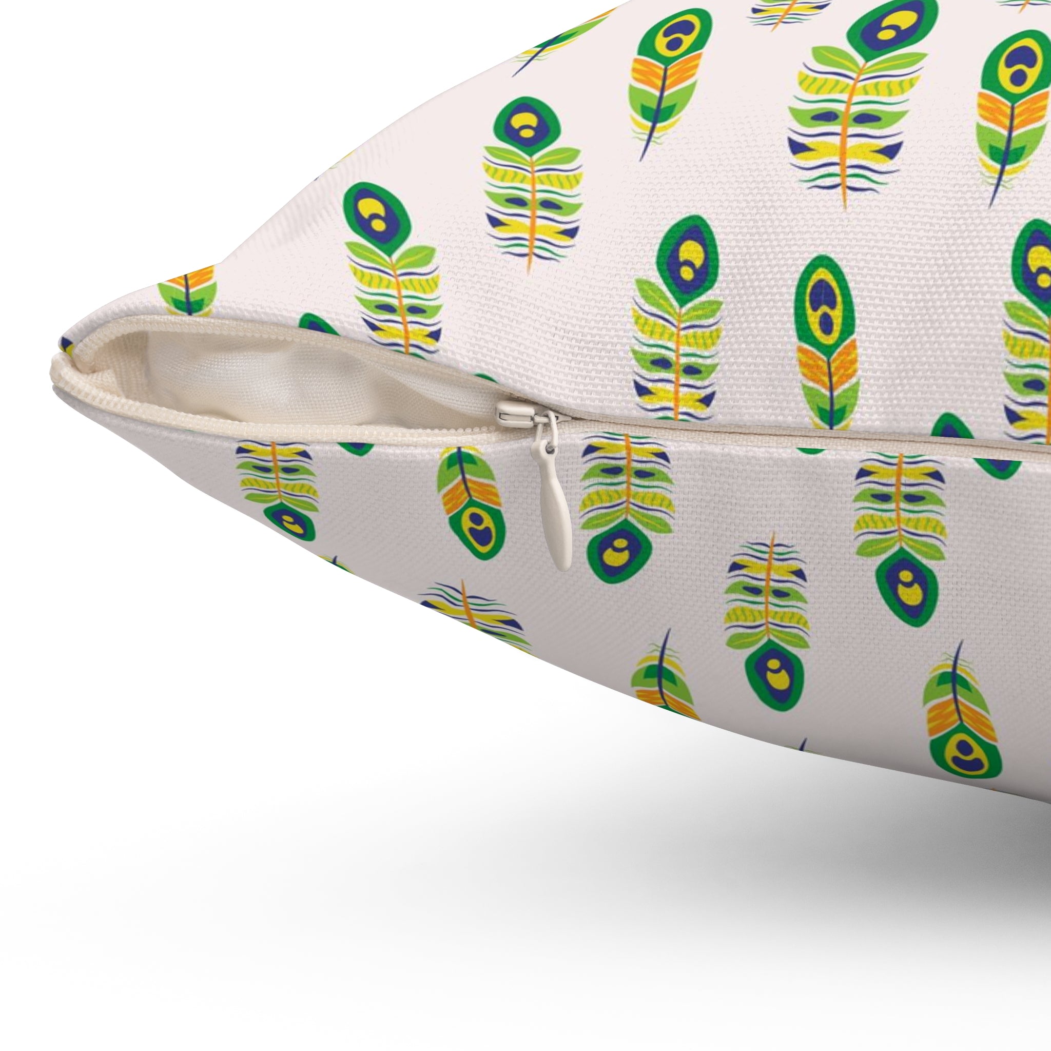 Introducing the Peacock Feather Pillow, the perfect home decor to add a touch of sophistication to any room. The pillow features a beautiful peacock feather print all over, designed to add a sense of luxury to any interior. With a 100% polyester cover and a 100% polyester pillow, this luxurious cushion is both comfortable and visually stunning. The double sided print ensures that the artwork looks beautiful from every angle and the concealed zipper allows for easy removal and cleaning. Pre-constructed for convenience, the item has a size variance of +/- 0.5" for a perfect fit. Ideal for any home, the Peacock Feather Pillow is sure to make a statement.