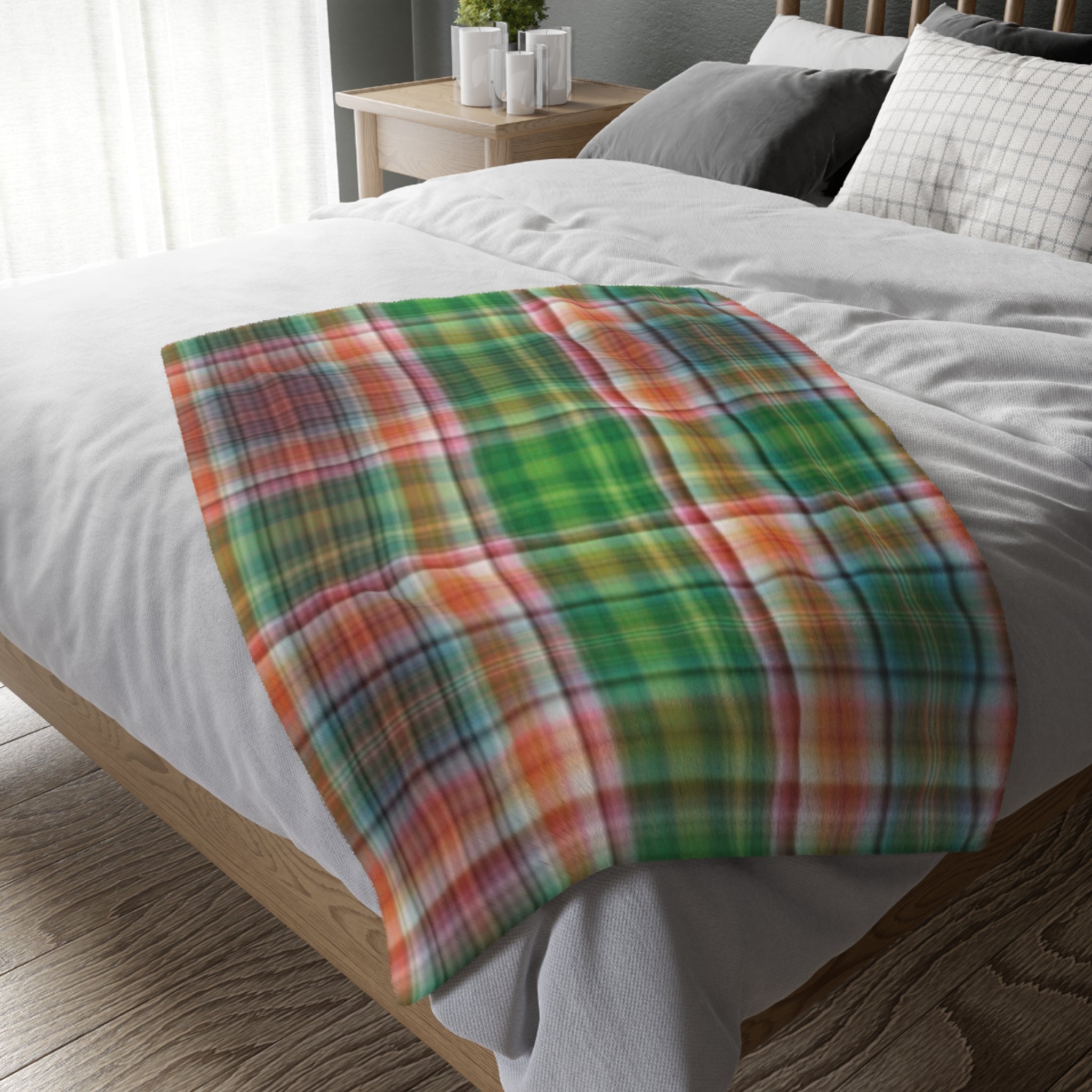 Discover a truly unique way to add the perfect touch of fun and style to any living space! Our Colorful Plaid Blanklets are a sight to behold – an array of bright colors and bold designs that will brighten up any room. Crafted in 100% polyester, these cozy blankets will provide the perfect amount of warmth and comfort. Plus, they're durable enough to last through regular wear and tear, and can even be used as a picnic blanket. Available in three sizes, and with two-sided print and 2" stitched edge, you can customize it to fit anyone's personality and style. Strands of white fabric may be partly visible under the print surface, giving each blanket its own unique charm. Get your Colorful Plaid Blanket today and cozy up in style!