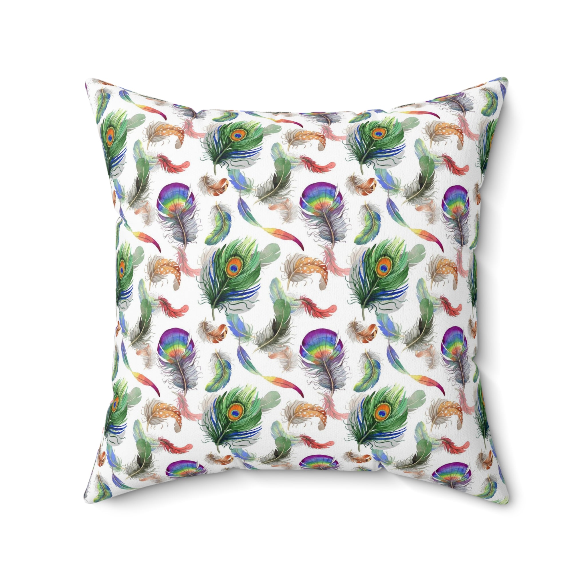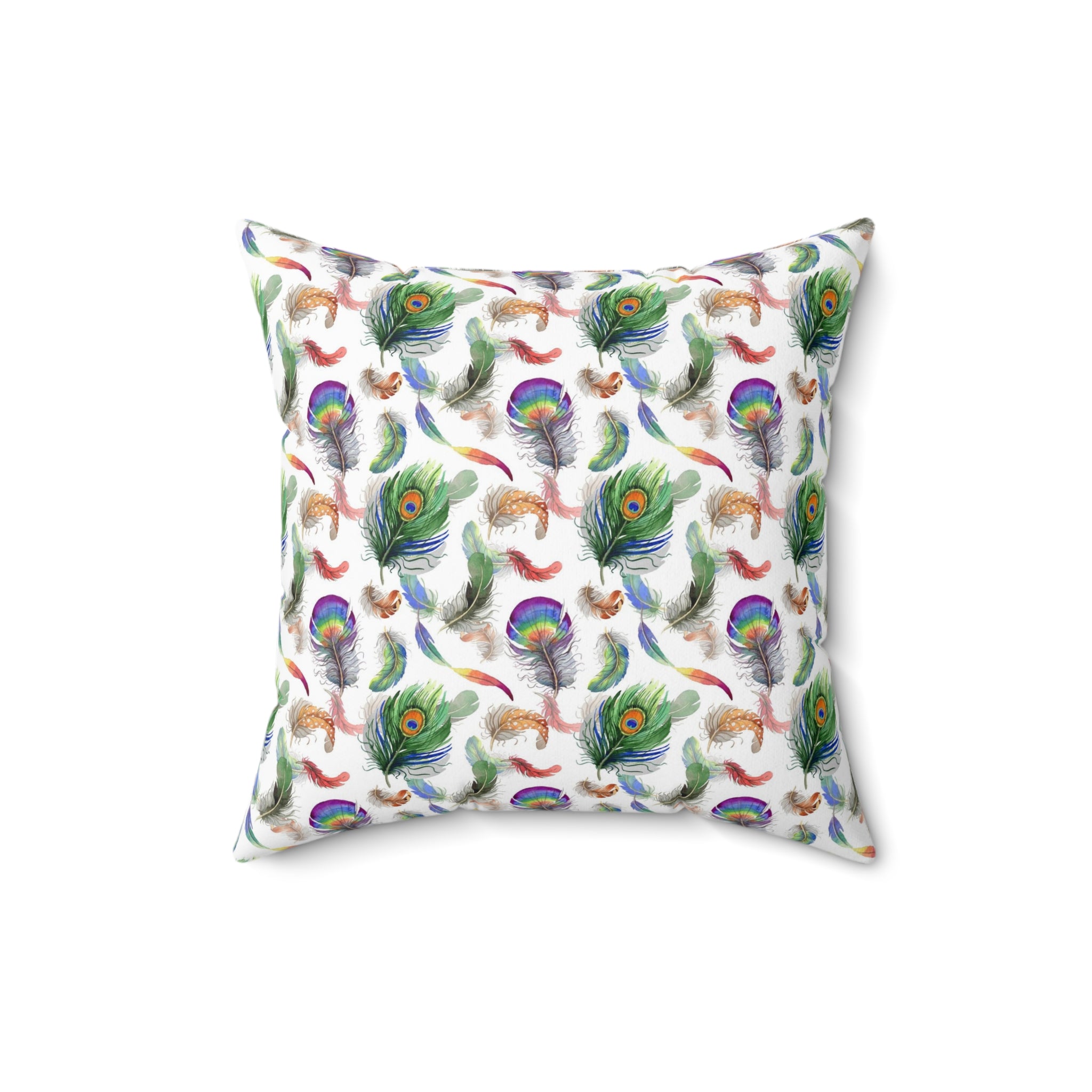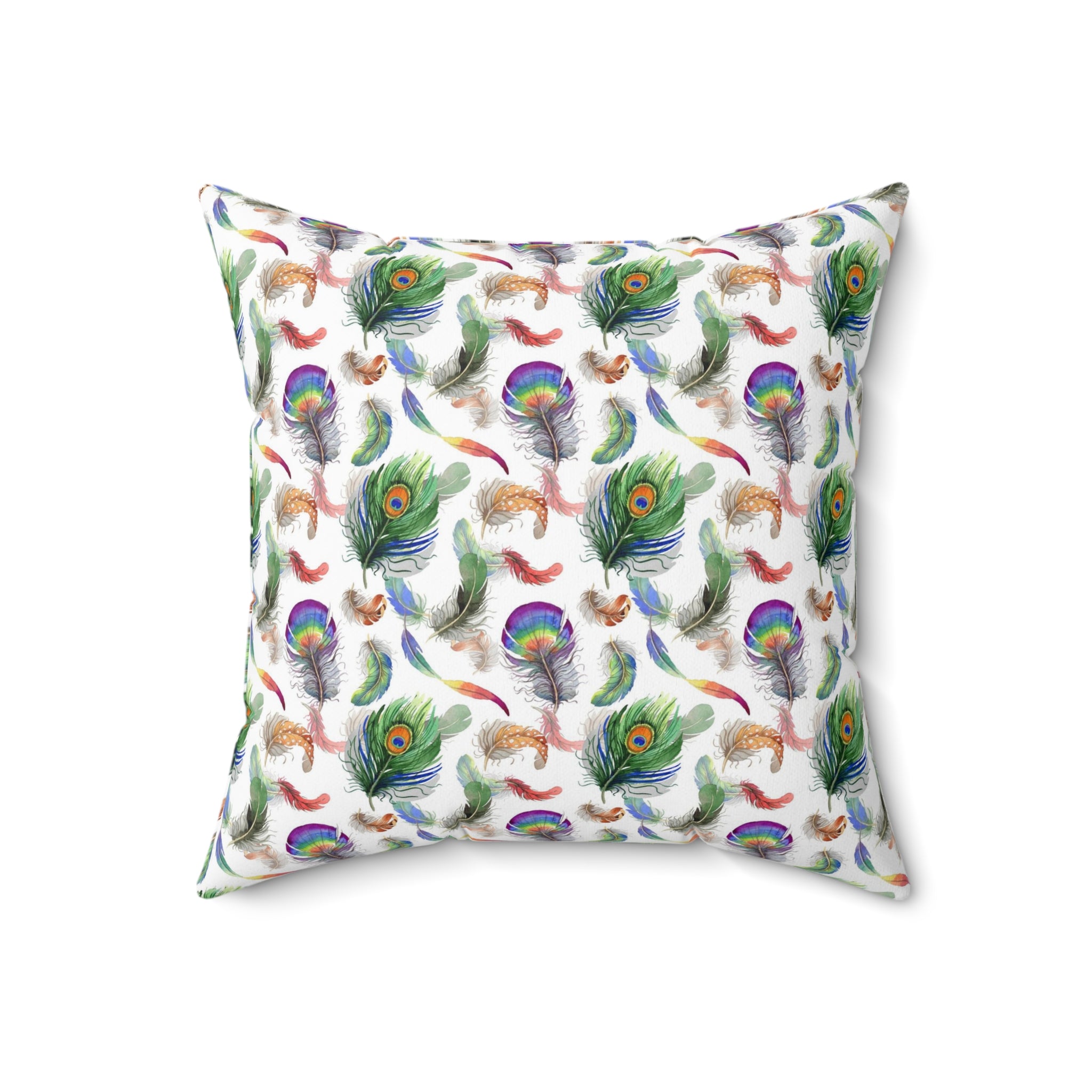 Introducing the Peacock Feather Pillow, the perfect home decor to add a touch of sophistication to any room. The pillow features a beautiful peacock feather print all over, designed to add a sense of luxury to any interior. With a 100% polyester cover and a 100% polyester pillow, this luxurious cushion is both comfortable and visually stunning. The double sided print ensures that the artwork looks beautiful from every angle and the concealed zipper allows for easy removal and cleaning. Pre-constructed for convenience, the item has a size variance of +/- 0.5" for a perfect fit. Ideal for any home, the Peacock Feather Pillow is sure to make a statement.