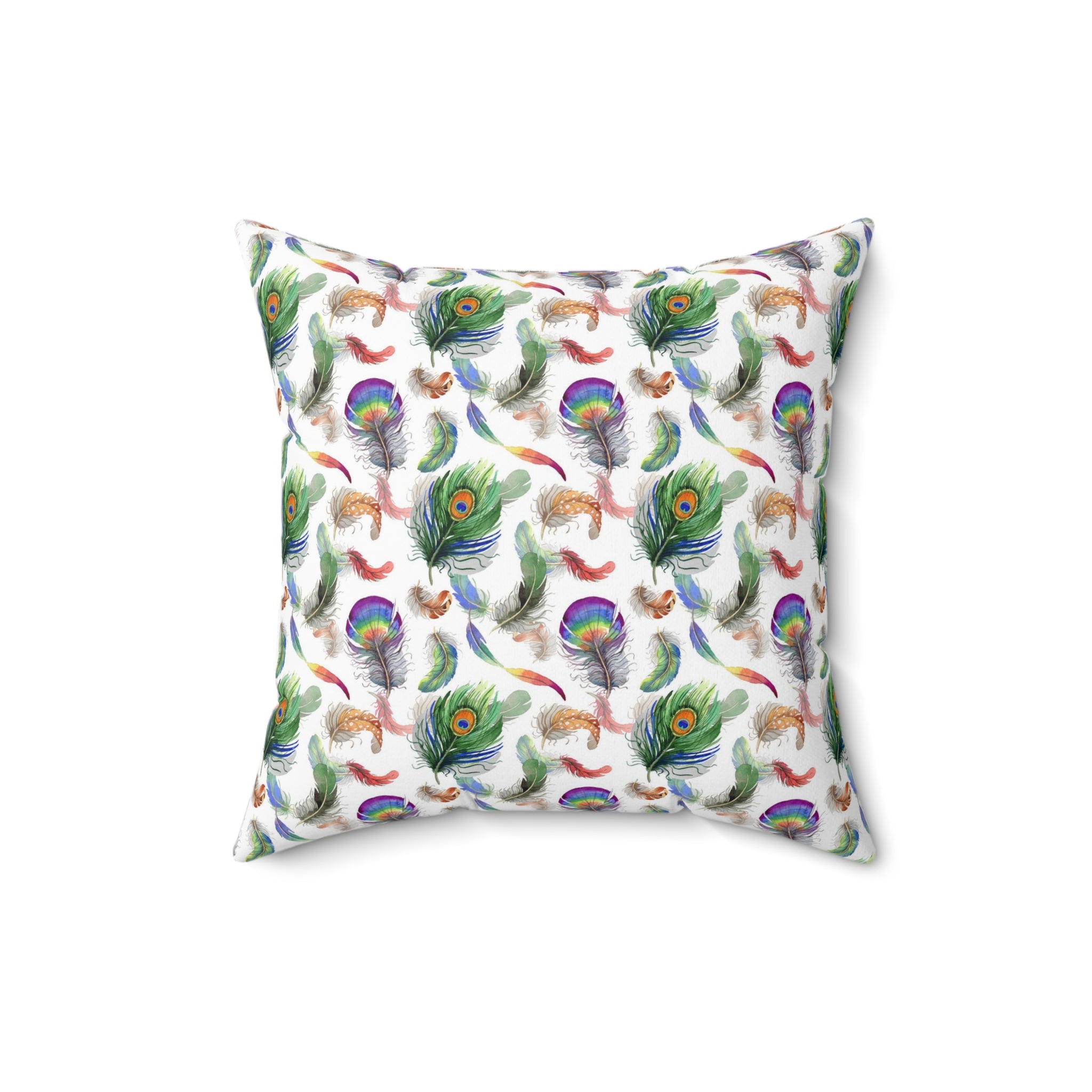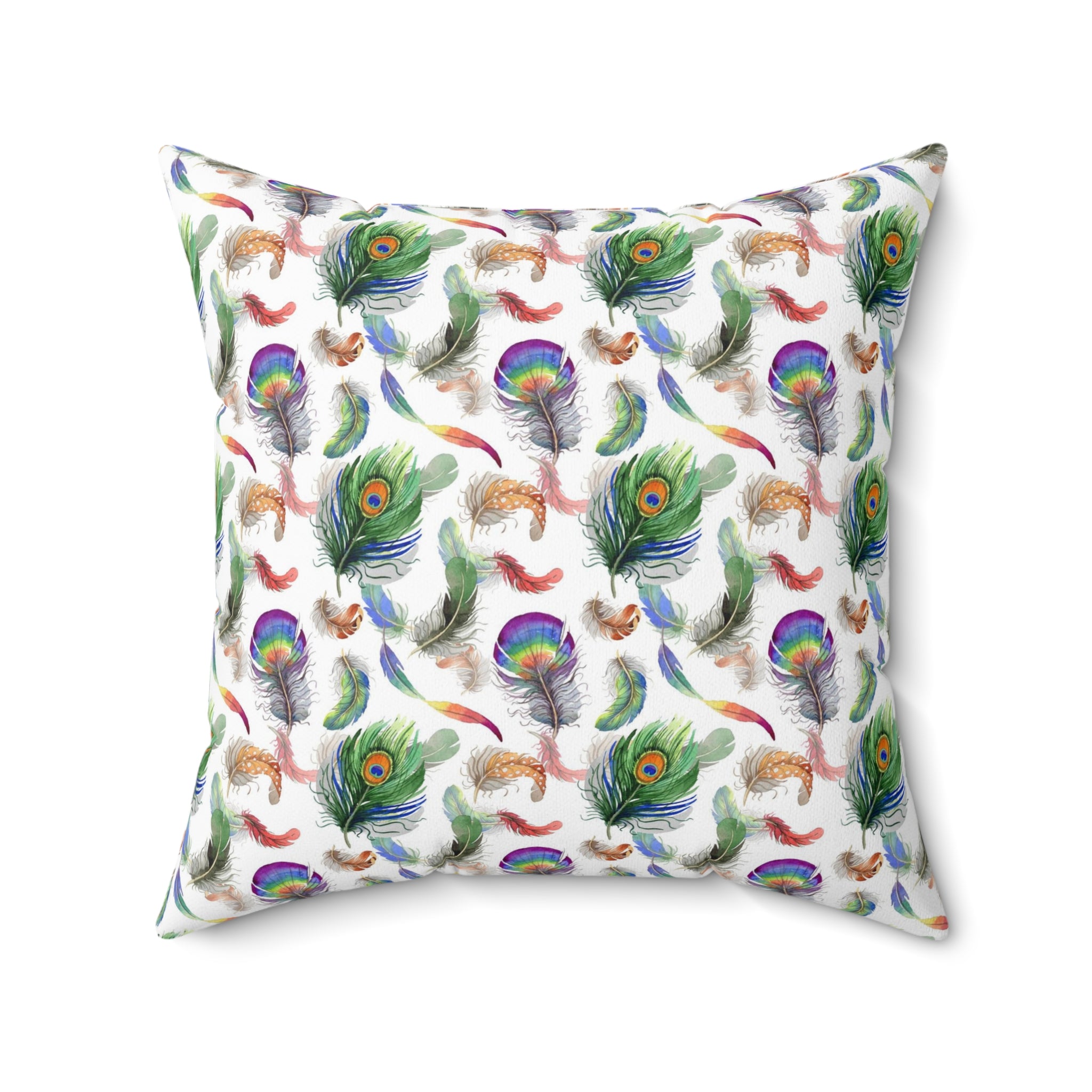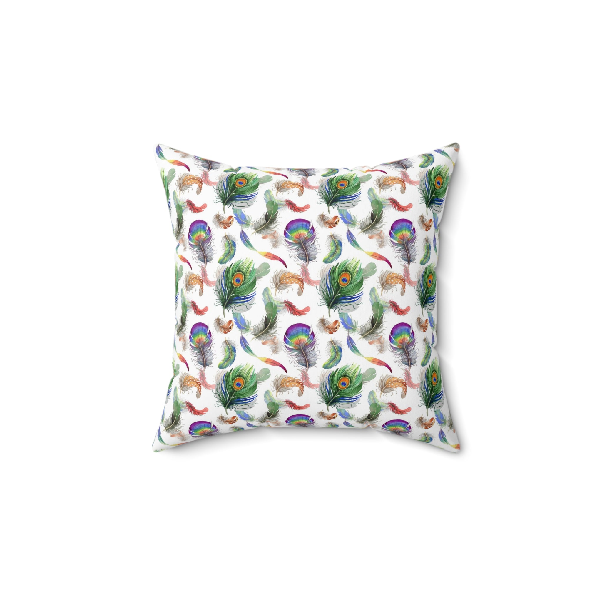 Introducing the Peacock Feather Pillow, the perfect home decor to add a touch of sophistication to any room. The pillow features a beautiful peacock feather print all over, designed to add a sense of luxury to any interior. With a 100% polyester cover and a 100% polyester pillow, this luxurious cushion is both comfortable and visually stunning. The double sided print ensures that the artwork looks beautiful from every angle and the concealed zipper allows for easy removal and cleaning. Pre-constructed for convenience, the item has a size variance of +/- 0.5" for a perfect fit. Ideal for any home, the Peacock Feather Pillow is sure to make a statement.