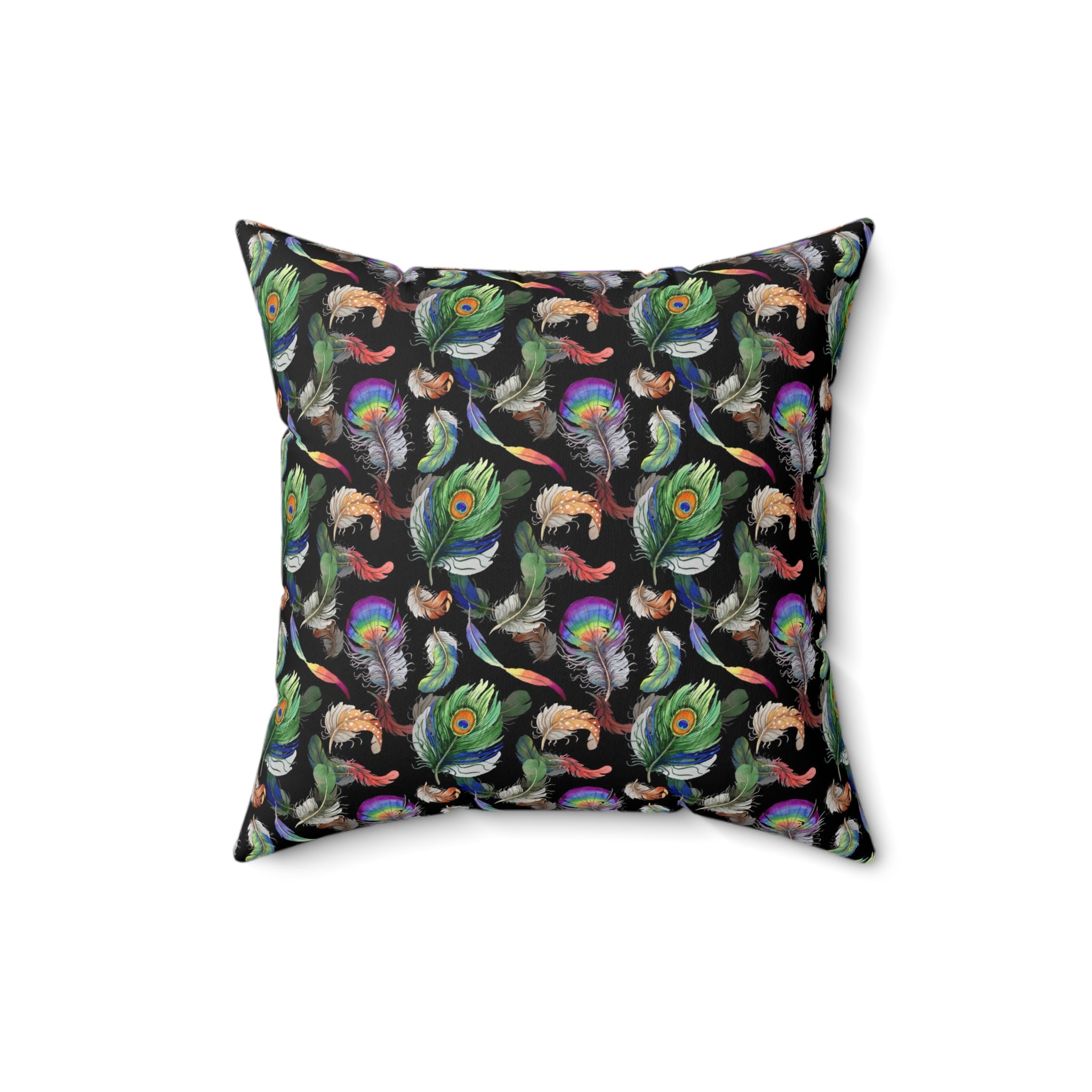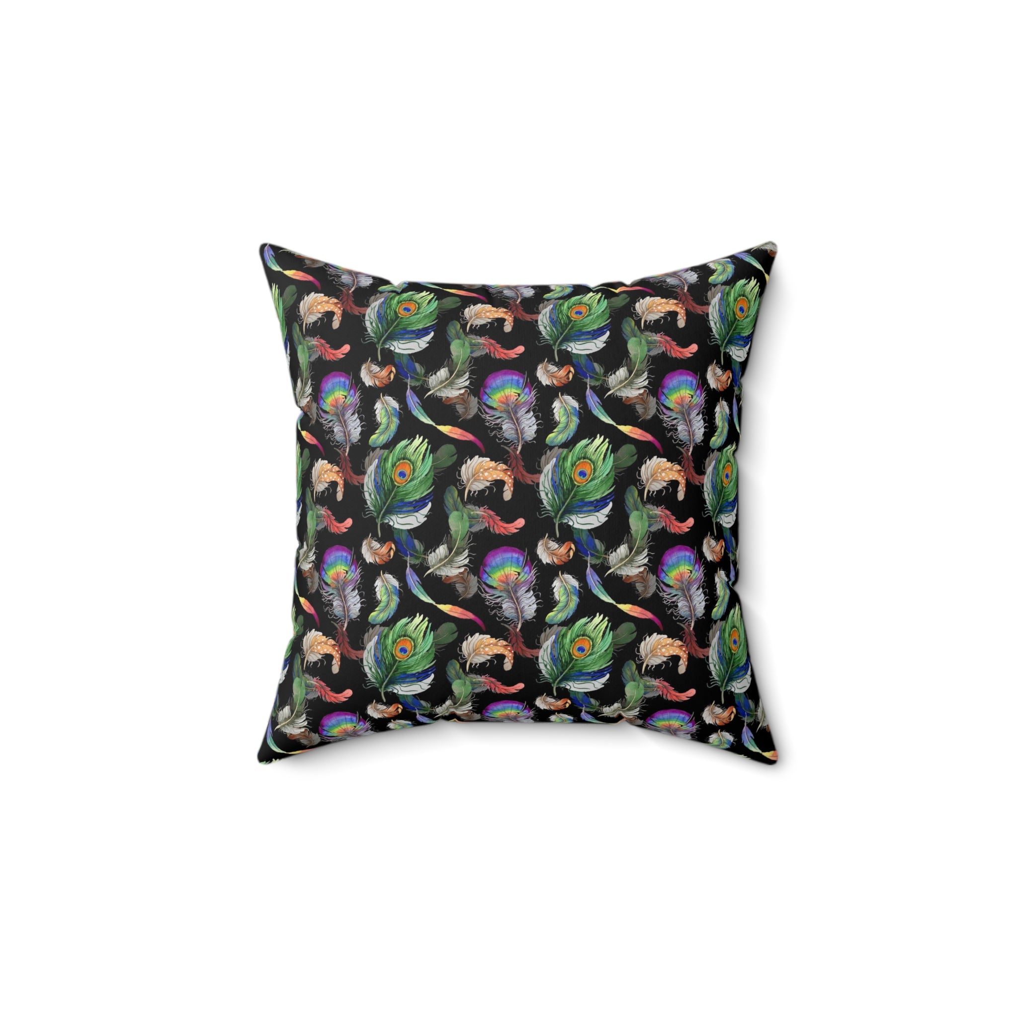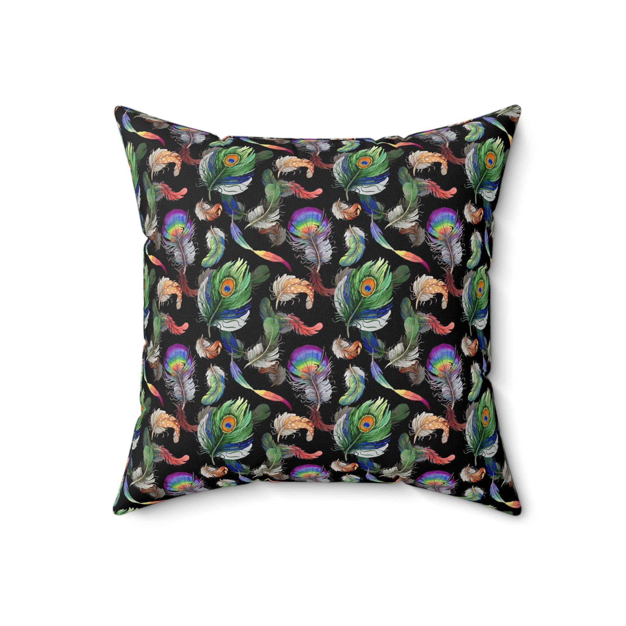 Introducing the Peacock Feather Pillow, the perfect home decor to add a touch of sophistication to any room. The pillow features a beautiful peacock feather print all over, designed to add a sense of luxury to any interior. With a 100% polyester cover and a 100% polyester pillow, this luxurious cushion is both comfortable and visually stunning. The double sided print ensures that the artwork looks beautiful from every angle and the concealed zipper allows for easy removal and cleaning. Pre-constructed for convenience, the item has a size variance of +/- 0.5" for a perfect fit. Ideal for any home, the Peacock Feather Pillow is sure to make a statement.