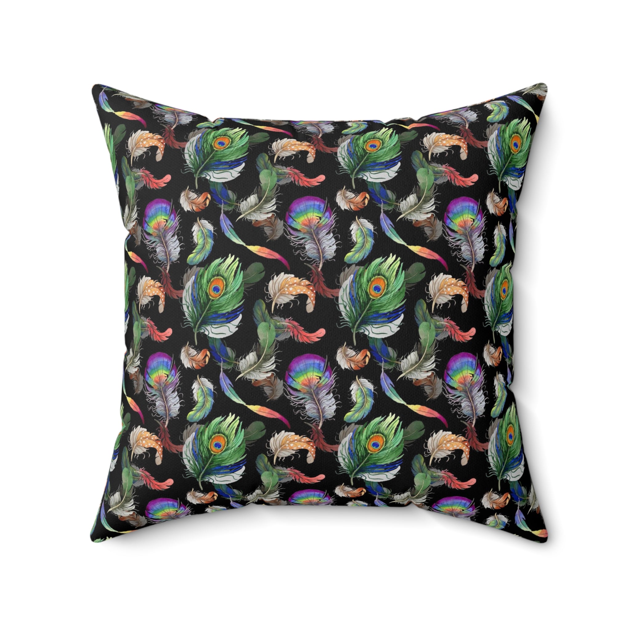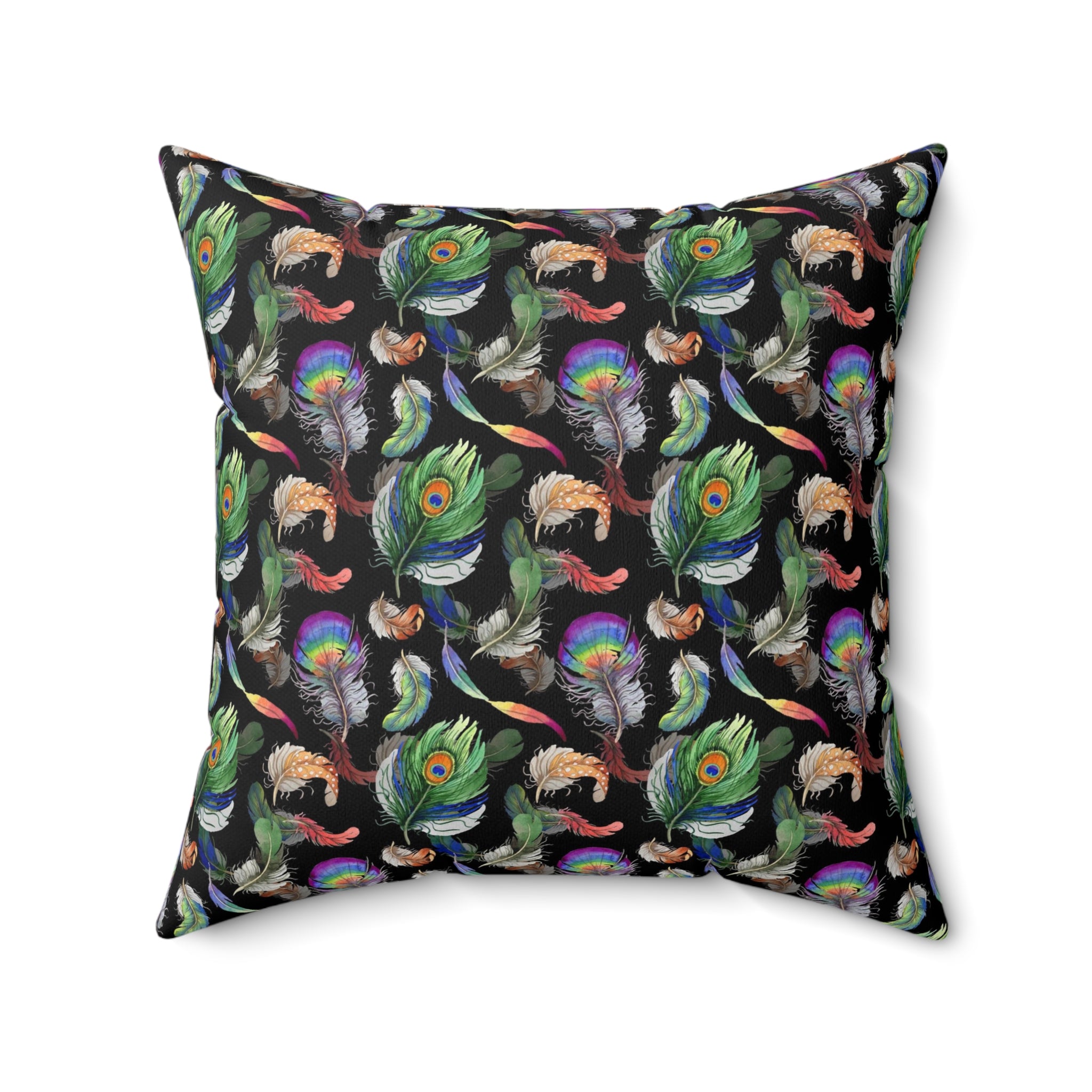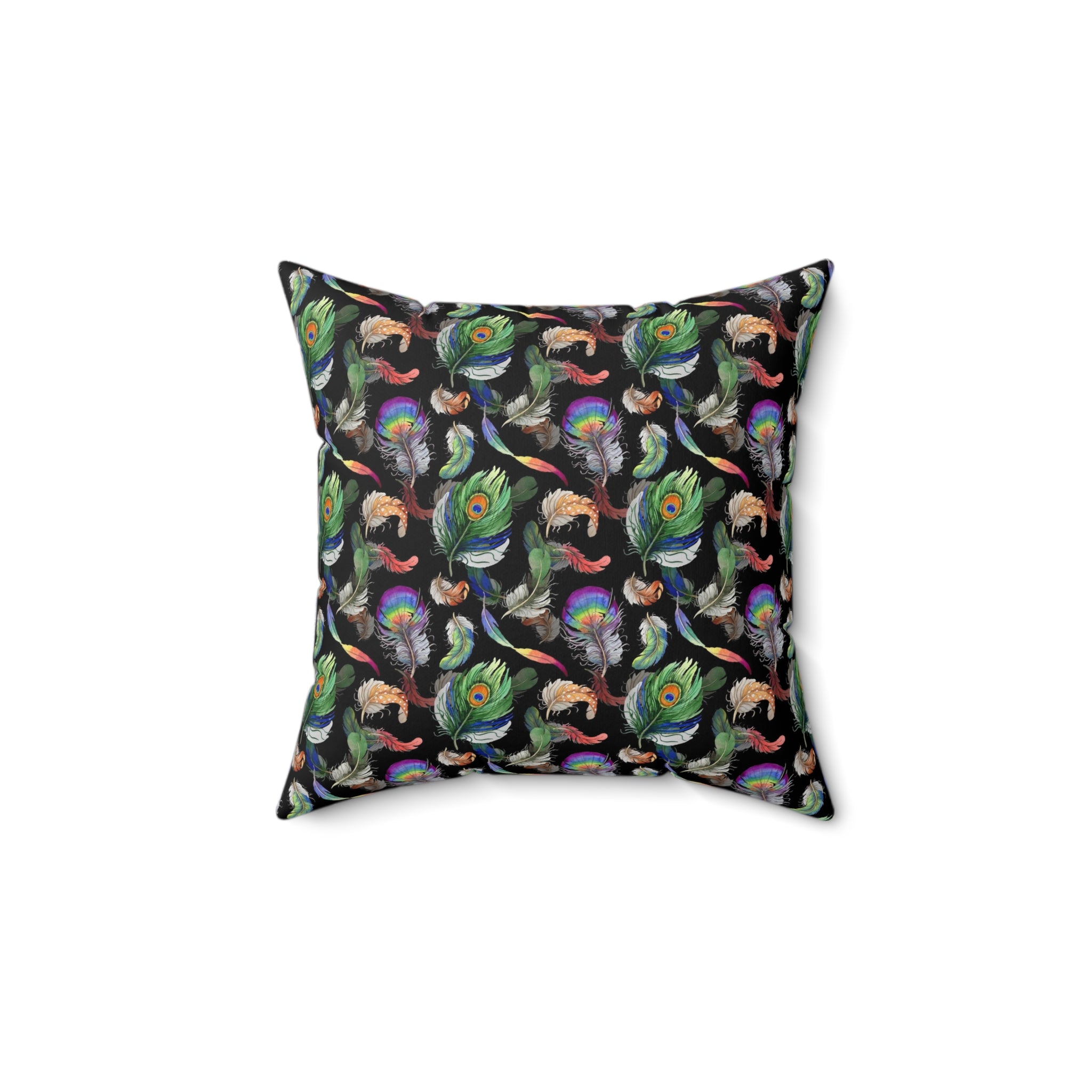 Introducing the Peacock Feather Pillow, the perfect home decor to add a touch of sophistication to any room. The pillow features a beautiful peacock feather print all over, designed to add a sense of luxury to any interior. With a 100% polyester cover and a 100% polyester pillow, this luxurious cushion is both comfortable and visually stunning. The double sided print ensures that the artwork looks beautiful from every angle and the concealed zipper allows for easy removal and cleaning. Pre-constructed for convenience, the item has a size variance of +/- 0.5" for a perfect fit. Ideal for any home, the Peacock Feather Pillow is sure to make a statement.