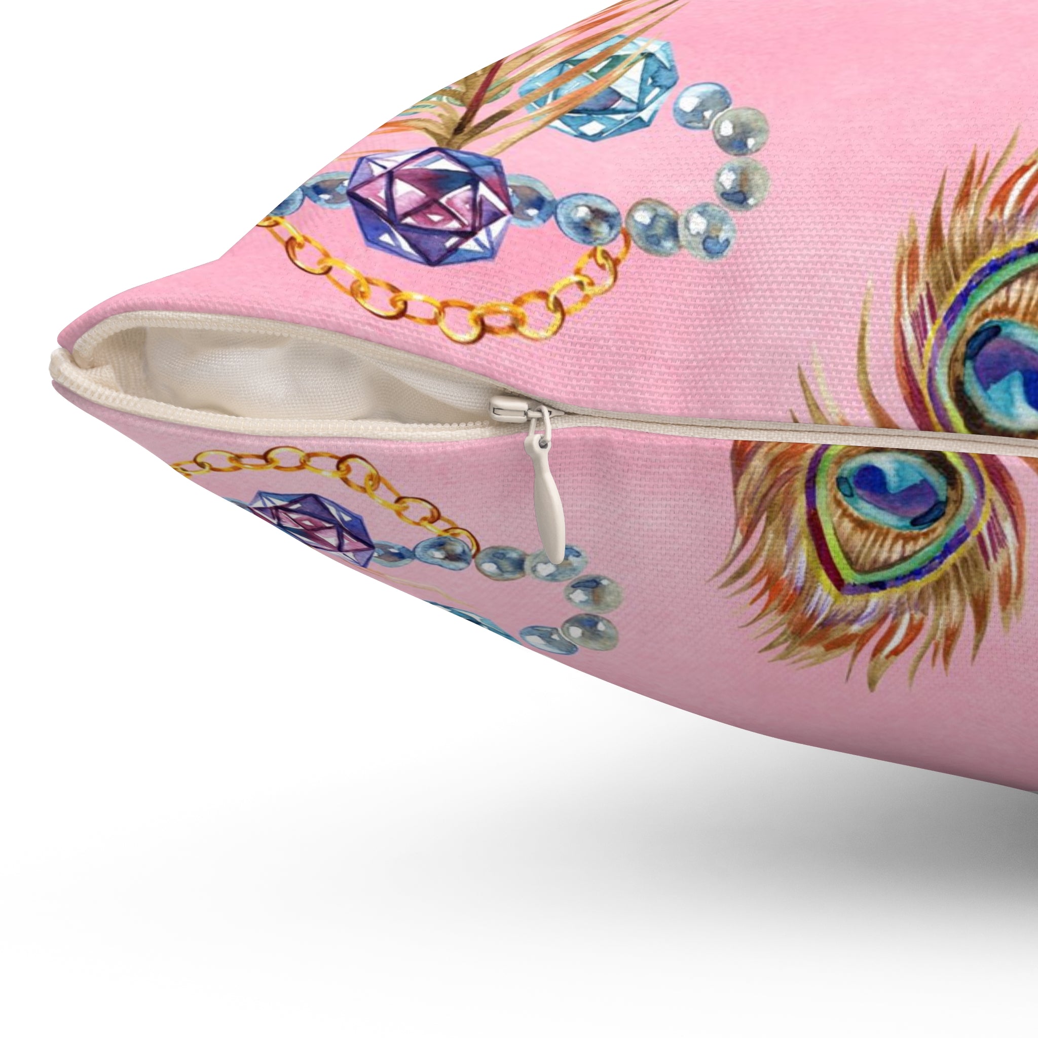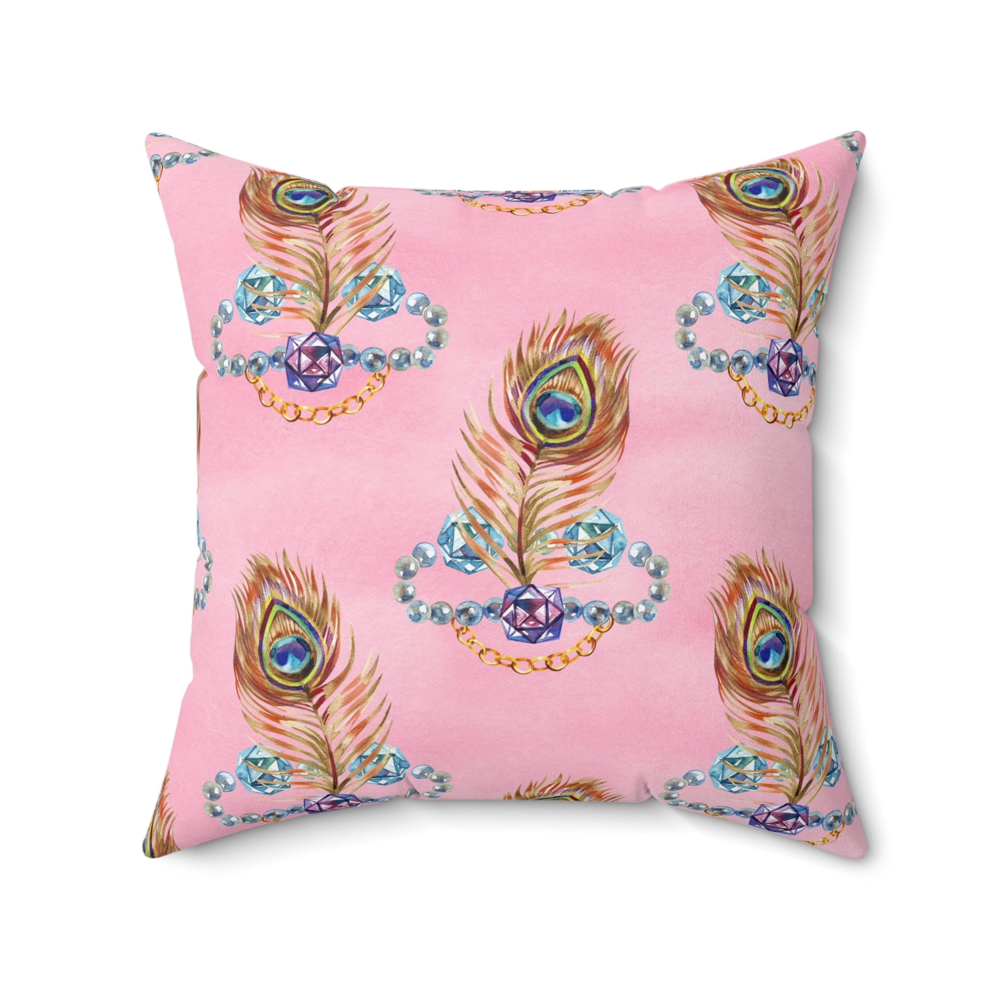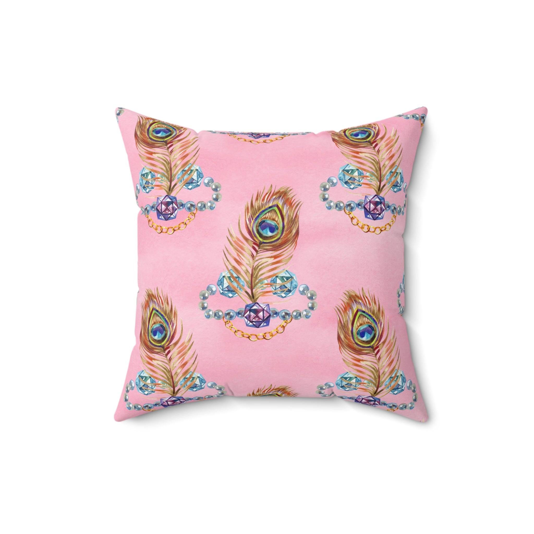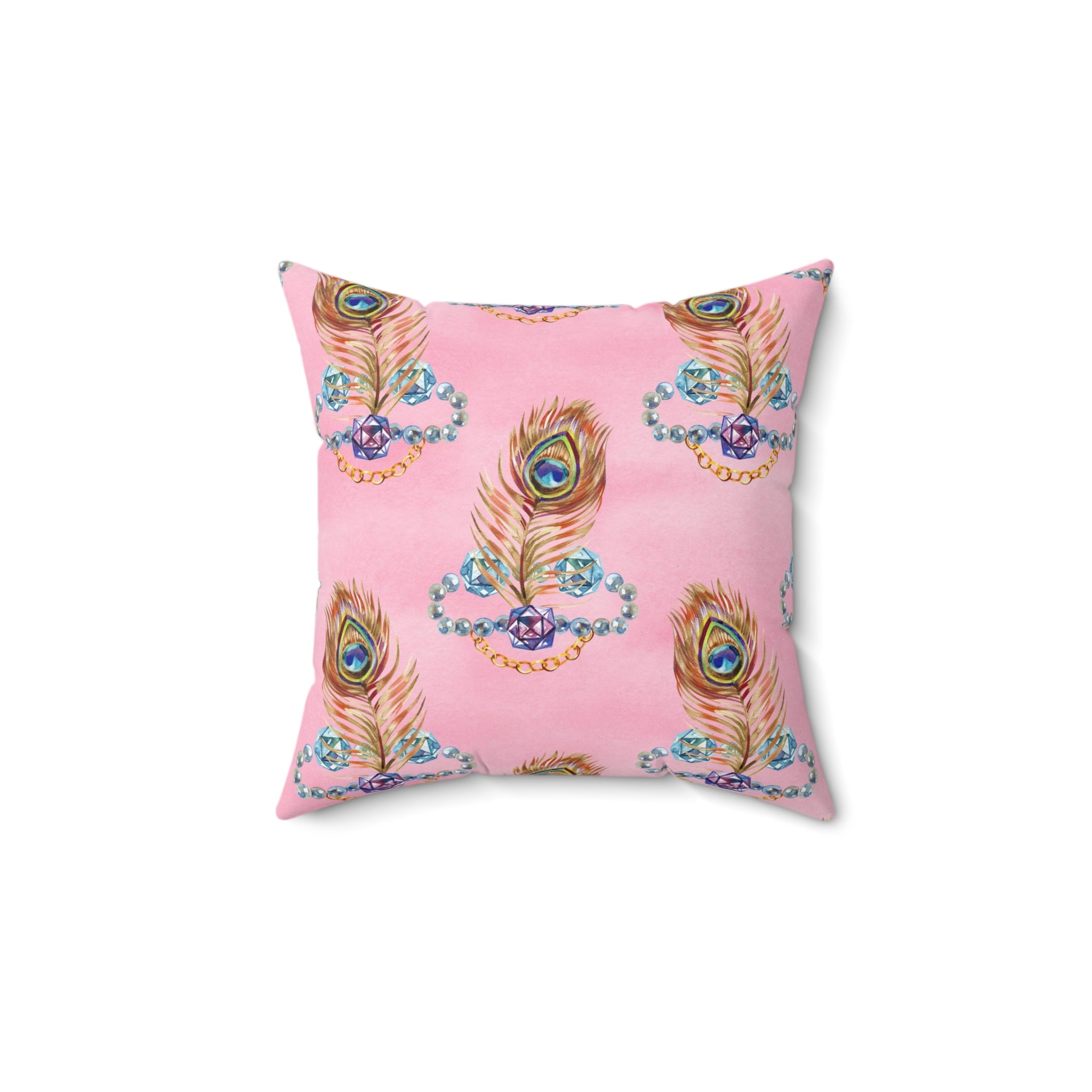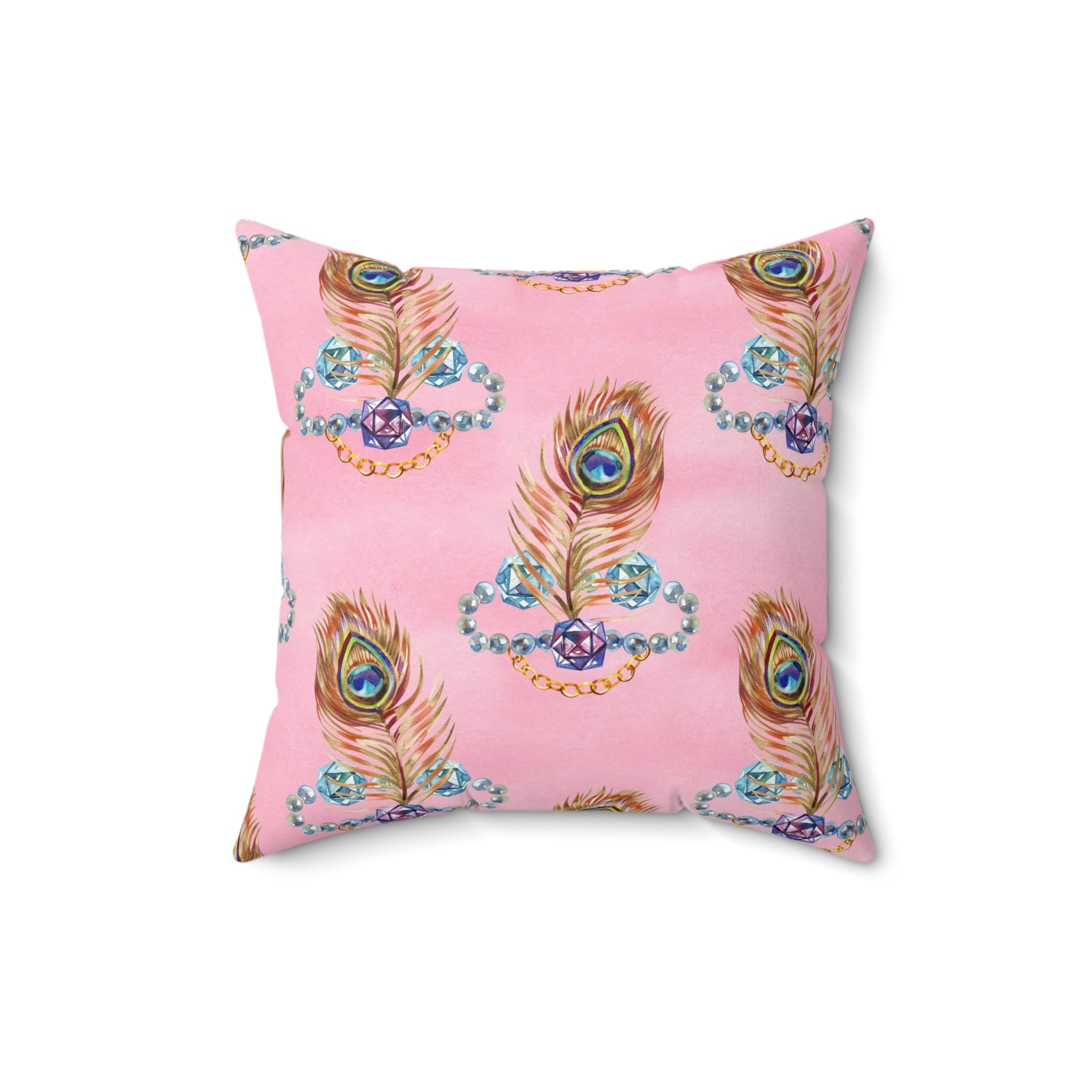 Introducing the Peacock Feather Pillow, the perfect home decor to add a touch of sophistication to any room. The pillow features a beautiful peacock feather print all over, designed to add a sense of luxury to any interior. With a 100% polyester cover and a 100% polyester pillow, this luxurious cushion is both comfortable and visually stunning. The double sided print ensures that the artwork looks beautiful from every angle and the concealed zipper allows for easy removal and cleaning. Pre-constructed for convenience, the item has a size variance of +/- 0.5" for a perfect fit. Ideal for any home, the Peacock Feather Pillow is sure to make a statement.