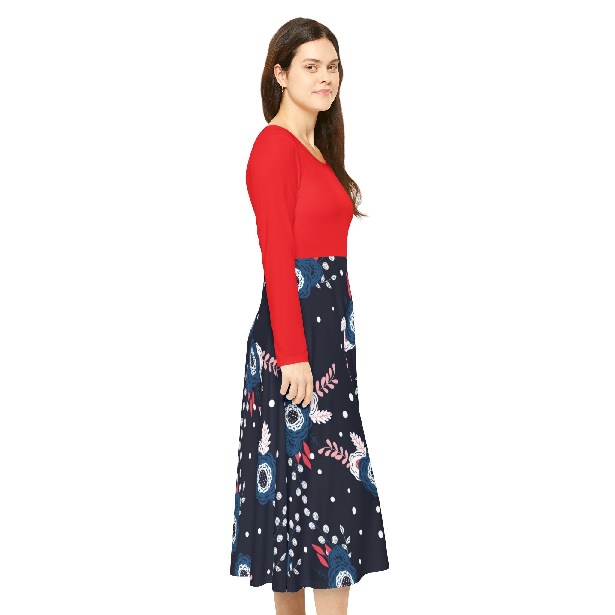 Make an instant classic with this stylish Women Dress! Crafted from a polyester milk silk blend, this custom dance dress is as comfy as it is chic. Its regular fit, scoop-shaped, high-cut neckline adds the perfect touch of class for any setting, from the dance floor onward. For a unique twist, this dress features a unique printing pattern on the bottom and plain-colored top that matches the bottom perfectly. With its breathable fabric and beautiful design, this dress is an absolute must-have!