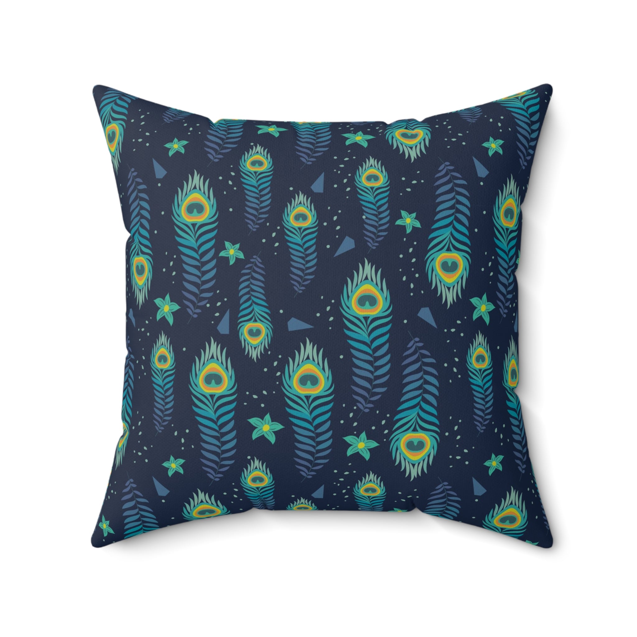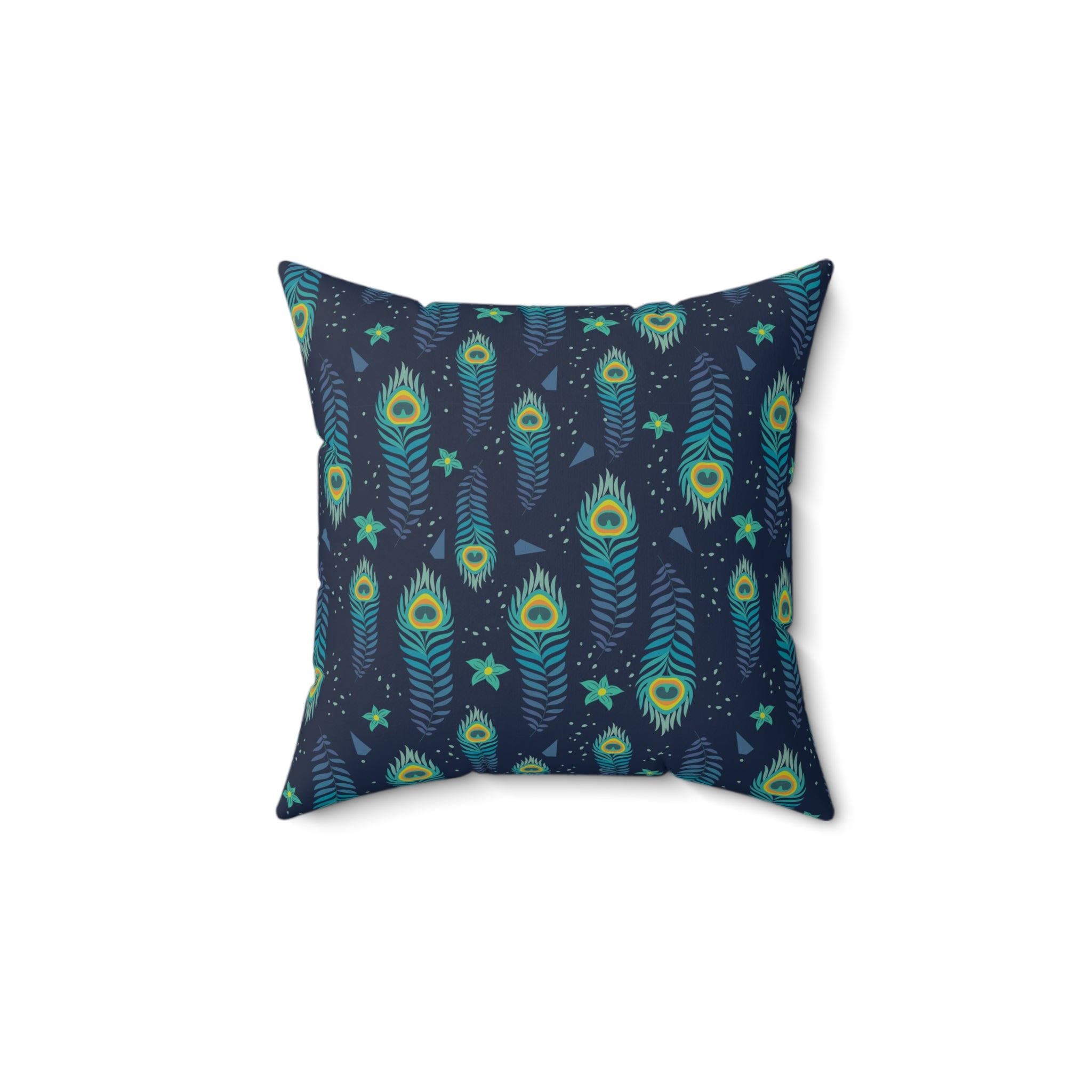 Introducing the Peacock Feather Pillow, the perfect home decor to add a touch of sophistication to any room. The pillow features a beautiful peacock feather print all over, designed to add a sense of luxury to any interior. With a 100% polyester cover and a 100% polyester pillow, this luxurious cushion is both comfortable and visually stunning. The double sided print ensures that the artwork looks beautiful from every angle and the concealed zipper allows for easy removal and cleaning. Pre-constructed for convenience, the item has a size variance of +/- 0.5" for a perfect fit. Ideal for any home, the Peacock Feather Pillow is sure to make a statement.