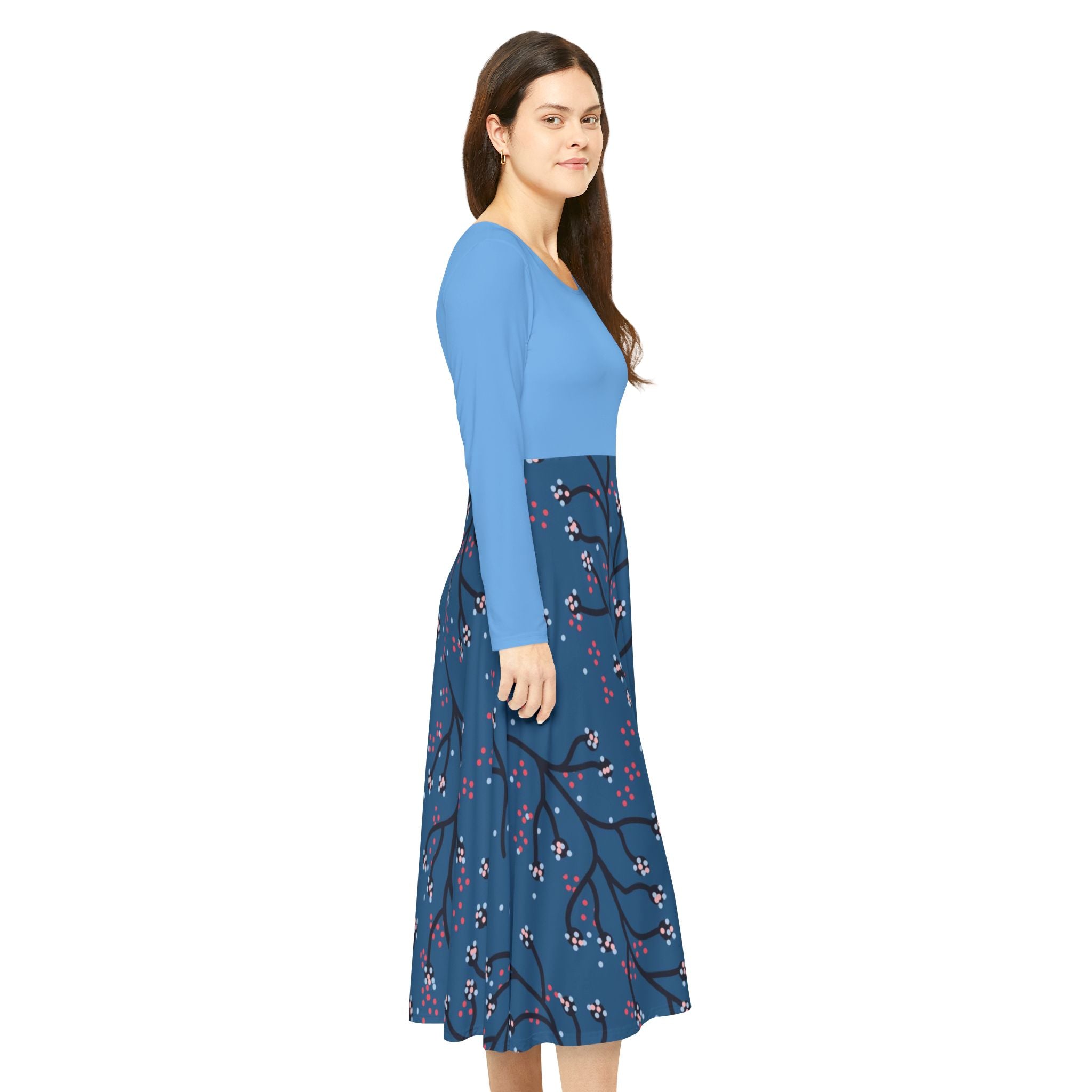 Make an instant classic with this stylish Women Dress! Crafted from a polyester milk silk blend, this custom dance dress is as comfy as it is chic. Its regular fit, scoop-shaped, high-cut neckline adds the perfect touch of class for any setting, from the dance floor onward. For a unique twist, this dress features a unique printing pattern on the bottom and plain-colored top that matches the bottom perfectly. With its breathable fabric and beautiful design, this dress is an absolute must-have!