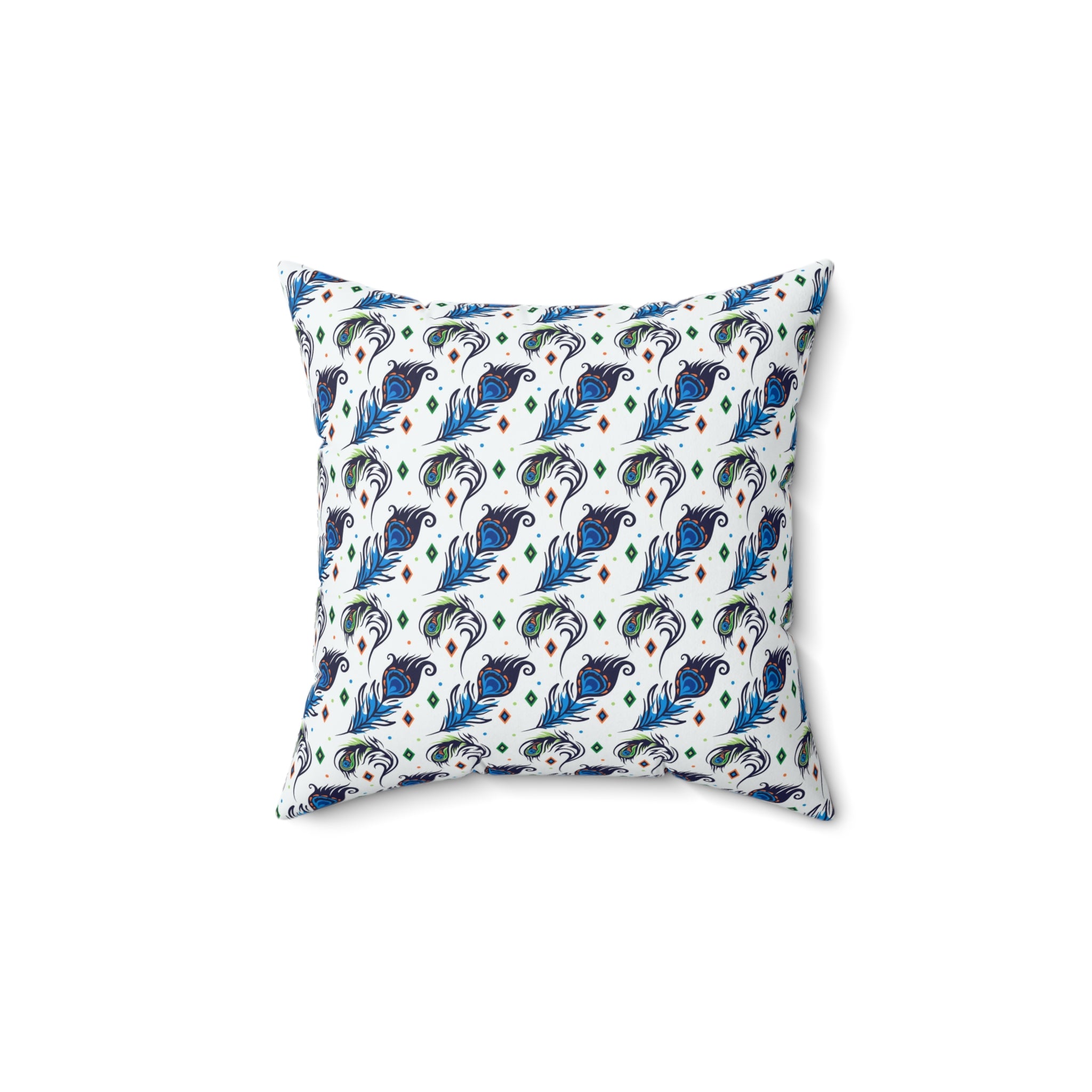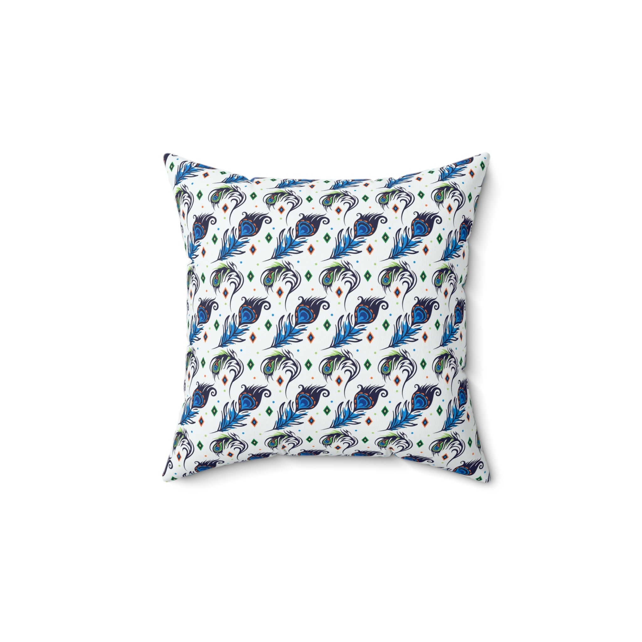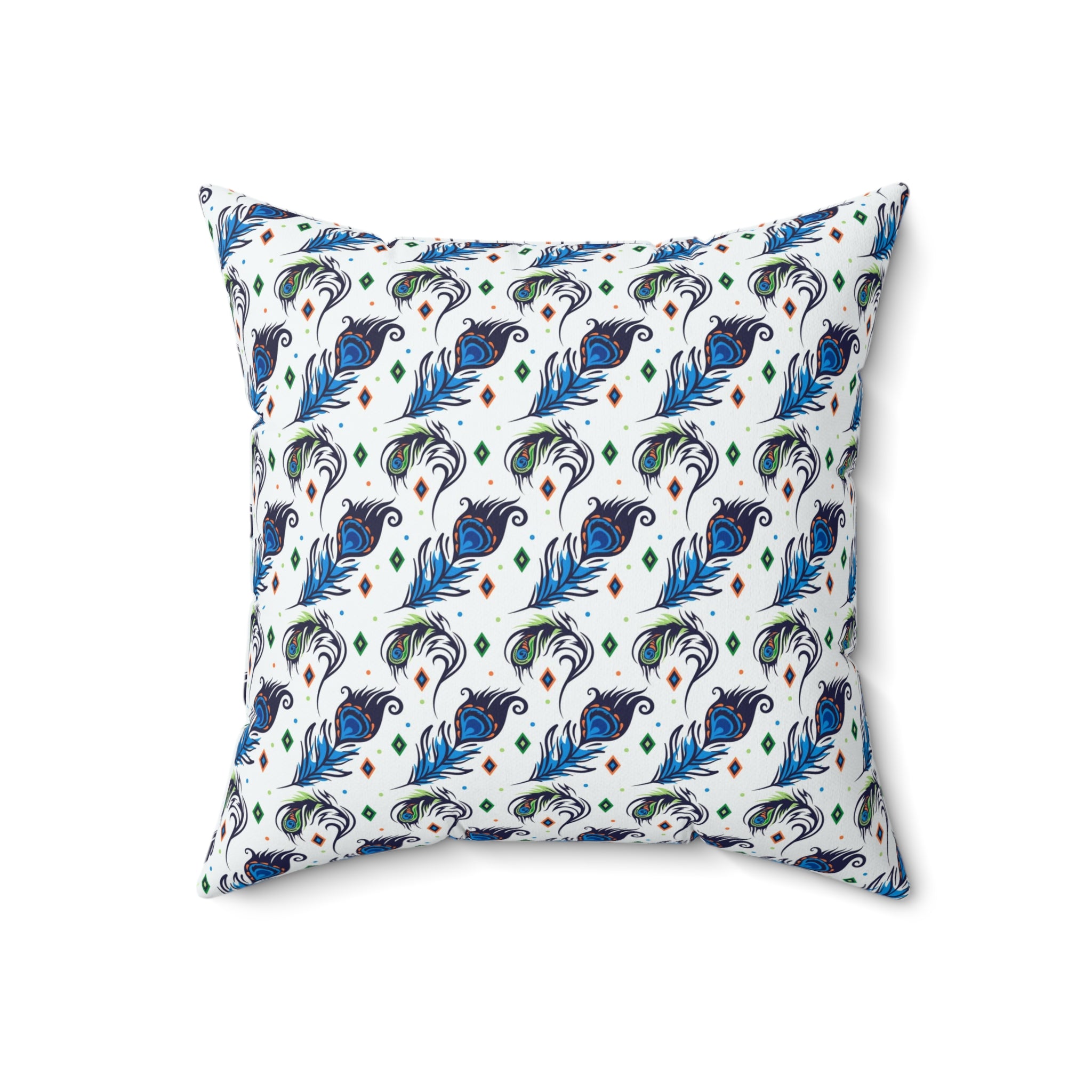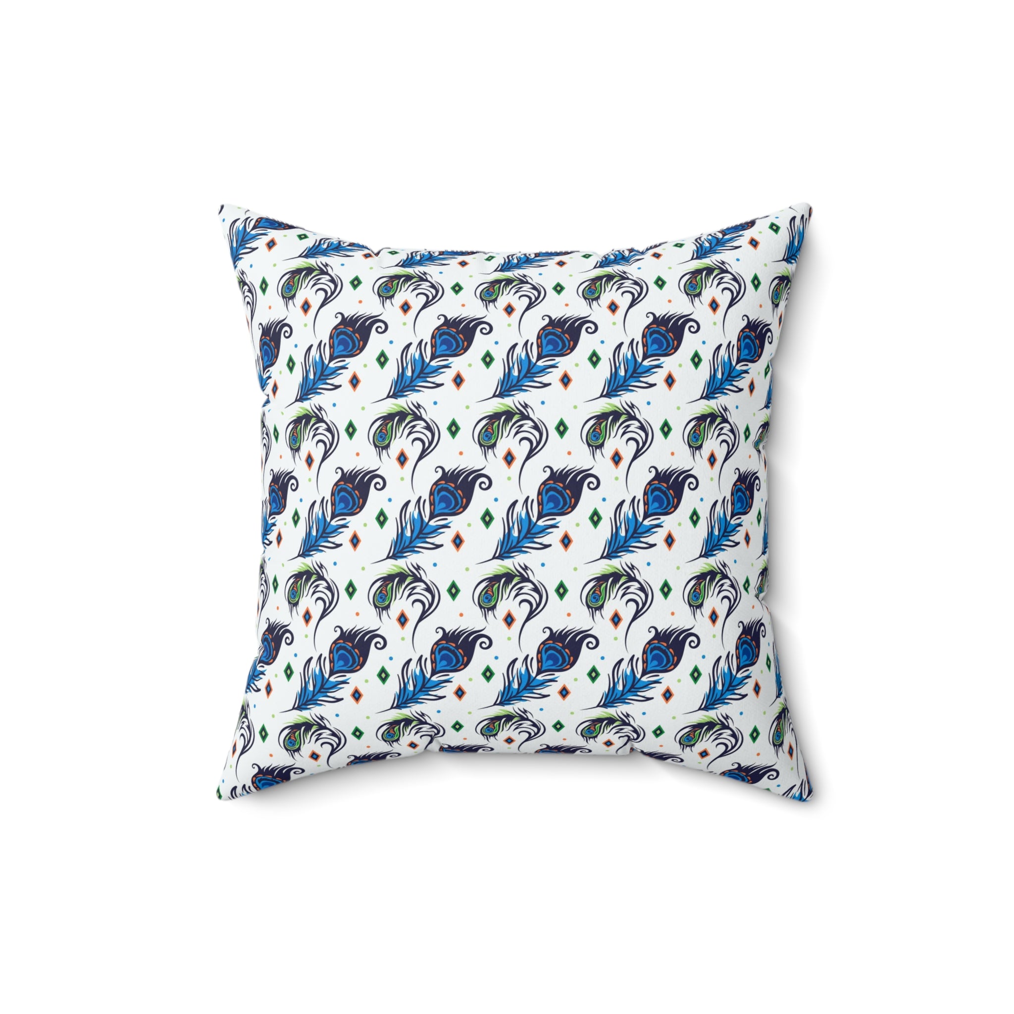 Introducing the Peacock Feather Pillow, the perfect home decor to add a touch of sophistication to any room. The pillow features a beautiful peacock feather print all over, designed to add a sense of luxury to any interior. With a 100% polyester cover and a 100% polyester pillow, this luxurious cushion is both comfortable and visually stunning. The double sided print ensures that the artwork looks beautiful from every angle and the concealed zipper allows for easy removal and cleaning. Pre-constructed for convenience, the item has a size variance of +/- 0.5" for a perfect fit. Ideal for any home, the Peacock Feather Pillow is sure to make a statement.