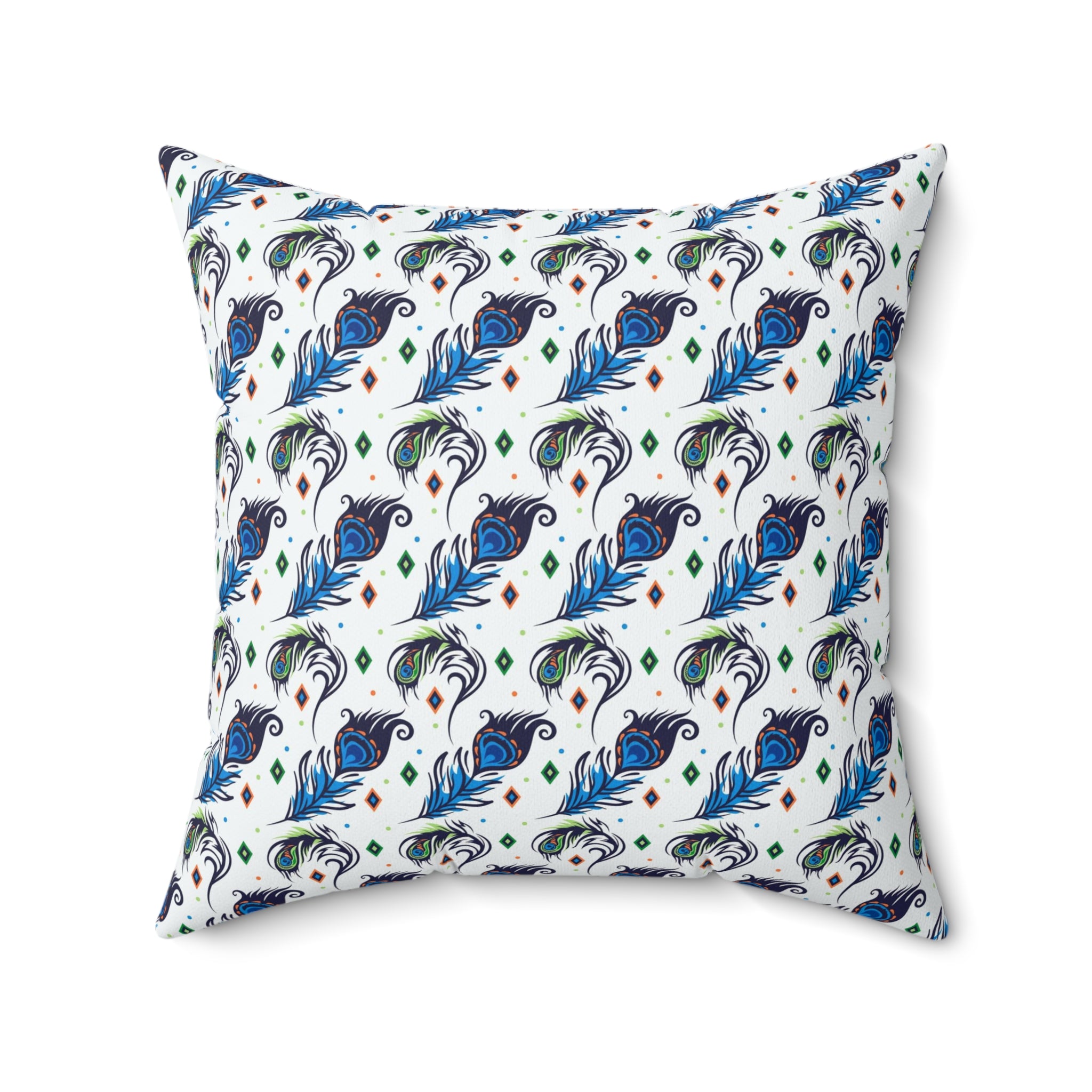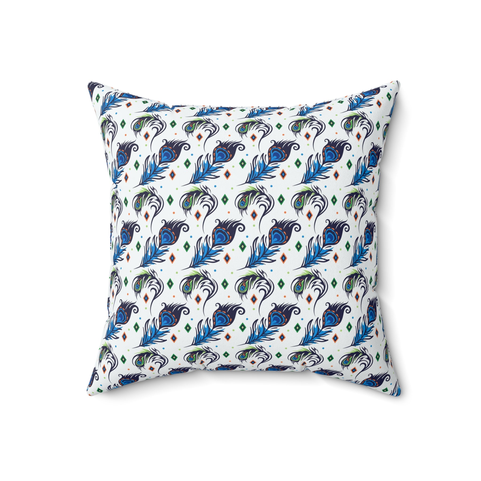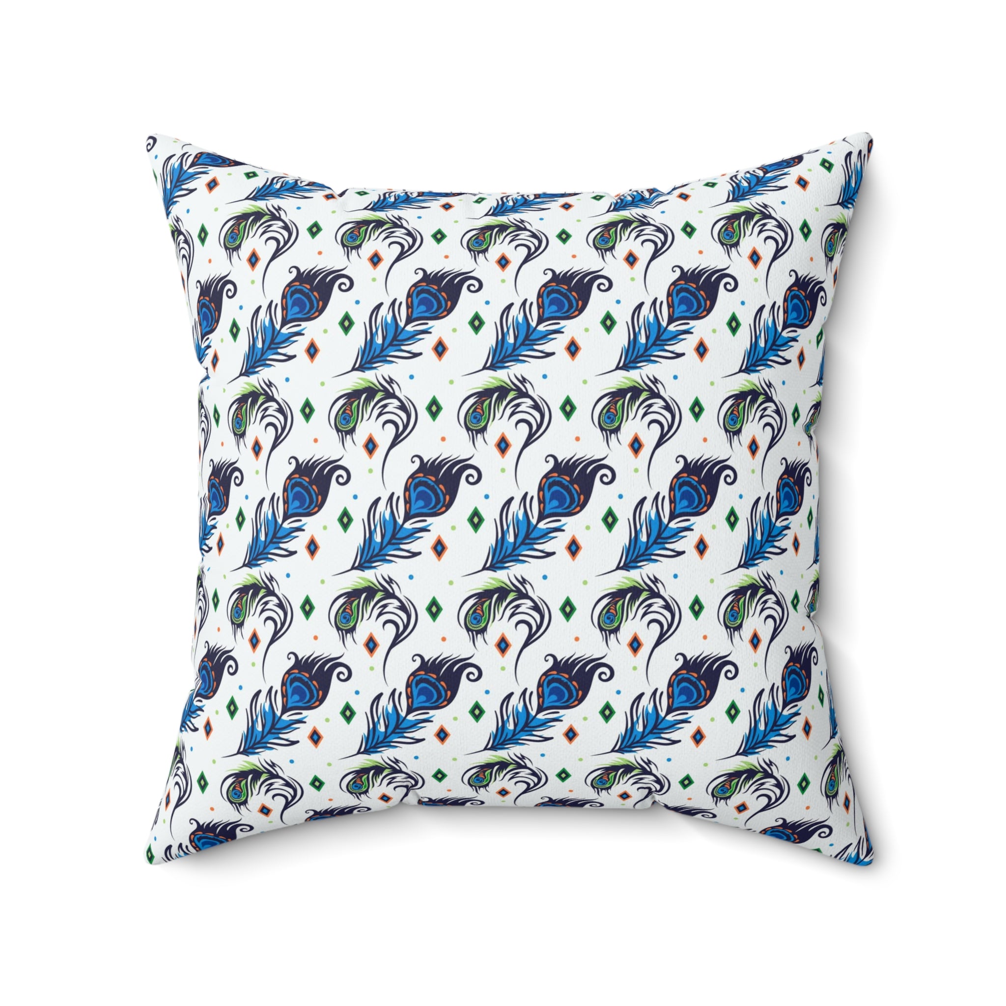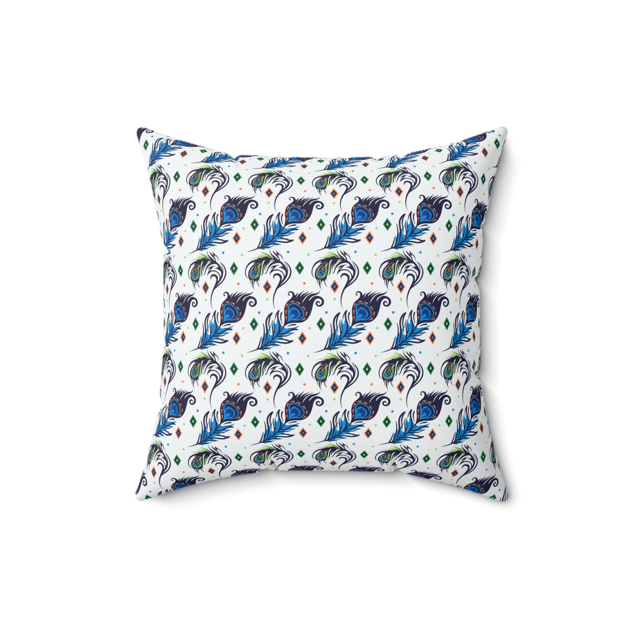 Introducing the Peacock Feather Pillow, the perfect home decor to add a touch of sophistication to any room. The pillow features a beautiful peacock feather print all over, designed to add a sense of luxury to any interior. With a 100% polyester cover and a 100% polyester pillow, this luxurious cushion is both comfortable and visually stunning. The double sided print ensures that the artwork looks beautiful from every angle and the concealed zipper allows for easy removal and cleaning. Pre-constructed for convenience, the item has a size variance of +/- 0.5" for a perfect fit. Ideal for any home, the Peacock Feather Pillow is sure to make a statement.
