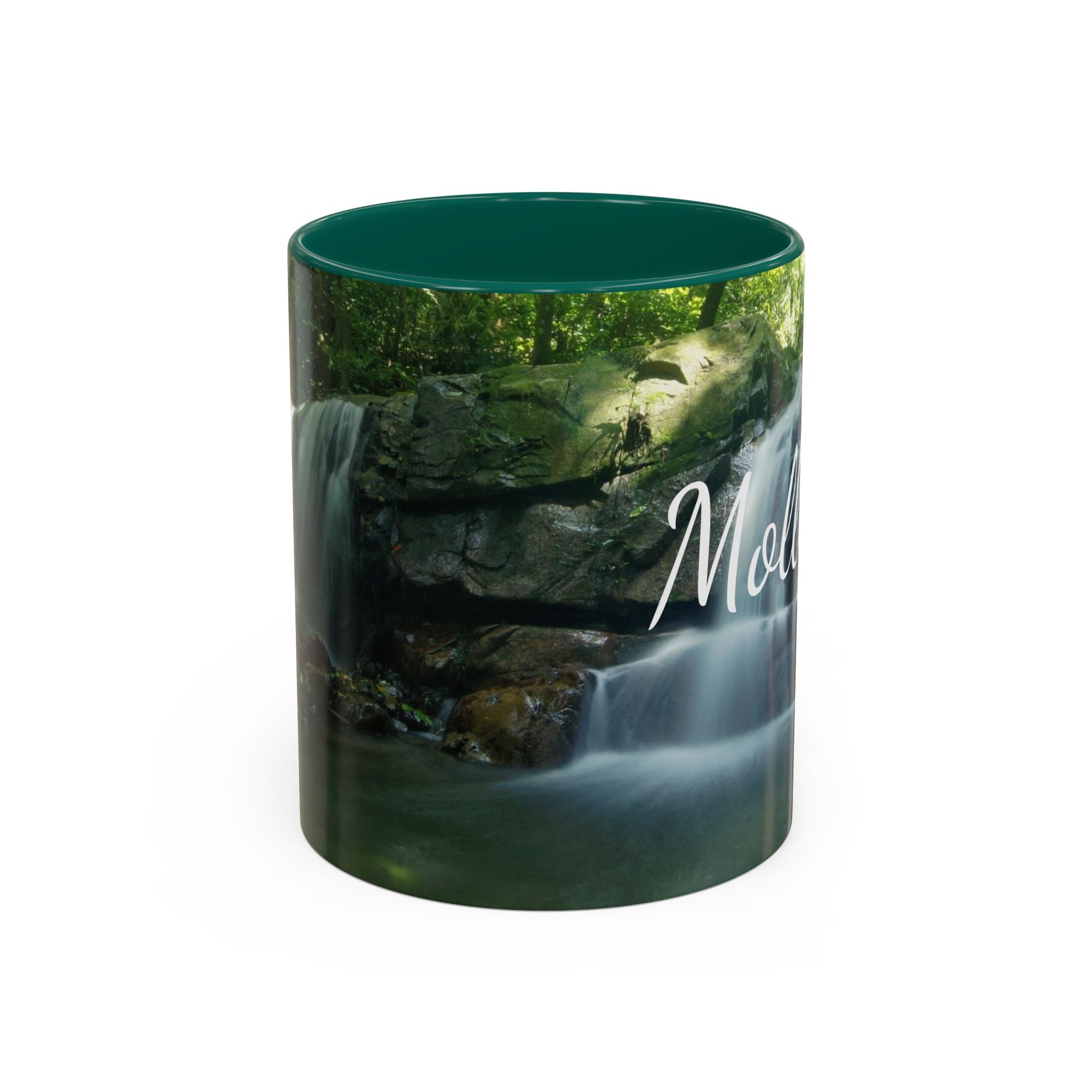 Stay inspired as you sip from this personalized Girls Name Mug! Featuring a beautiful rain forest and waterfall picture, this glorious mug holds 11oz of your favorite refreshment. The glossy finish of the mug enhances the high-fidelity artwork print that displays your name. With an easy-grip C-shaped handle and available in a dark green color, this mug is sure to become a favorite of yours. And if your name is not on one of these mugs, contact us and we will put your name on a mug just for you! A must-have addition to any kitchen.