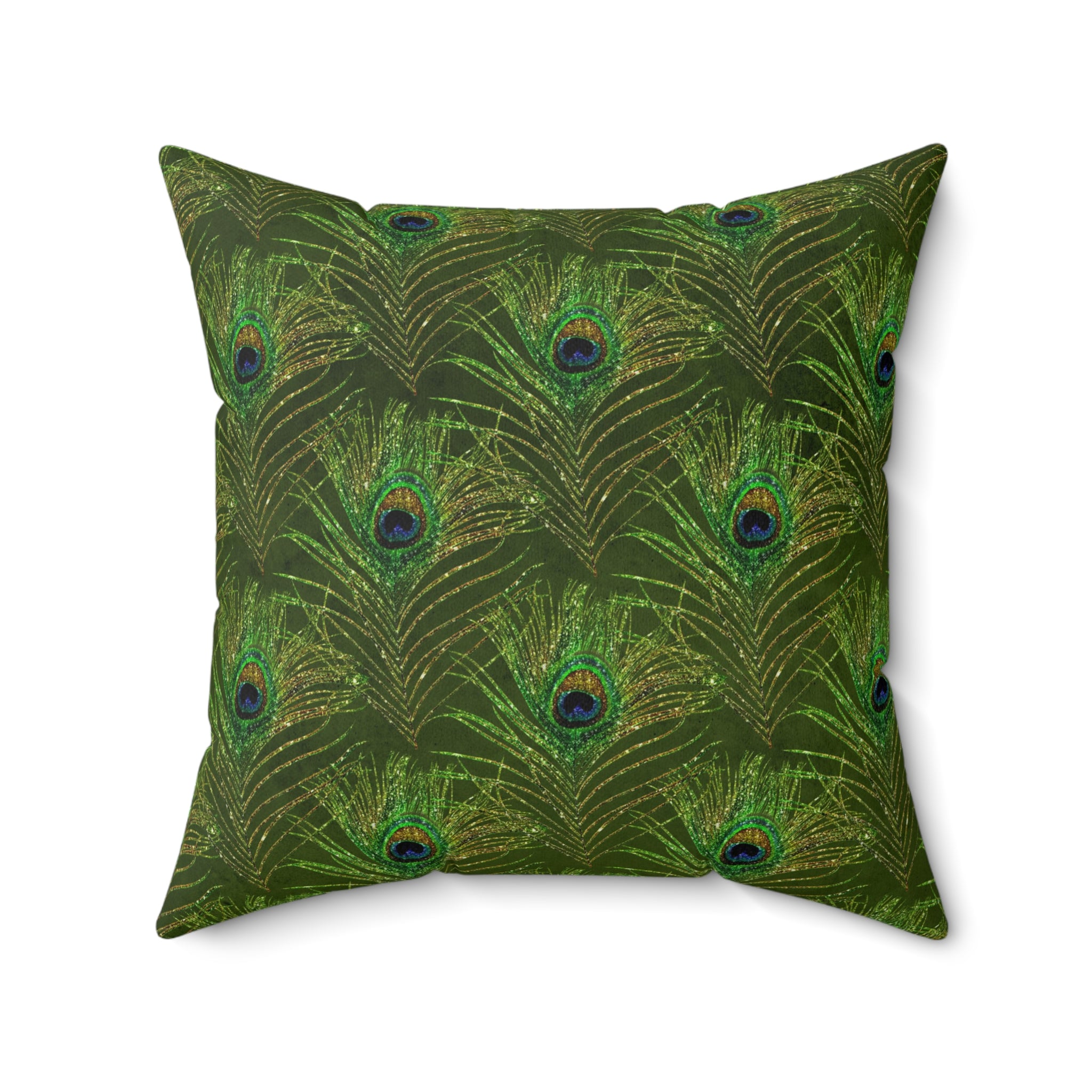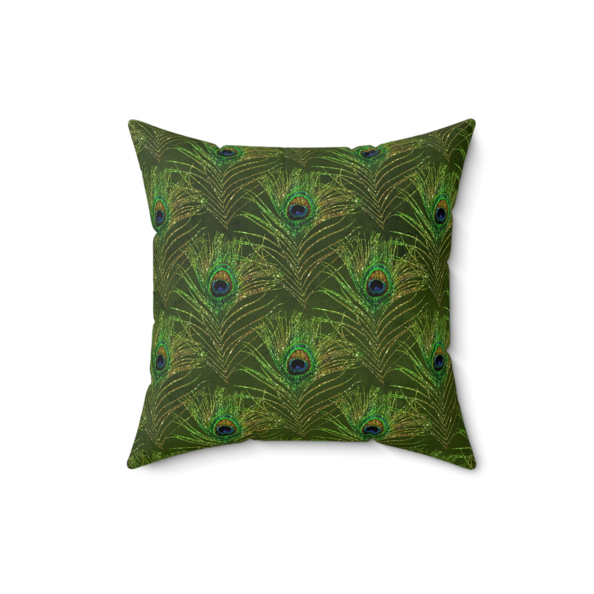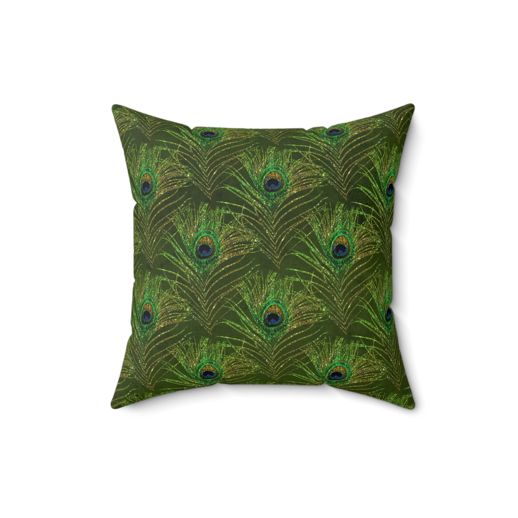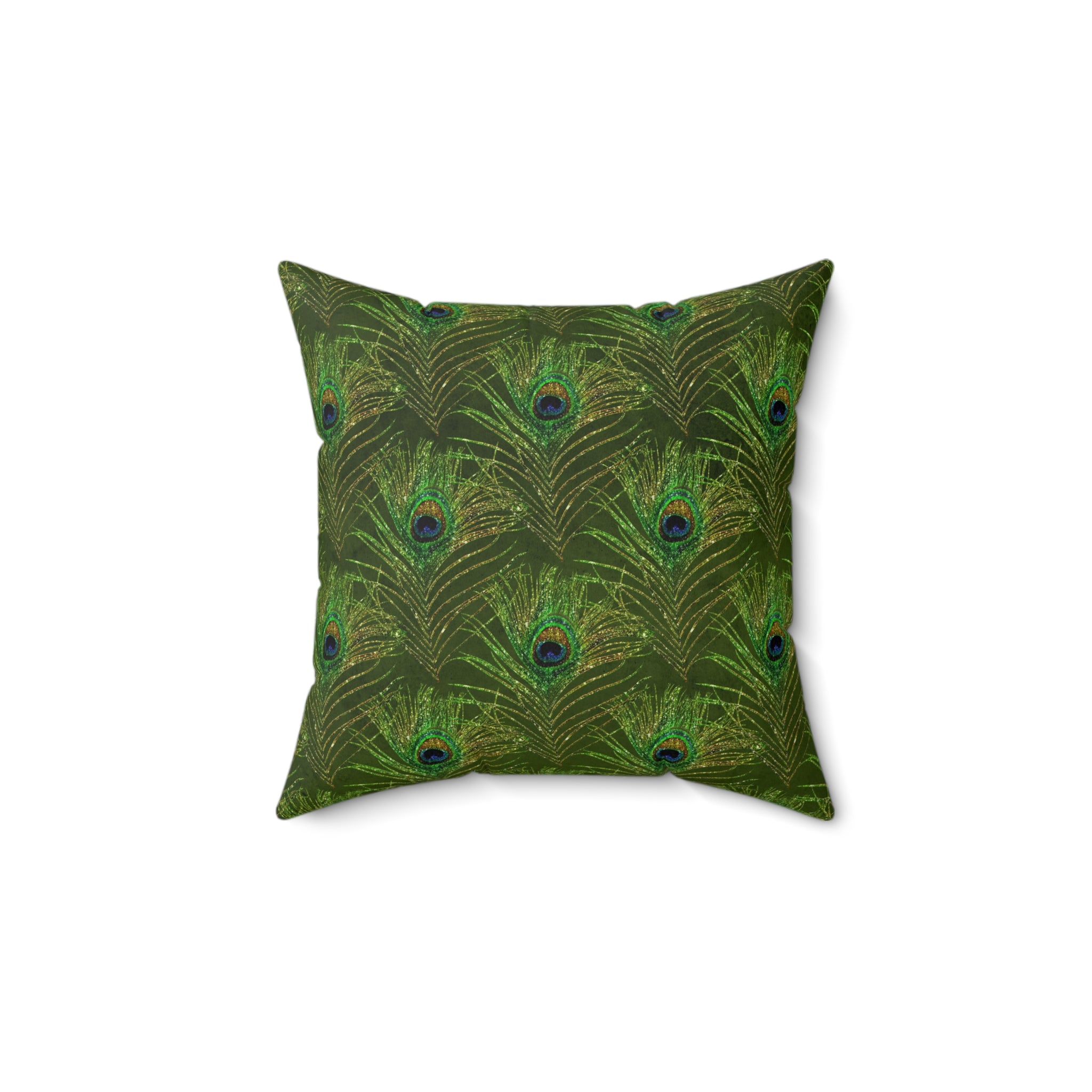 Introducing the Peacock Feather Pillow, the perfect home decor to add a touch of sophistication to any room. The pillow features a beautiful peacock feather print all over, designed to add a sense of luxury to any interior. With a 100% polyester cover and a 100% polyester pillow, this luxurious cushion is both comfortable and visually stunning. The double sided print ensures that the artwork looks beautiful from every angle and the concealed zipper allows for easy removal and cleaning. Pre-constructed for convenience, the item has a size variance of +/- 0.5" for a perfect fit. Ideal for any home, the Peacock Feather Pillow is sure to make a statement.