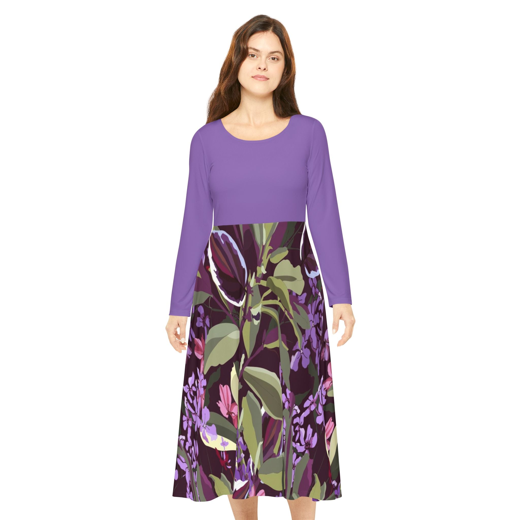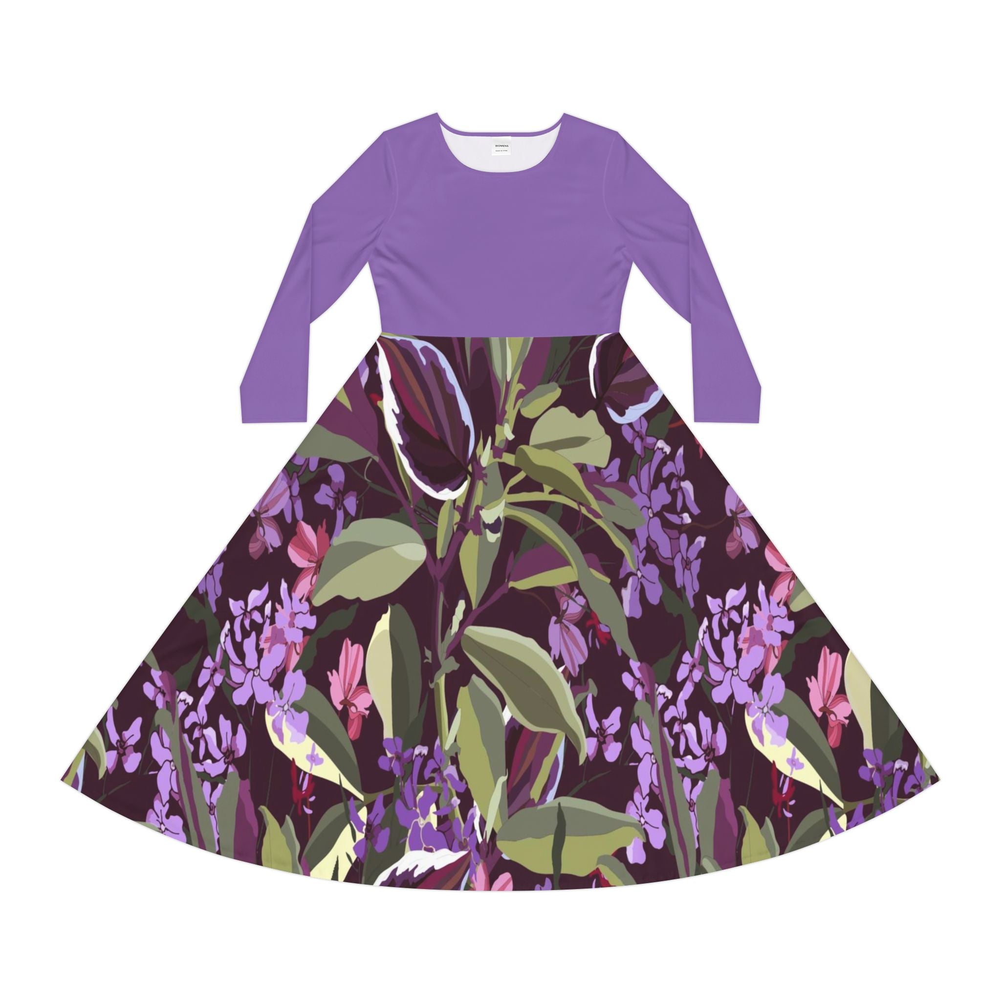 Make an instant classic with this stylish Women Dress! Crafted from a polyester milk silk blend, this custom dance dress is as comfy as it is chic. Its regular fit, scoop-shaped, high-cut neckline adds the perfect touch of class for any setting, from the dance floor onward. For a unique twist, this dress features a unique printing pattern on the bottom and plain-colored top that matches the bottom perfectly. With its breathable fabric and beautiful design, this dress is an absolute must-have!