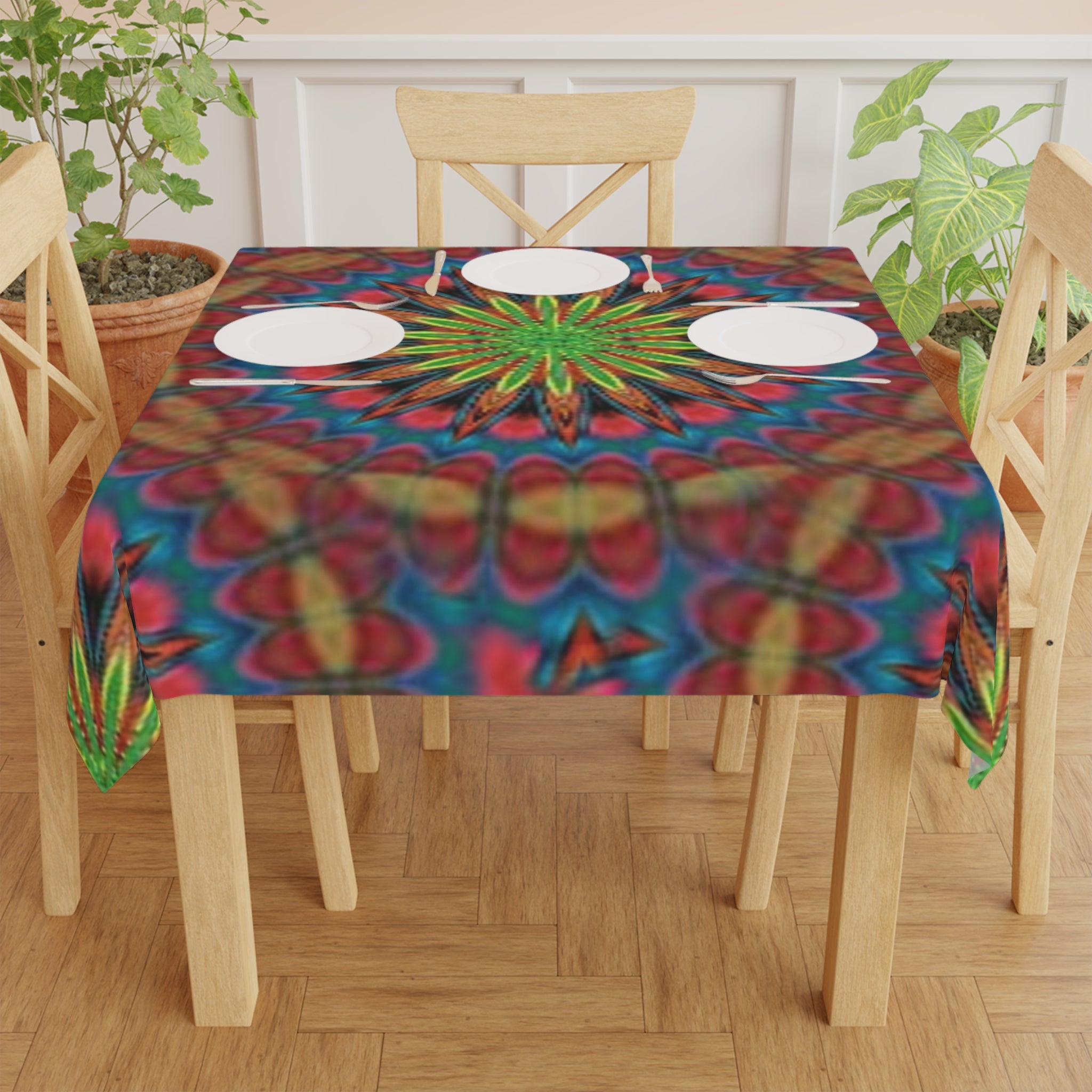 Make your table setting unique with this Tablecloth! Showcasing a full-print design with bright and exciting colors, this fun, eye-catching tablecloth will transform any gathering into a lively and stylish affair. The fabric is crafted from 100% polyester and soft to the touch, making it not only attractive but also comfortable and easy to maintain. With a size of 55.1" by 55.1", this personalized tablecloth will provide a beautiful, high-quality finish to any home décor.