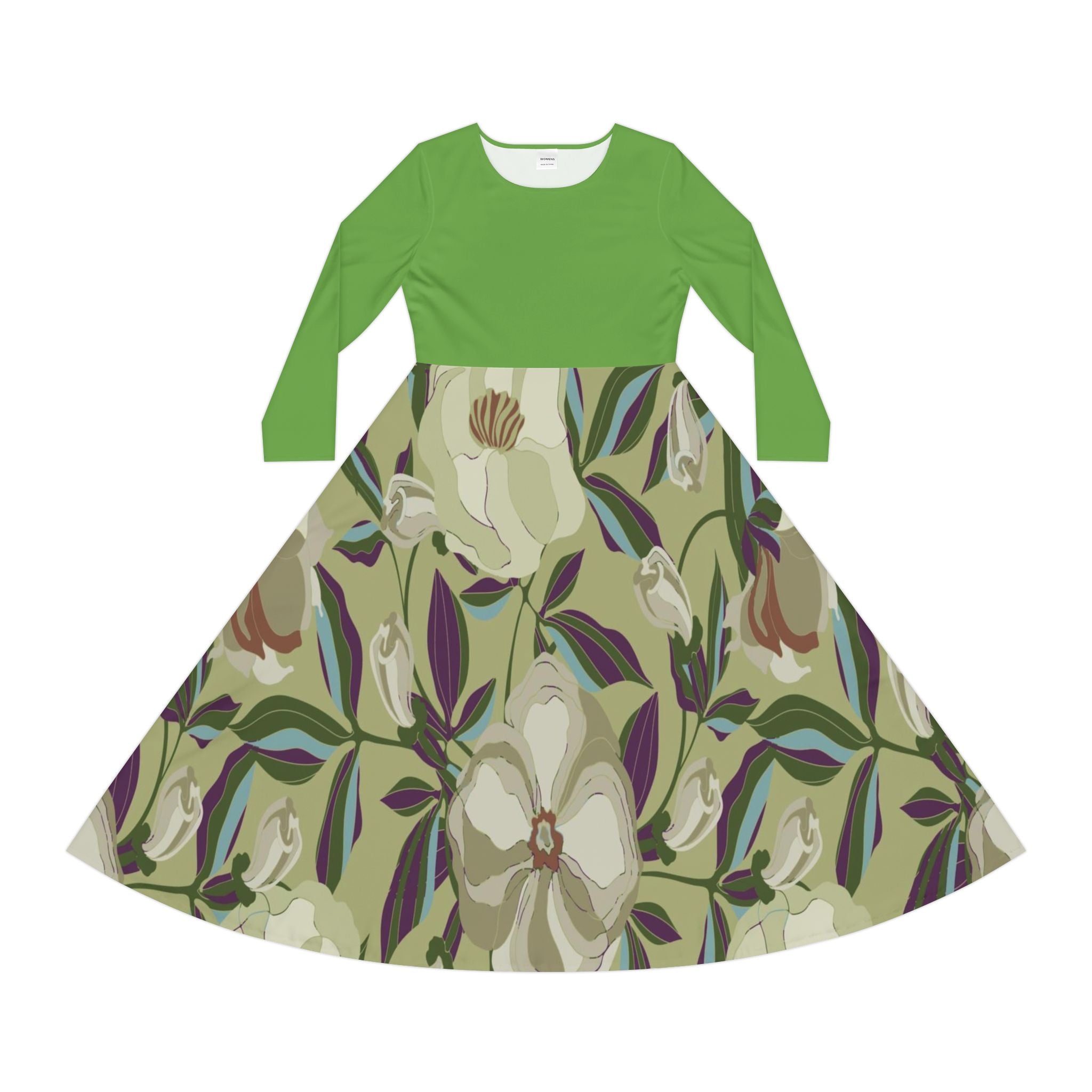 Make an instant classic with this stylish Women Dress! Crafted from a polyester milk silk blend, this custom dance dress is as comfy as it is chic. Its regular fit, scoop-shaped, high-cut neckline adds the perfect touch of class for any setting, from the dance floor onward. For a unique twist, this dress features a unique printing pattern on the bottom and plain-colored top that matches the bottom perfectly. With its breathable fabric and beautiful design, this dress is an absolute must-have!
