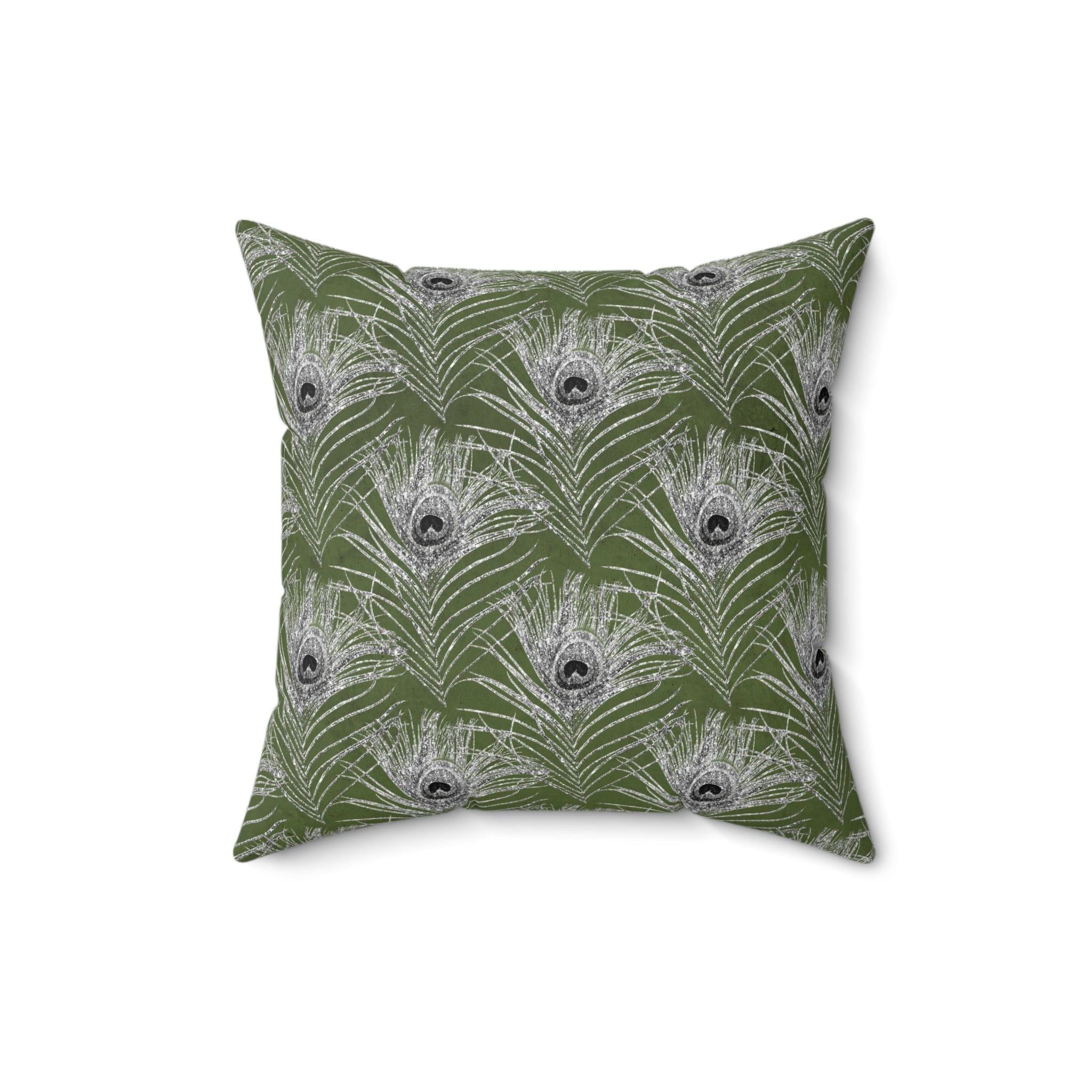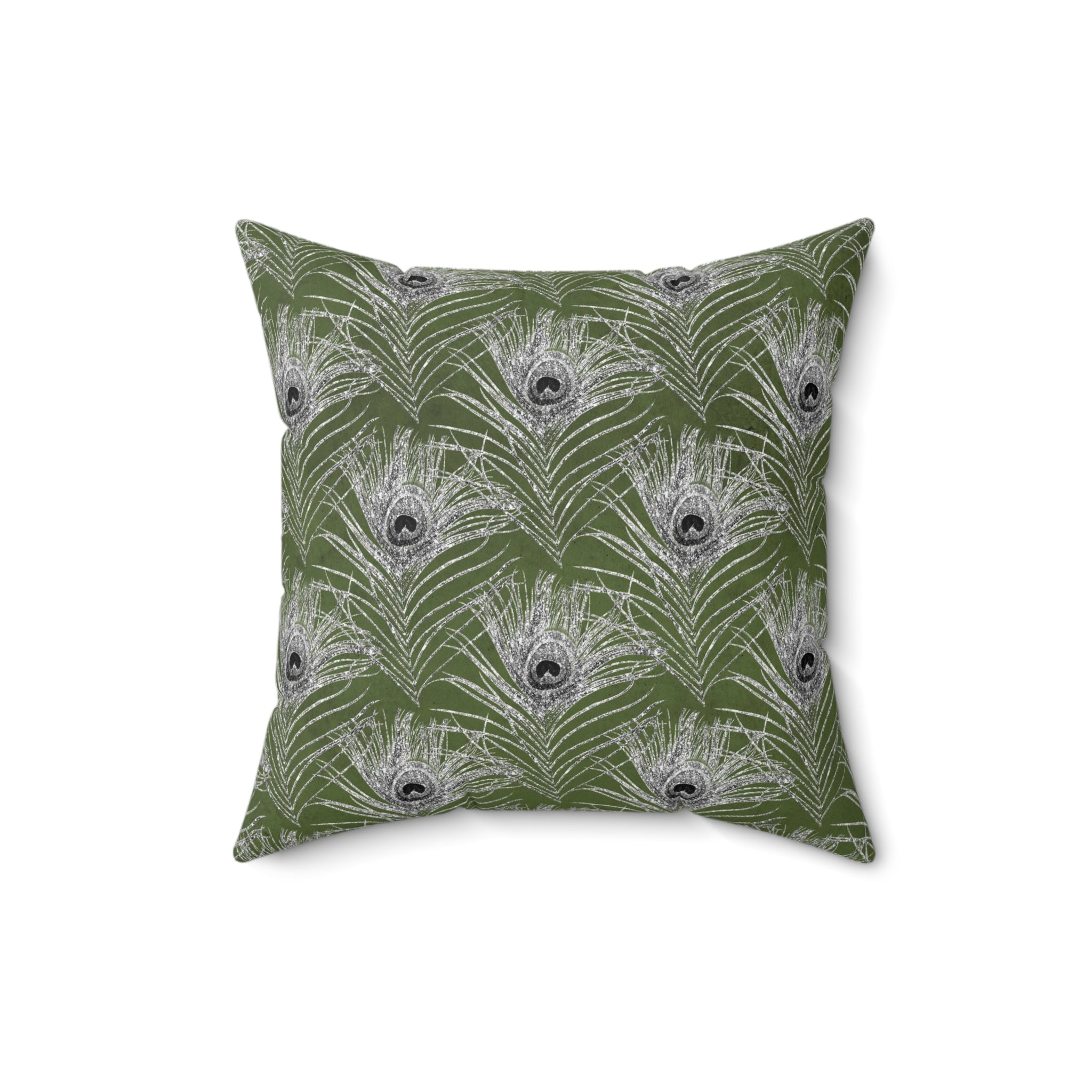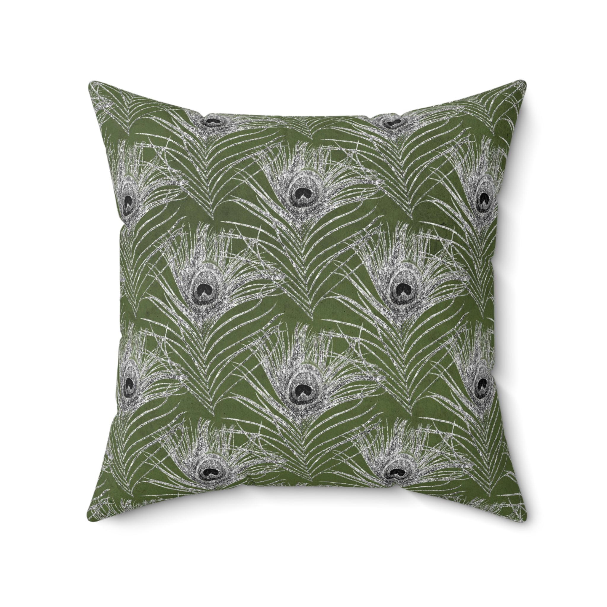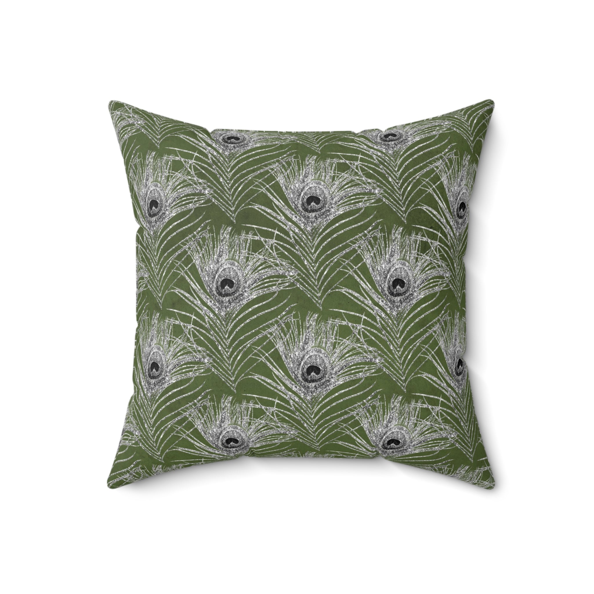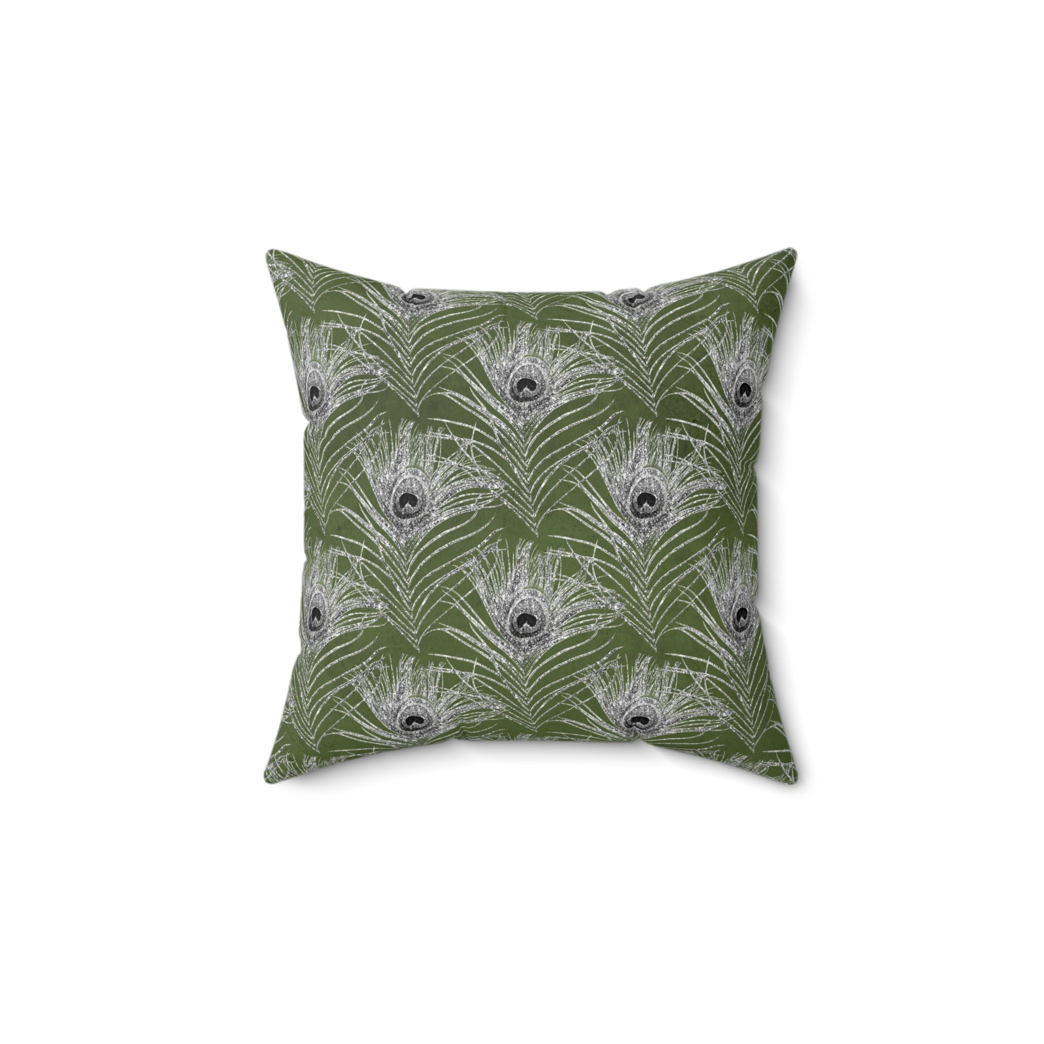 Introducing the Peacock Feather Pillow, the perfect home decor to add a touch of sophistication to any room. The pillow features a beautiful peacock feather print all over, designed to add a sense of luxury to any interior. With a 100% polyester cover and a 100% polyester pillow, this luxurious cushion is both comfortable and visually stunning. The double sided print ensures that the artwork looks beautiful from every angle and the concealed zipper allows for easy removal and cleaning. Pre-constructed for convenience, the item has a size variance of +/- 0.5" for a perfect fit. Ideal for any home, the Peacock Feather Pillow is sure to make a statement.