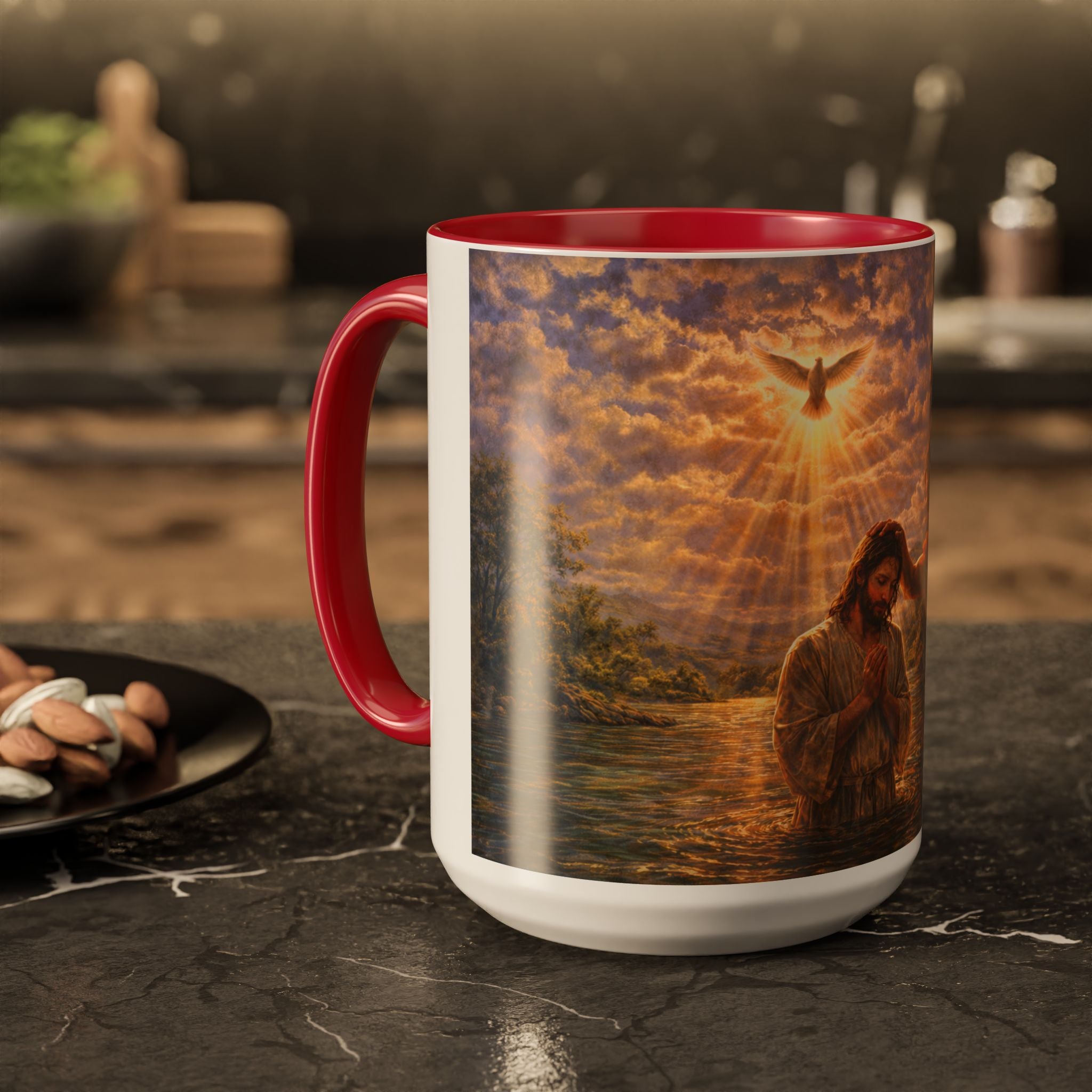 Perfect for morning coffee, evening tea, or quiet devotional time, this mug serves as a daily reminder of humility, calling, and the moment when the Father declared, “This is My beloved Son.”