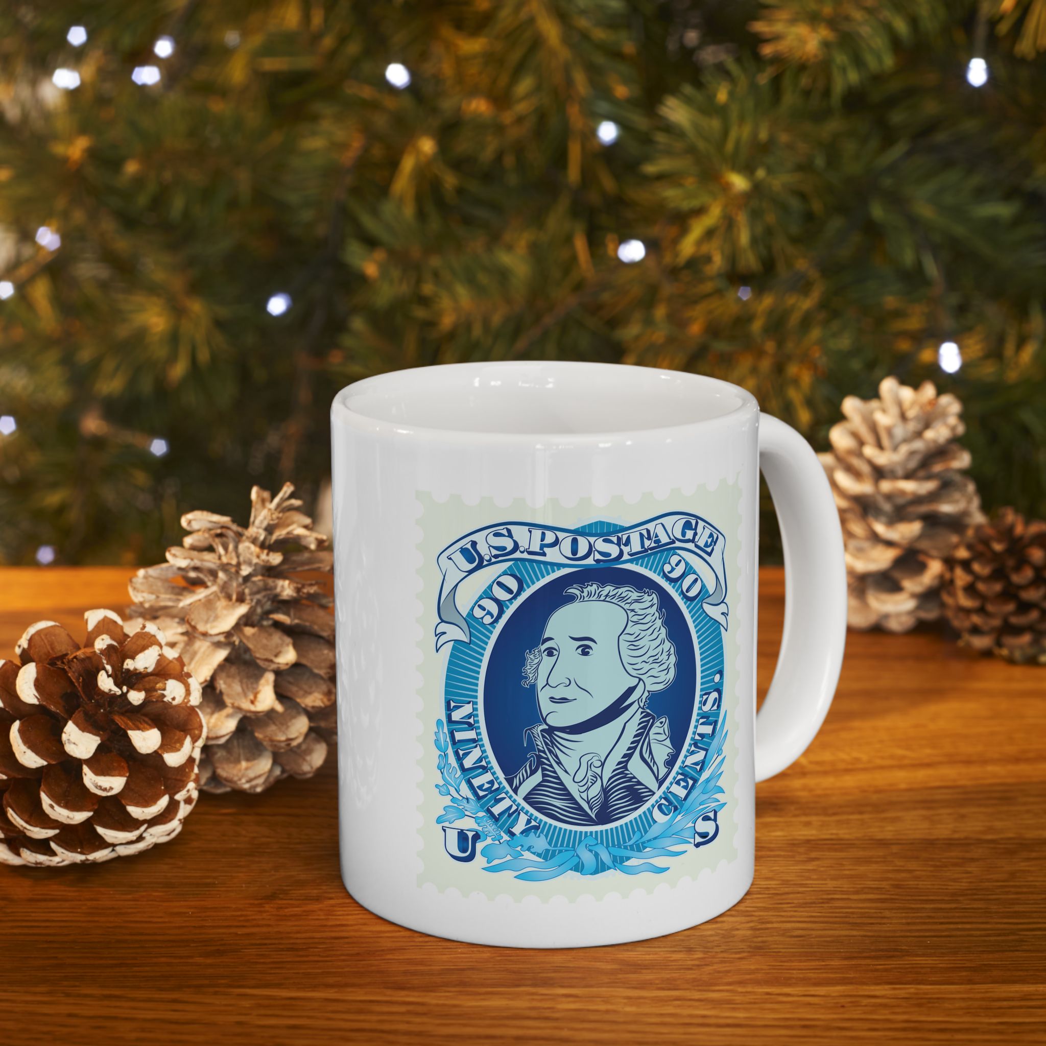 We're reminded of George Washington’s everlasting influence when we grip one-dollar bills or feed quarters into vending machines. Now you can get that same feeling when you consume all those dark roasts, lattes, mochas, and decafs. If you’re looking for a high-quality and sturdy ceramic mug that features a unique design, practical features, and significant historical meaning, then look no further than this George Washington stamp mug!