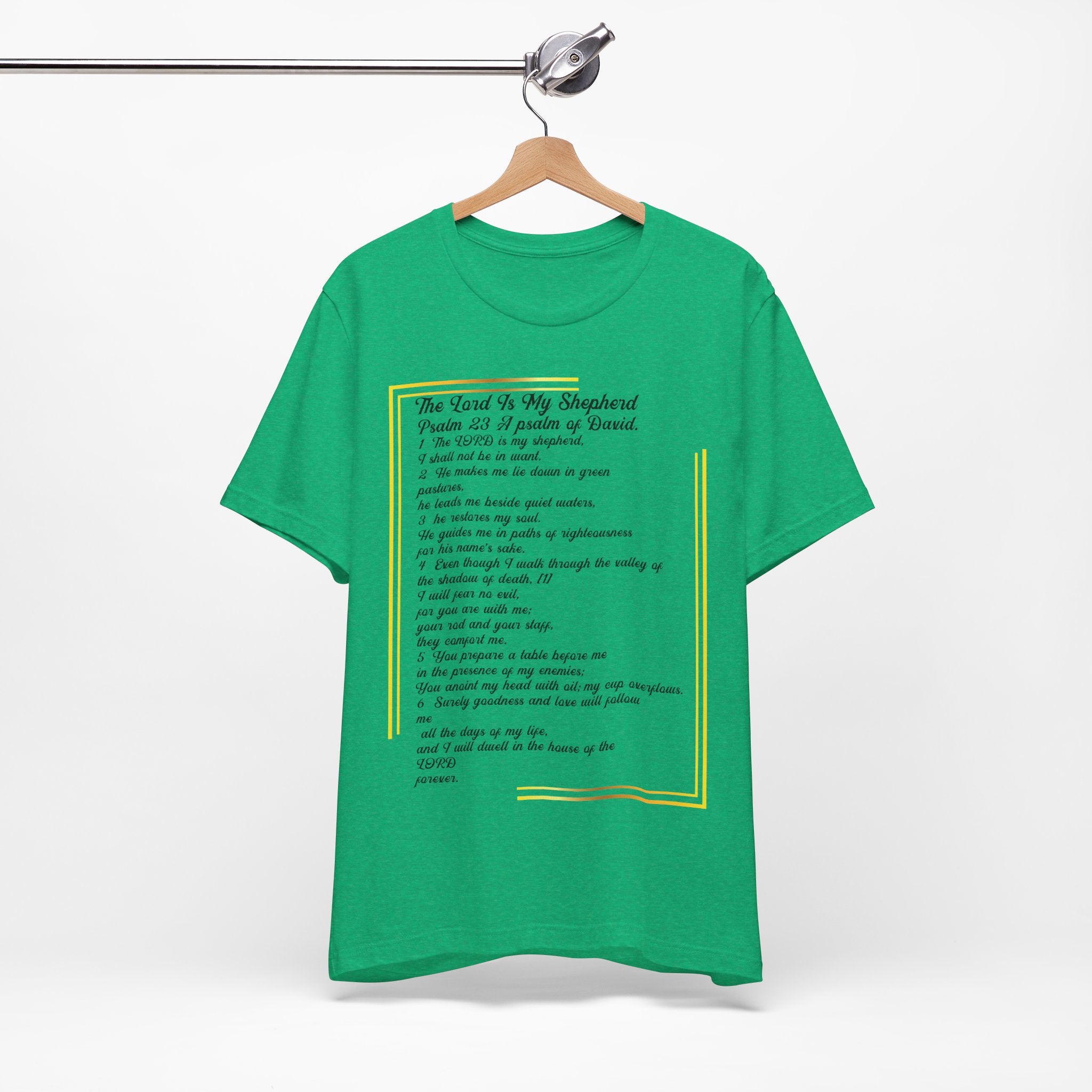 If you love Psalm 23, as it says God is the Shepherd, wear this great shirt as a daily reminder of Him caring for you. This Psalm 23 t-shirt was designed with a college-style font so you can share your faith or cheer yourself up by reminding you of the Bible promises God will walk through the valley with you.