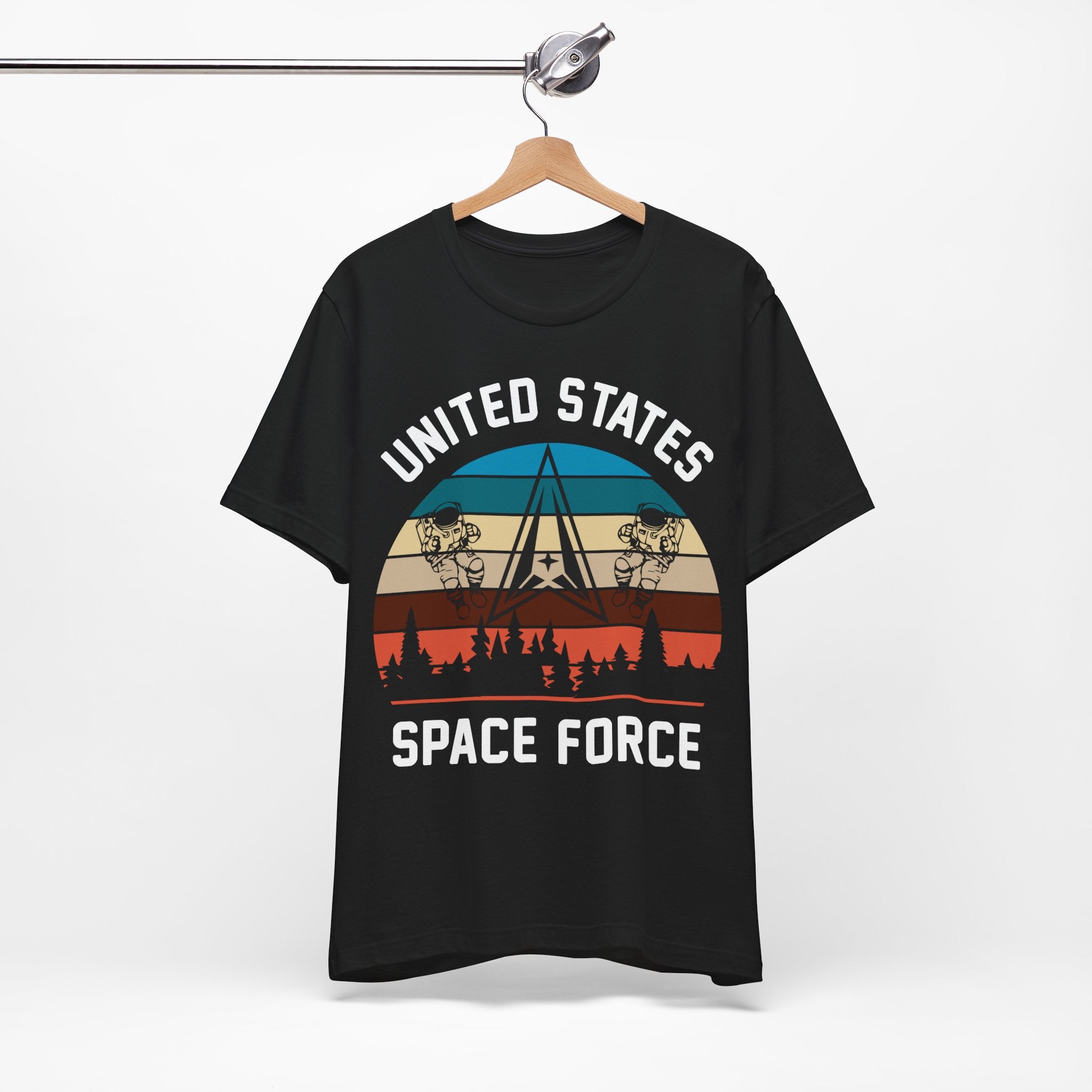 Our awesome US Space Force black T-shirt is super comfortable and not only does it look great and feel, it’s durable too. Our Space Force t-shirts look great with sweatpants! This is a high quality t-shirt and a great gift for a Space Forces, Space Force wife, Space Force boyfriend, Space Force boyfriend, Space Force brother, Space Force dad or grandfather.